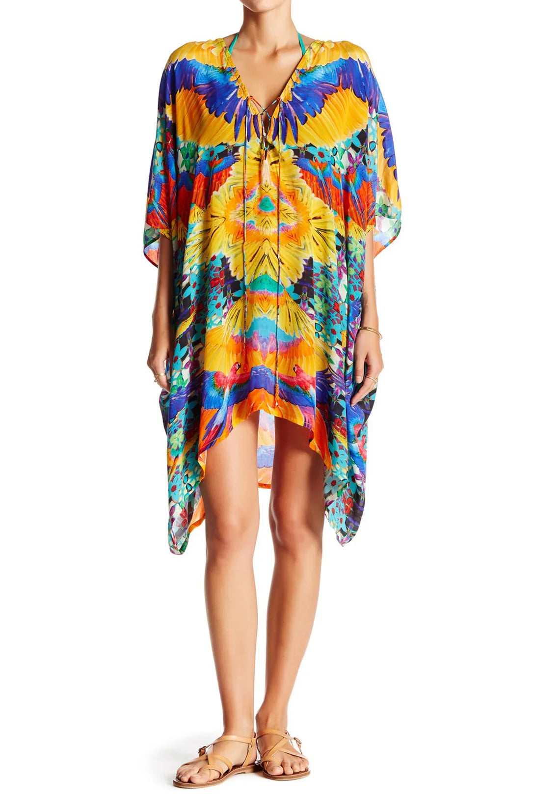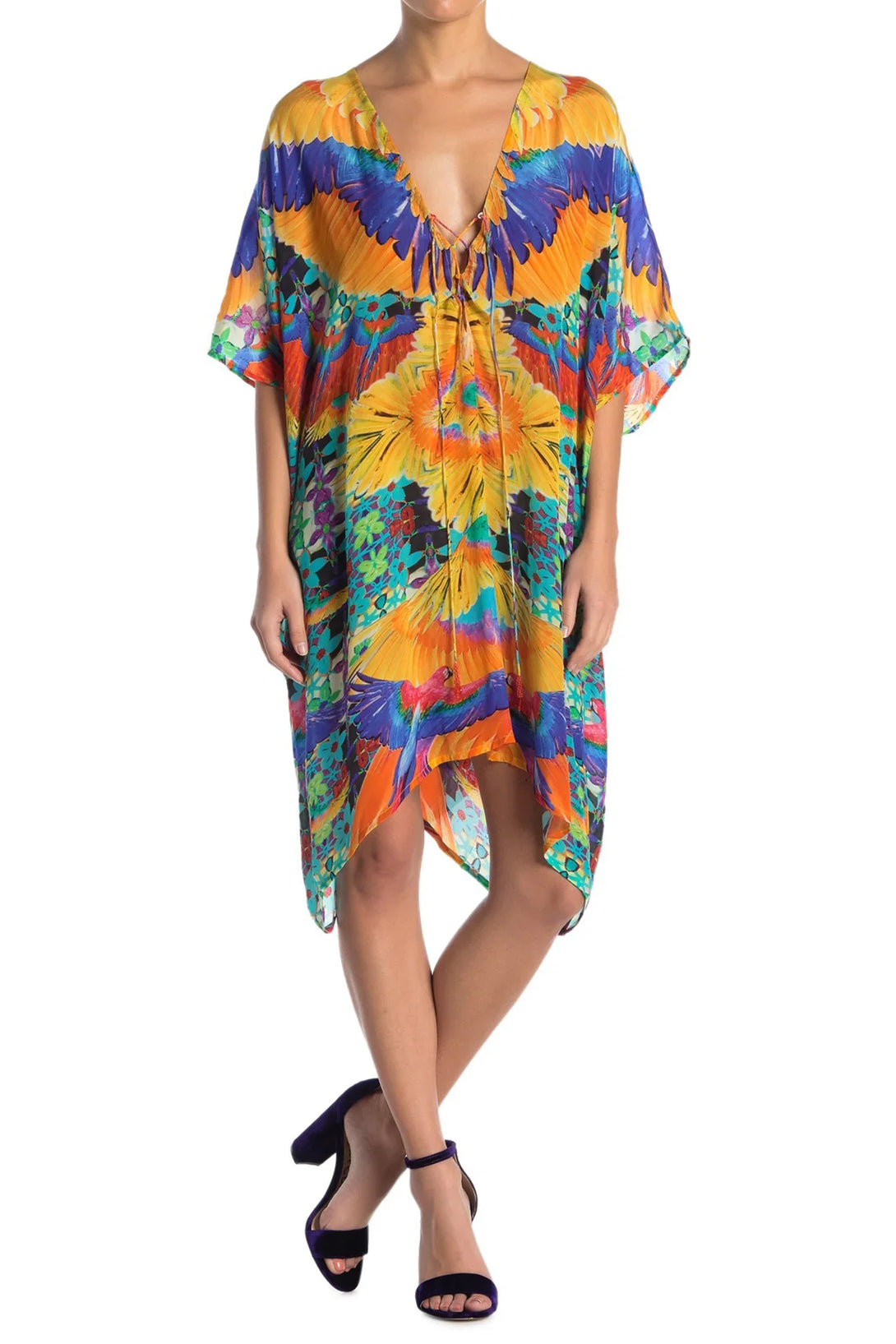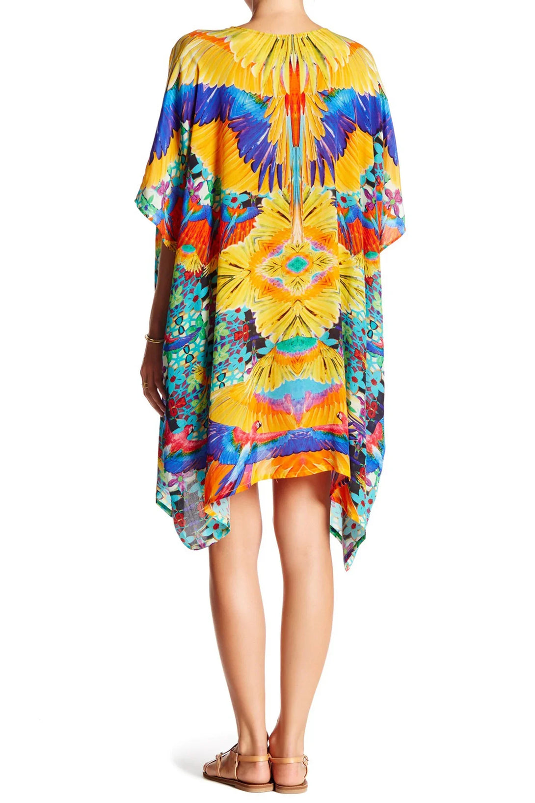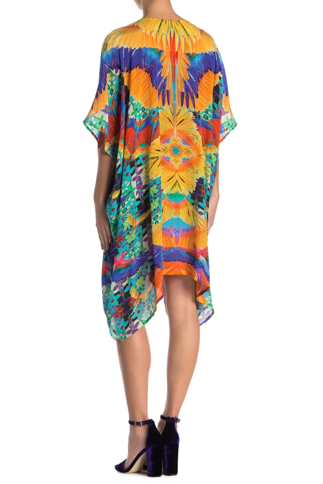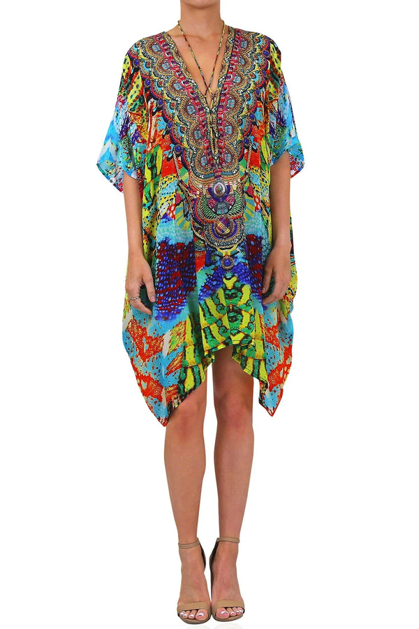 فستان قفطان قصير من الحرير متعدد الاتجاهات