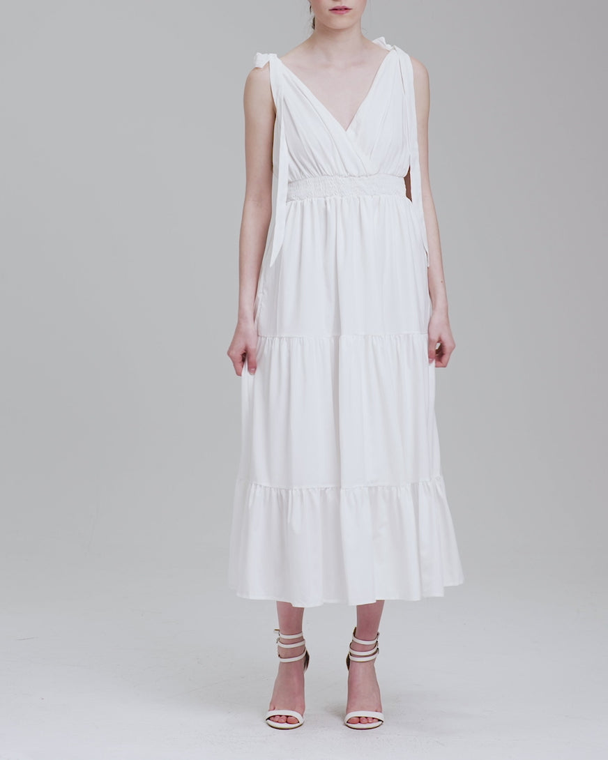 احصلي على مظهر درامي بفستان ماكسي بفتحة رقبة على شكل حرف V مع رباط خصر وفتحات تصل إلى الفخذ للحصول على مظهر بوهو شيك.