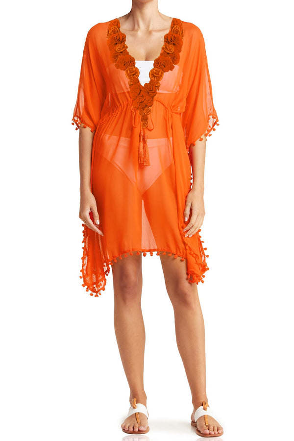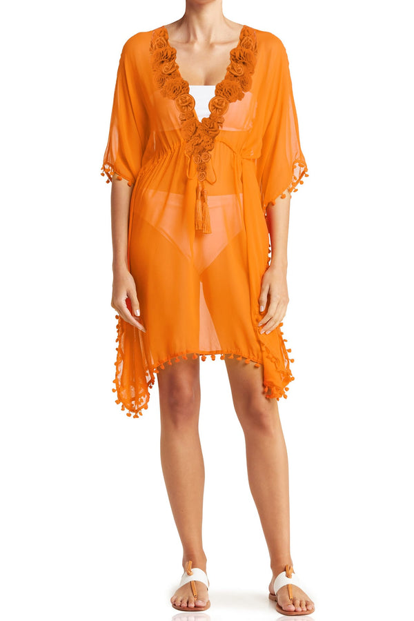 "orange swim cover up," "Shahida Parides" "designer swim cover ups" "sheer cover up" "beachwear cover ups"