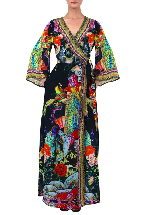 Bird Print Long Black Maxi Dress