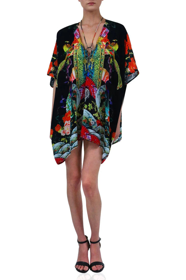 Short Printed Kaftan in Black