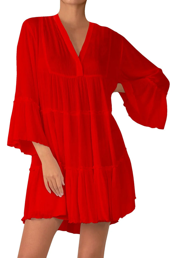 elegant flared sleeve short dress,