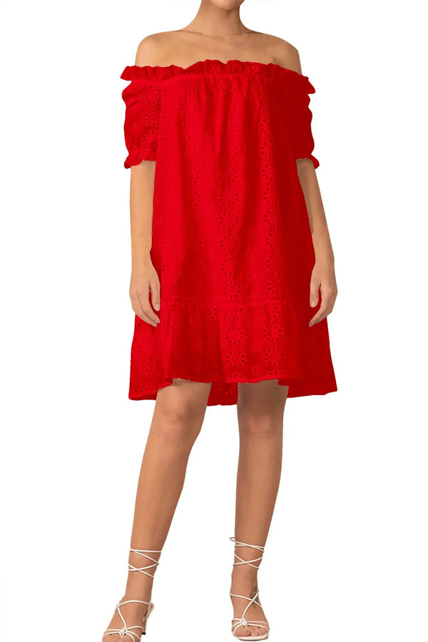 Serenity Red Lava Mini Off Shoulder Dress