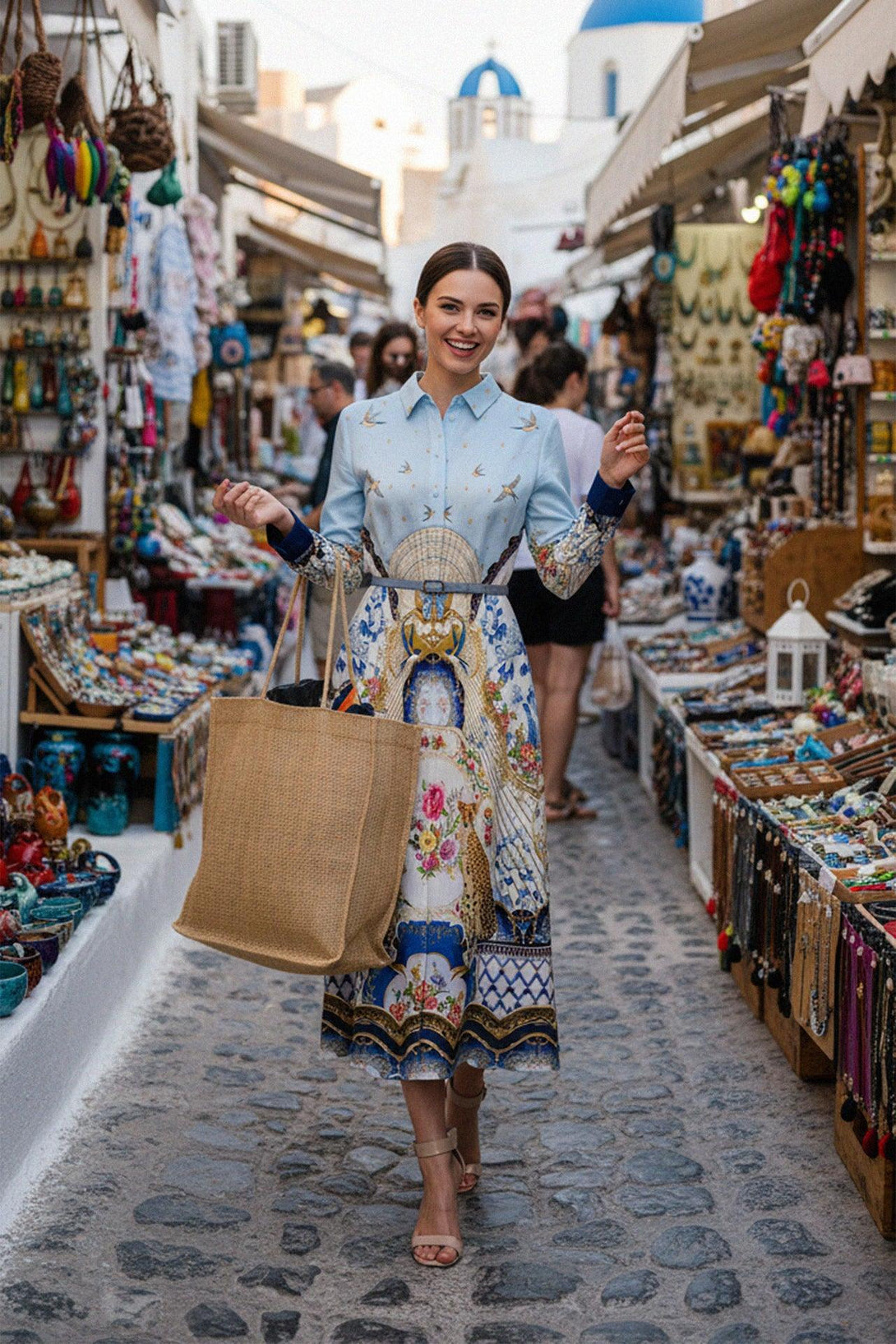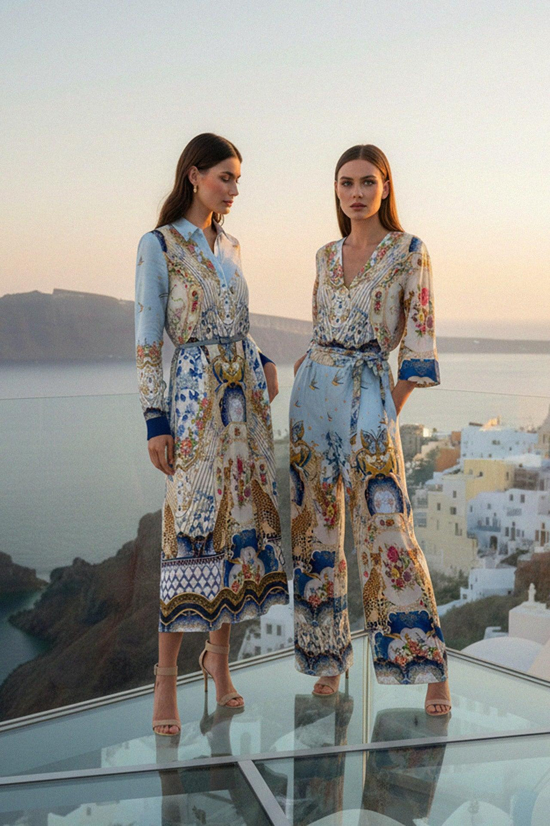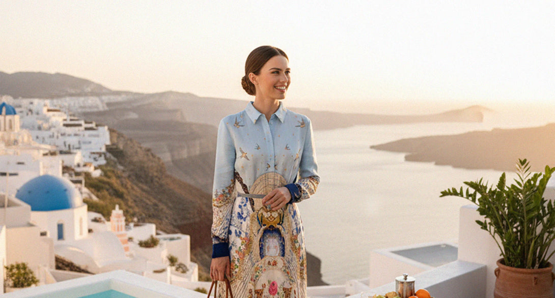 Explore collections which features collared neckline, in romanticism print, belted waist and long sleeve style, of midi shirt dress designed by Shahida Parides.