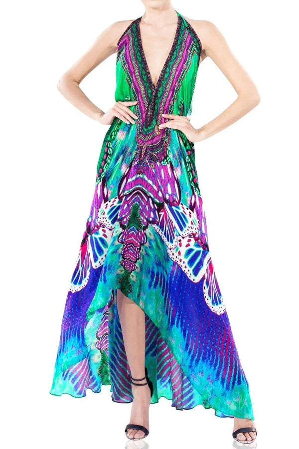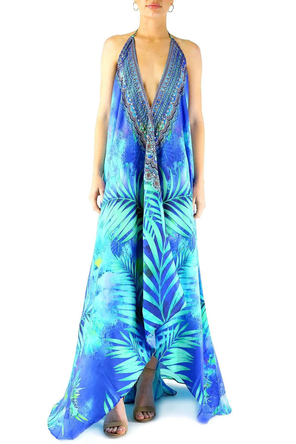 blue color maxi dress, Shahida Parides, beach maxi dress, long summer dresses, backless maxi dress,