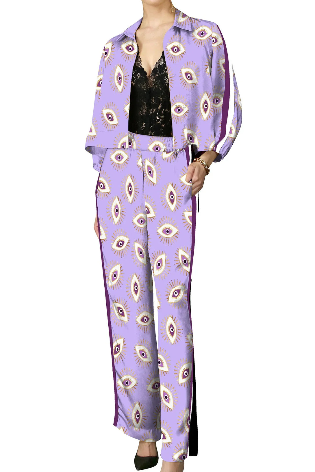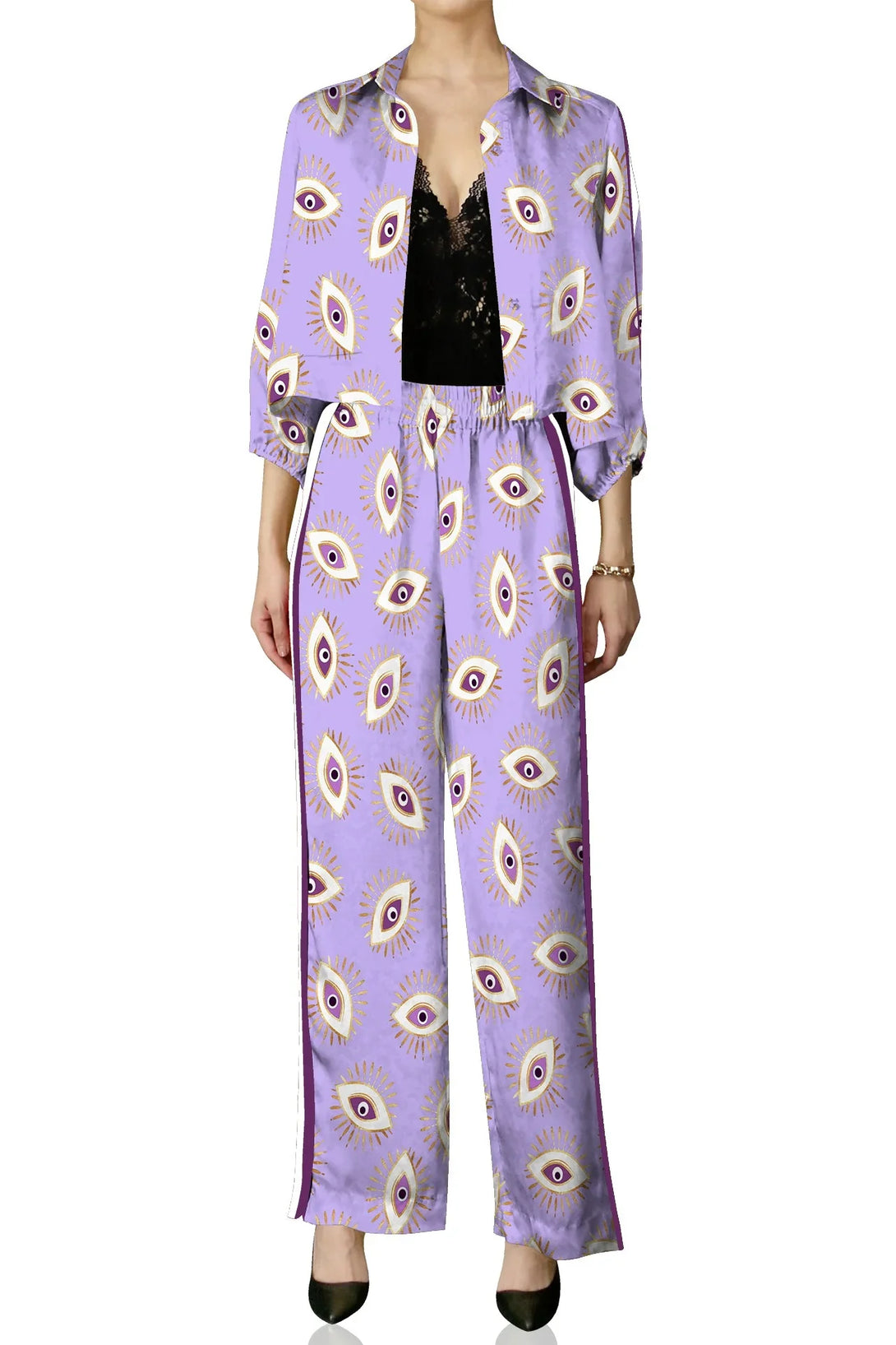Biodegradable Fabrics Matching Suit Set in Digital Lavender Evil Eye Print