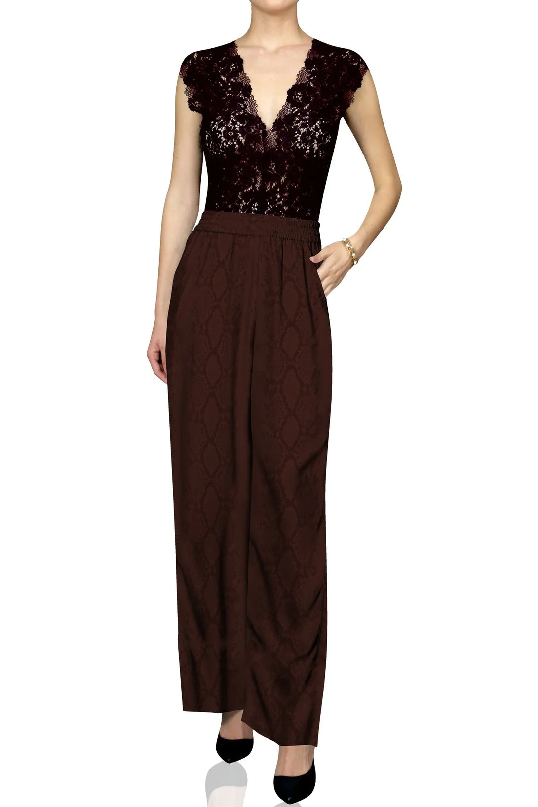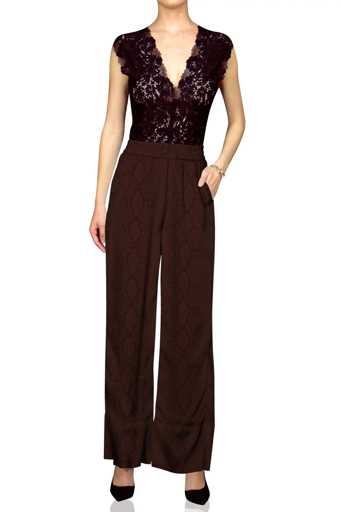 - Printed pull on Silky pants.