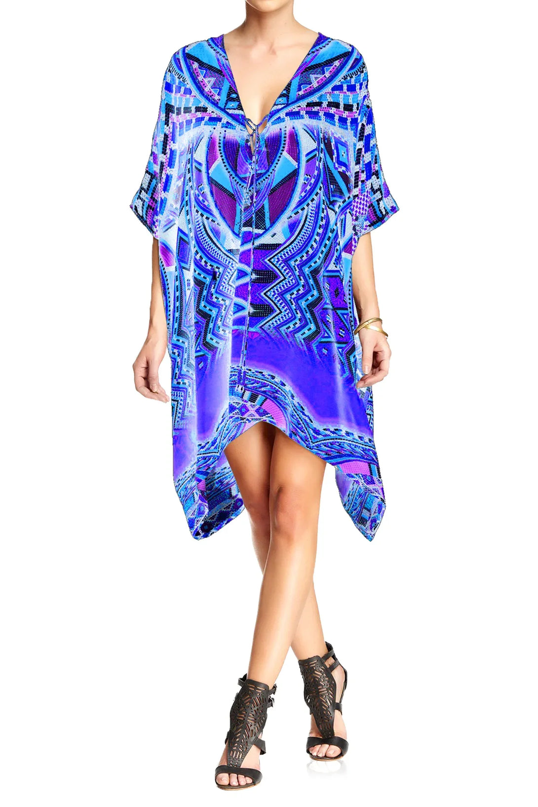 Wear Shahida Parides multi wear dress, one of four ways for the style you'll love! Versatility ensures you'll never be bored of this blue silk kaftan.