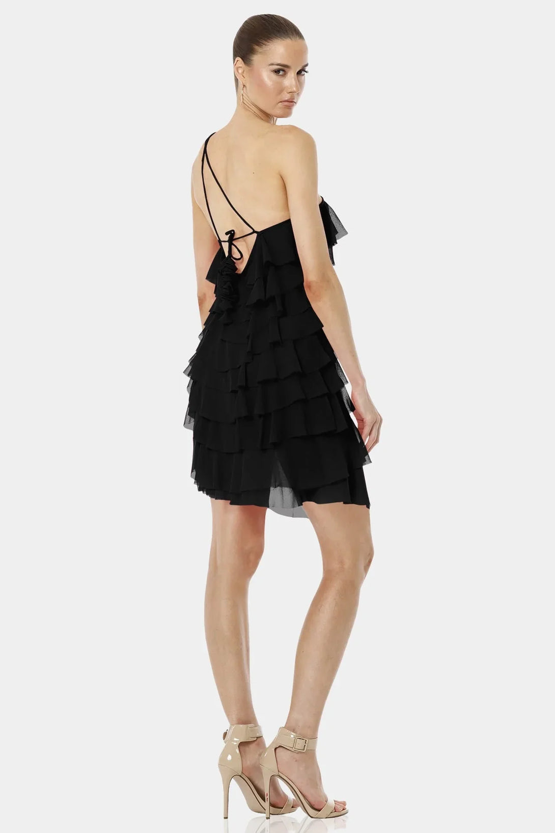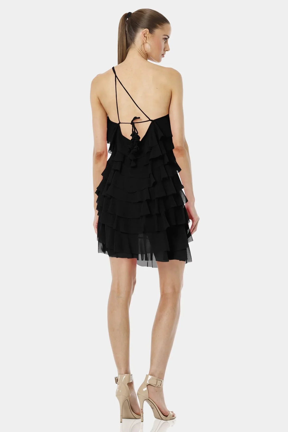 Think Black and Feel the Love with Short Black Dress with Ruffle which give you a dramatic look with One Shoulder Sleeve and designer backless dress.