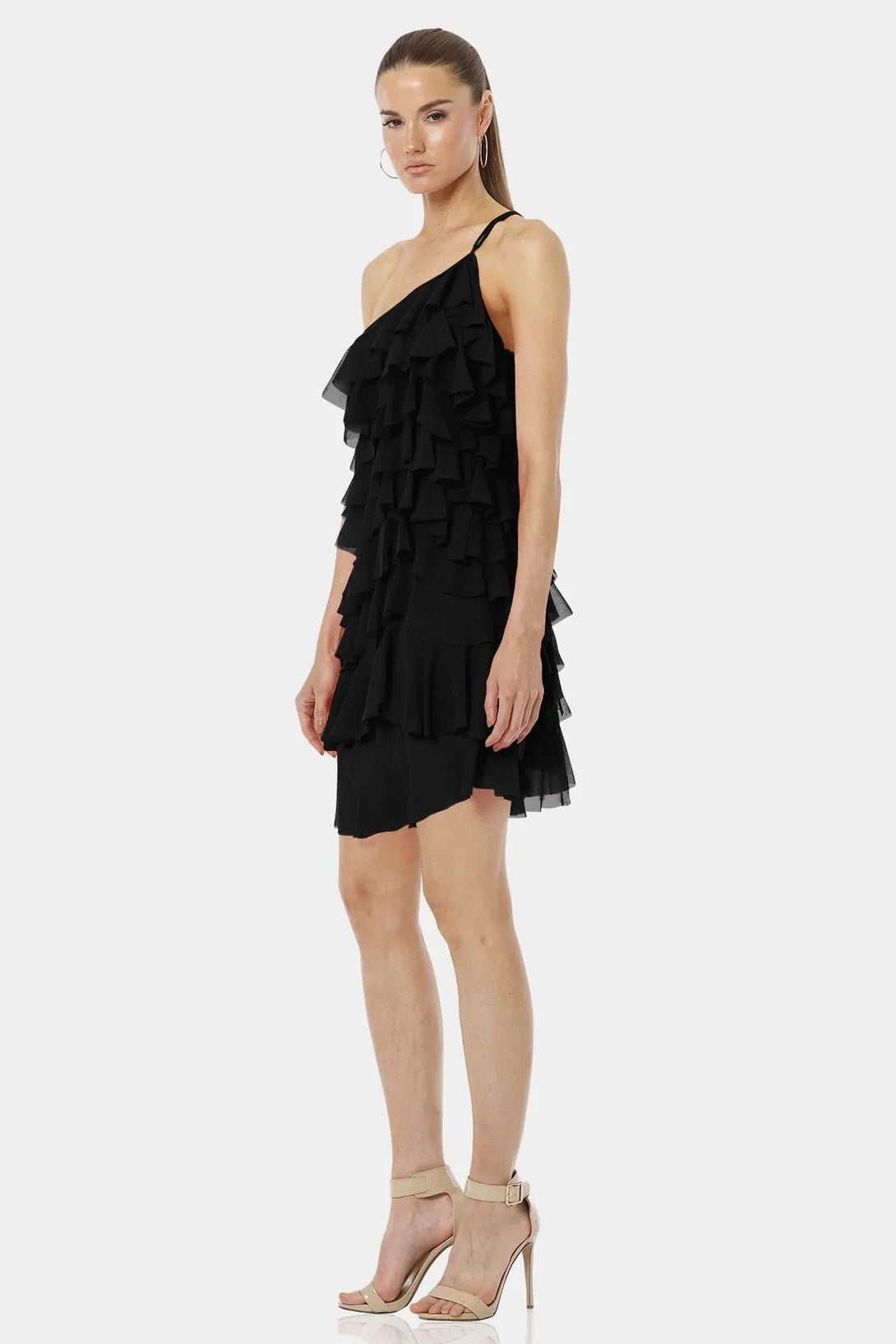 Starlight Exotic Black One Shoulder Mini Dress