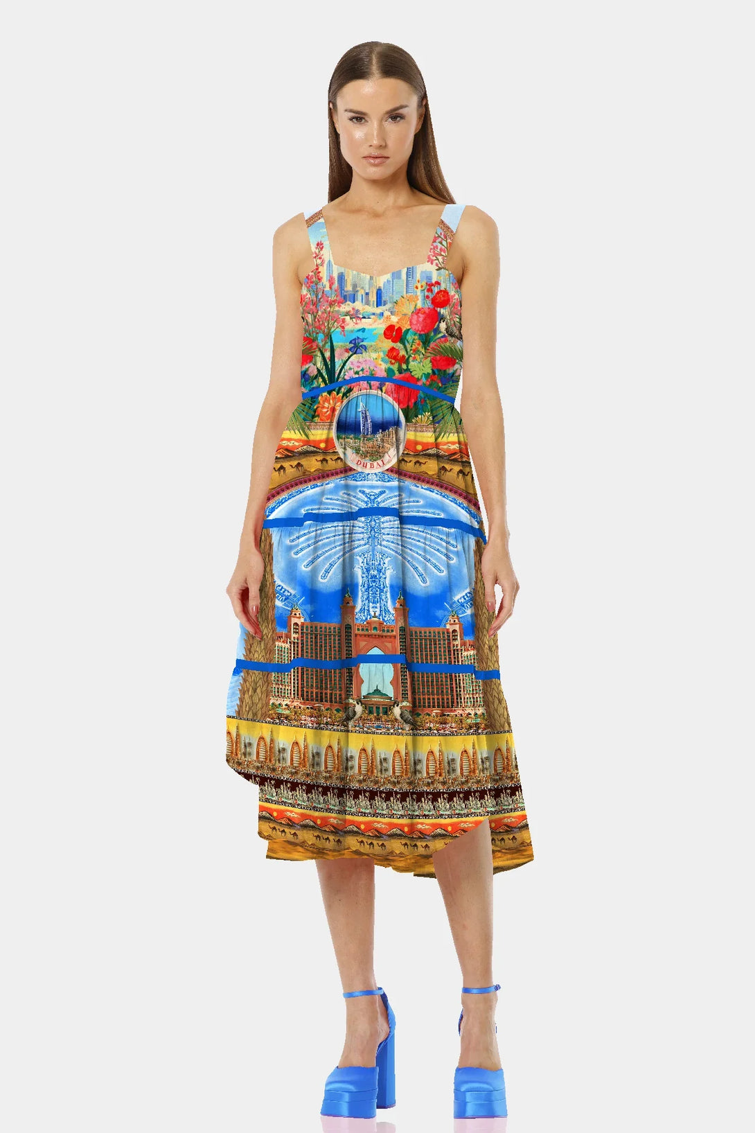 Look stunning in this cute midi dress, which features square neckline, midi dress, spaghetti strap shoulders, designed by Shahida Parides.