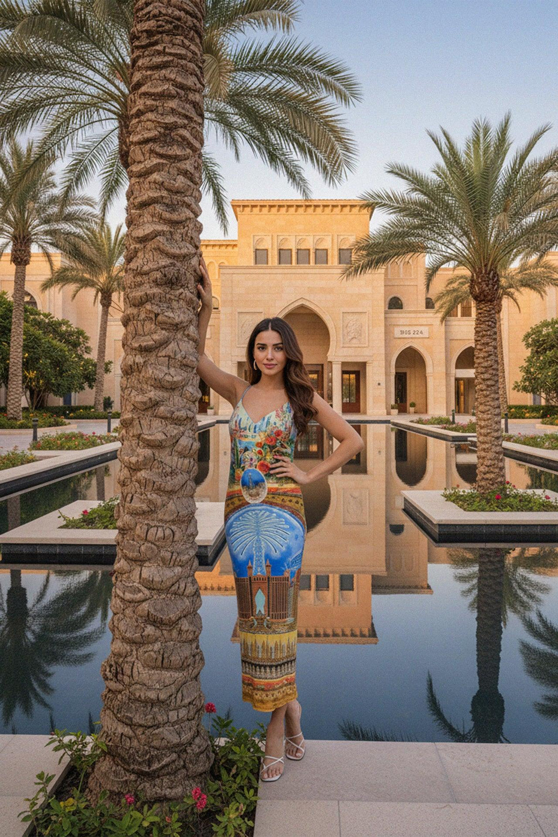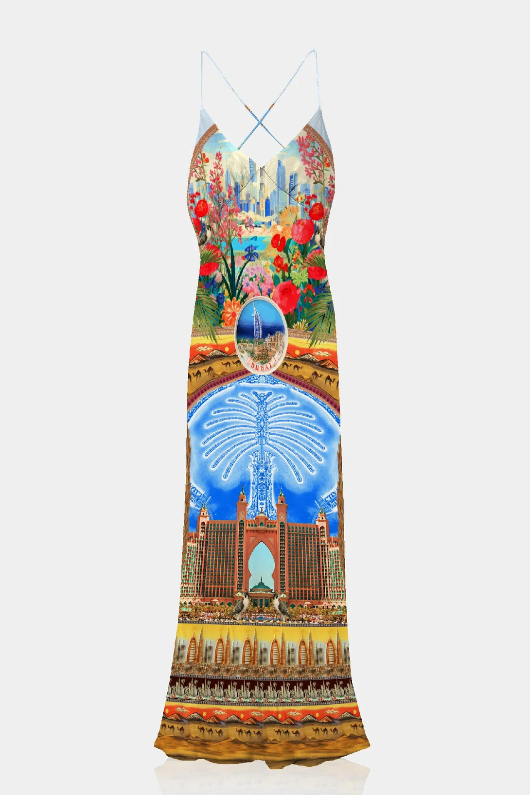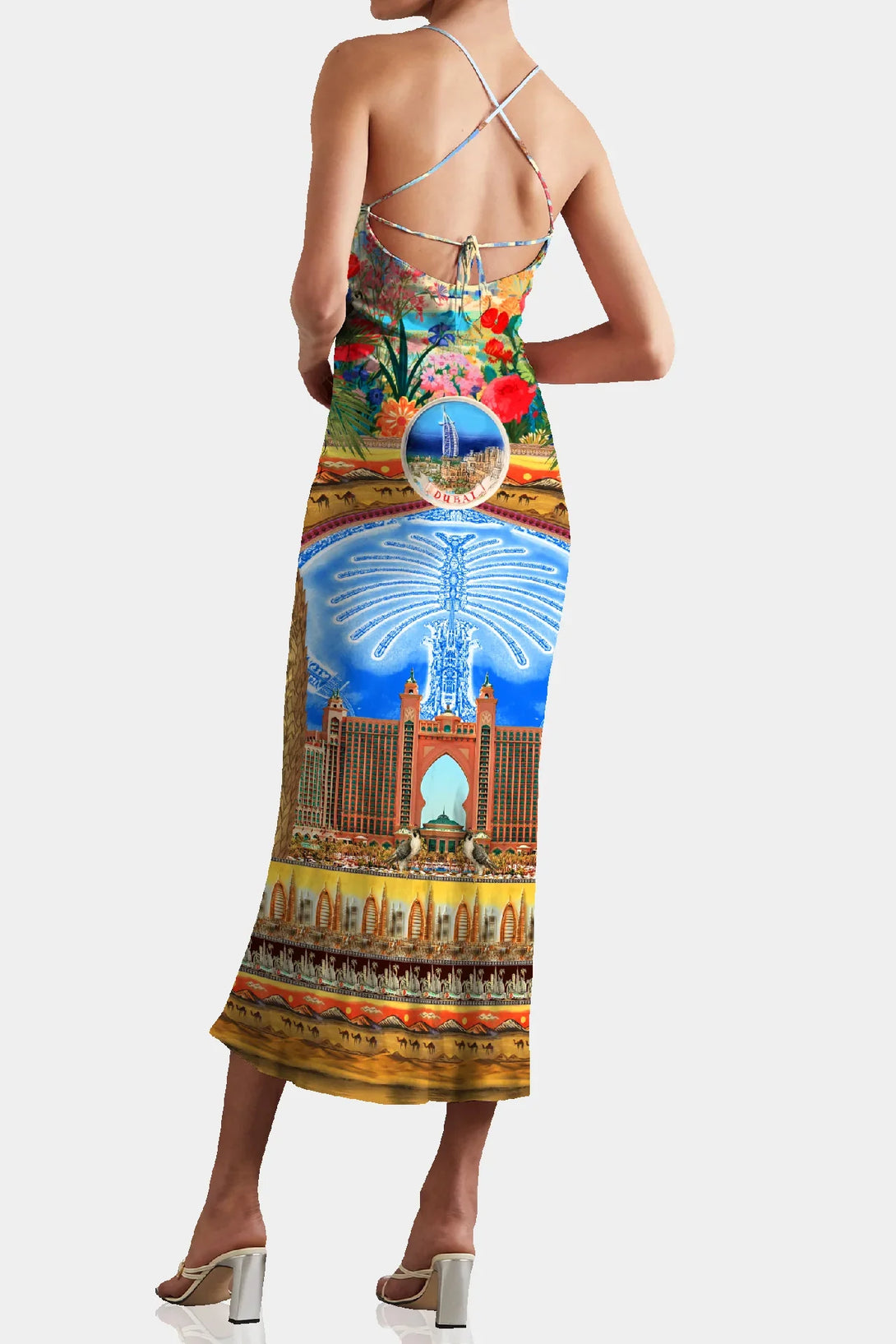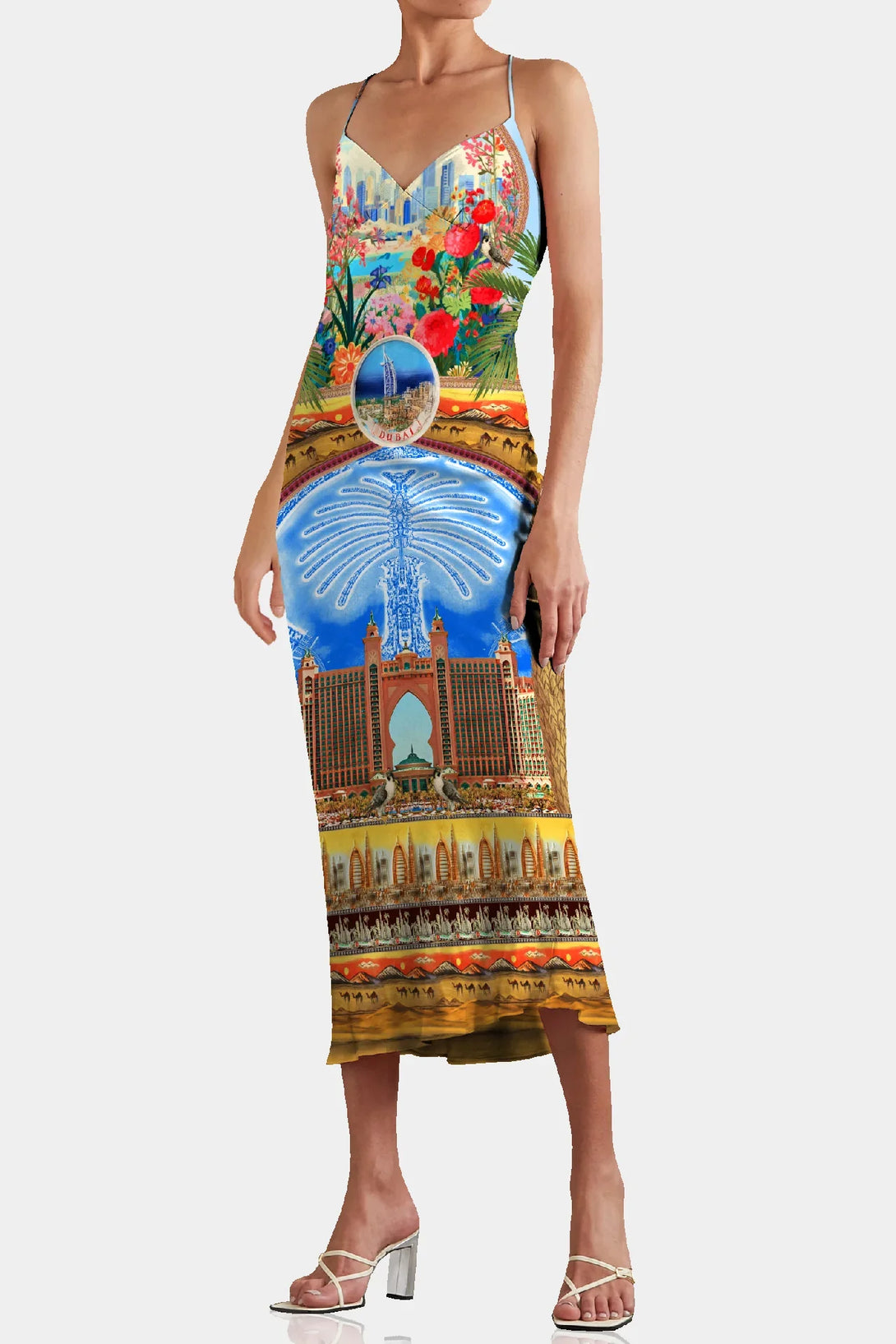 Explore Dubai collections which features sweetheart neckline, crisscross backless dress, in sleeveless bodycon style, designed by Shahida Parides.