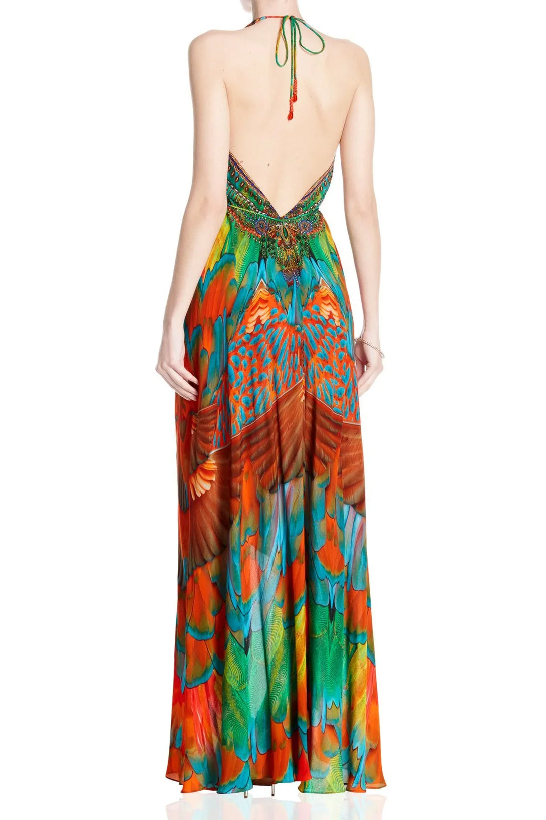 Multicolored and multi patterned maxi dress that can be used in multi ways -