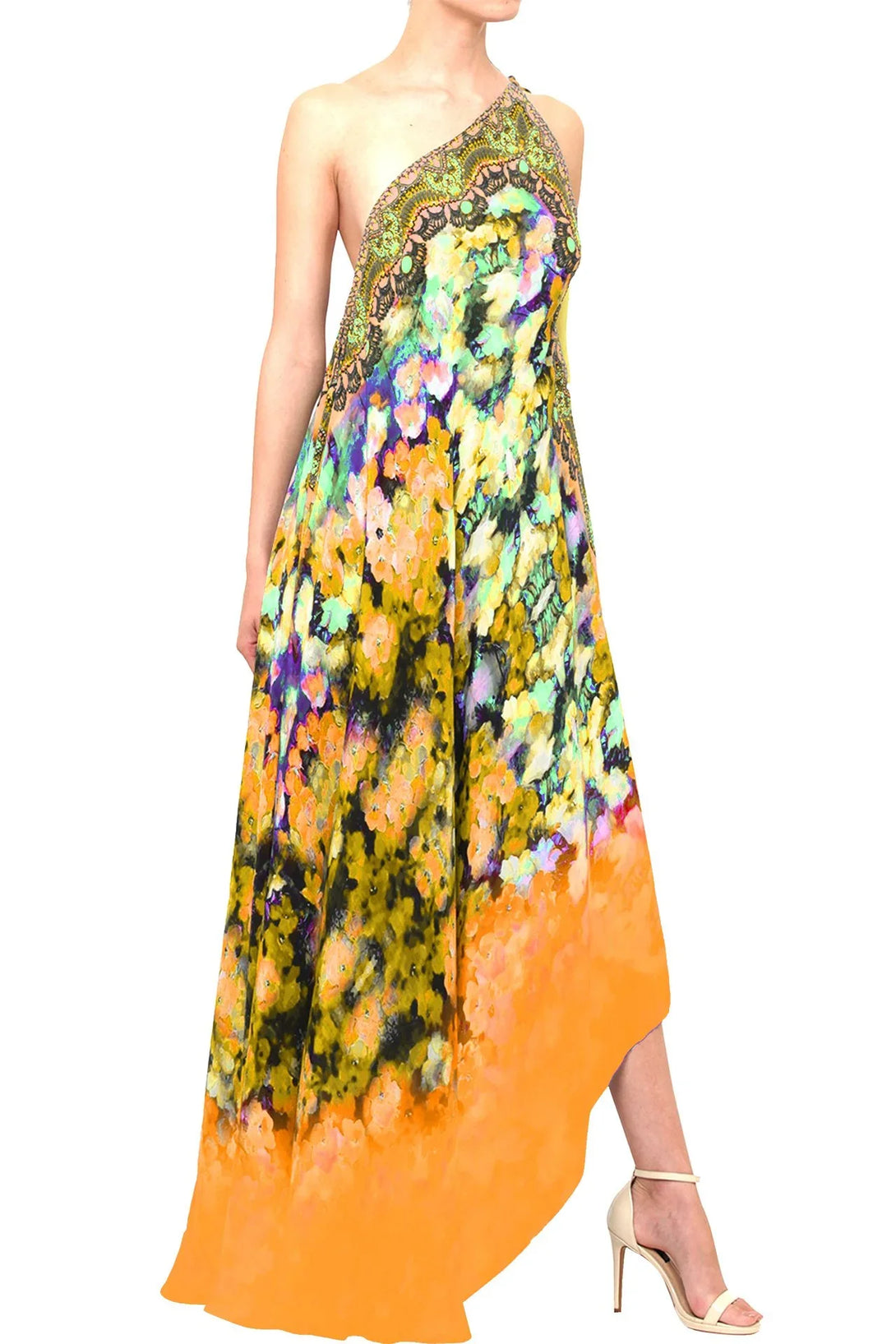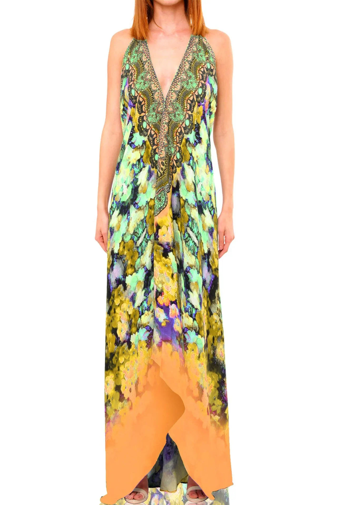 Multicolored and multi patterned maxi dress that can be used in multi ways -