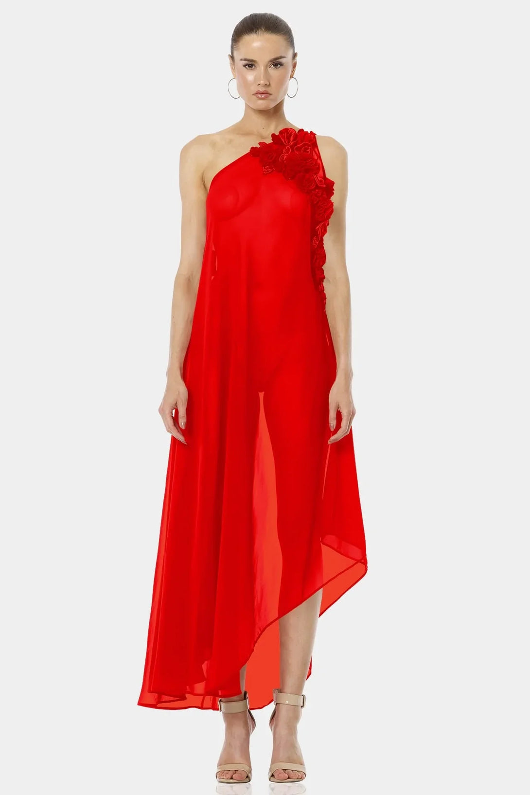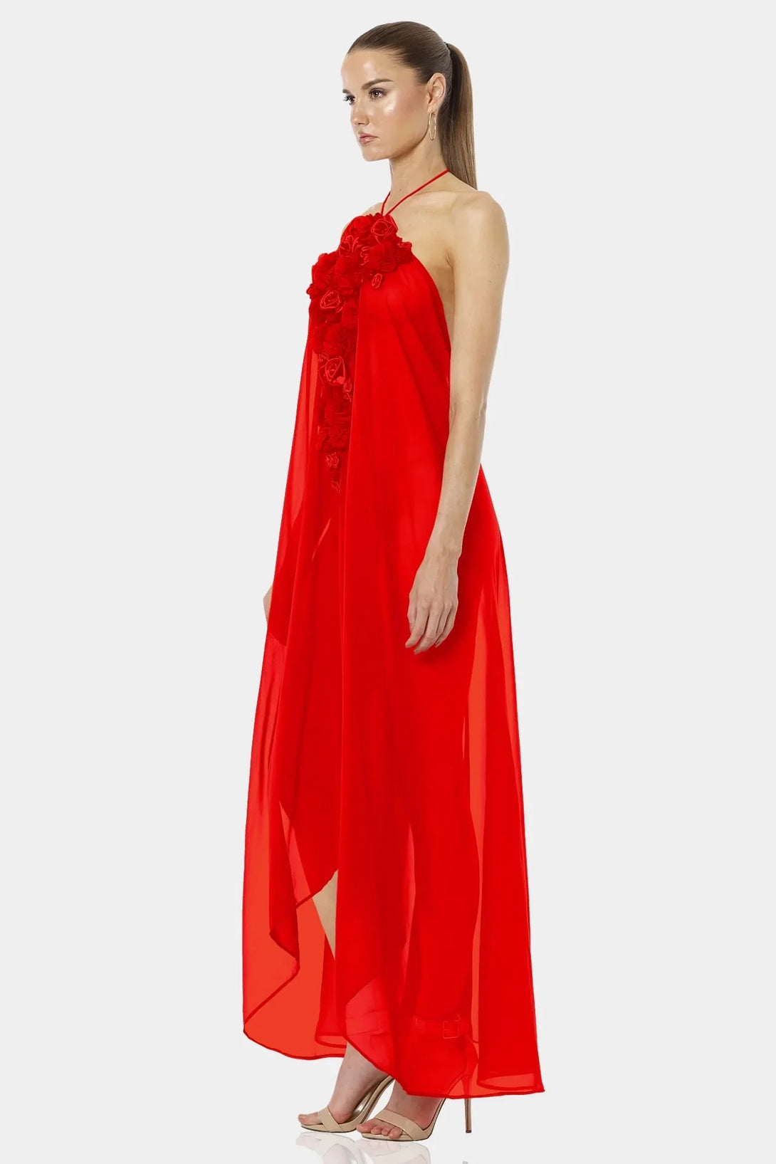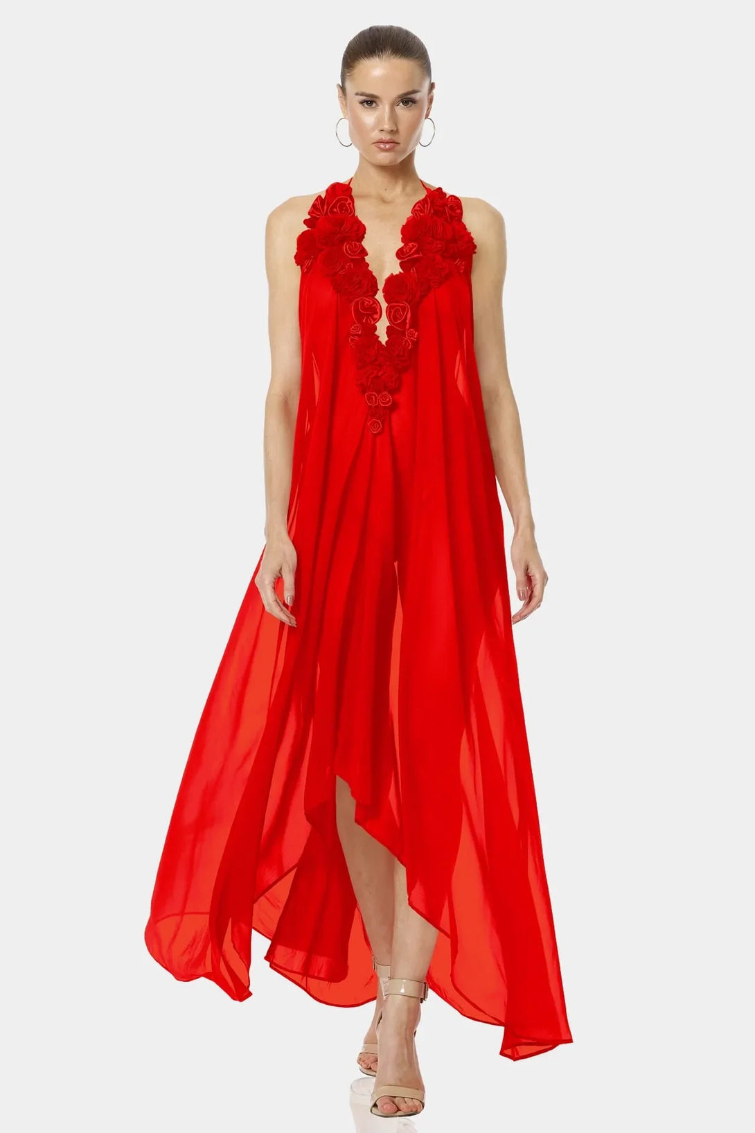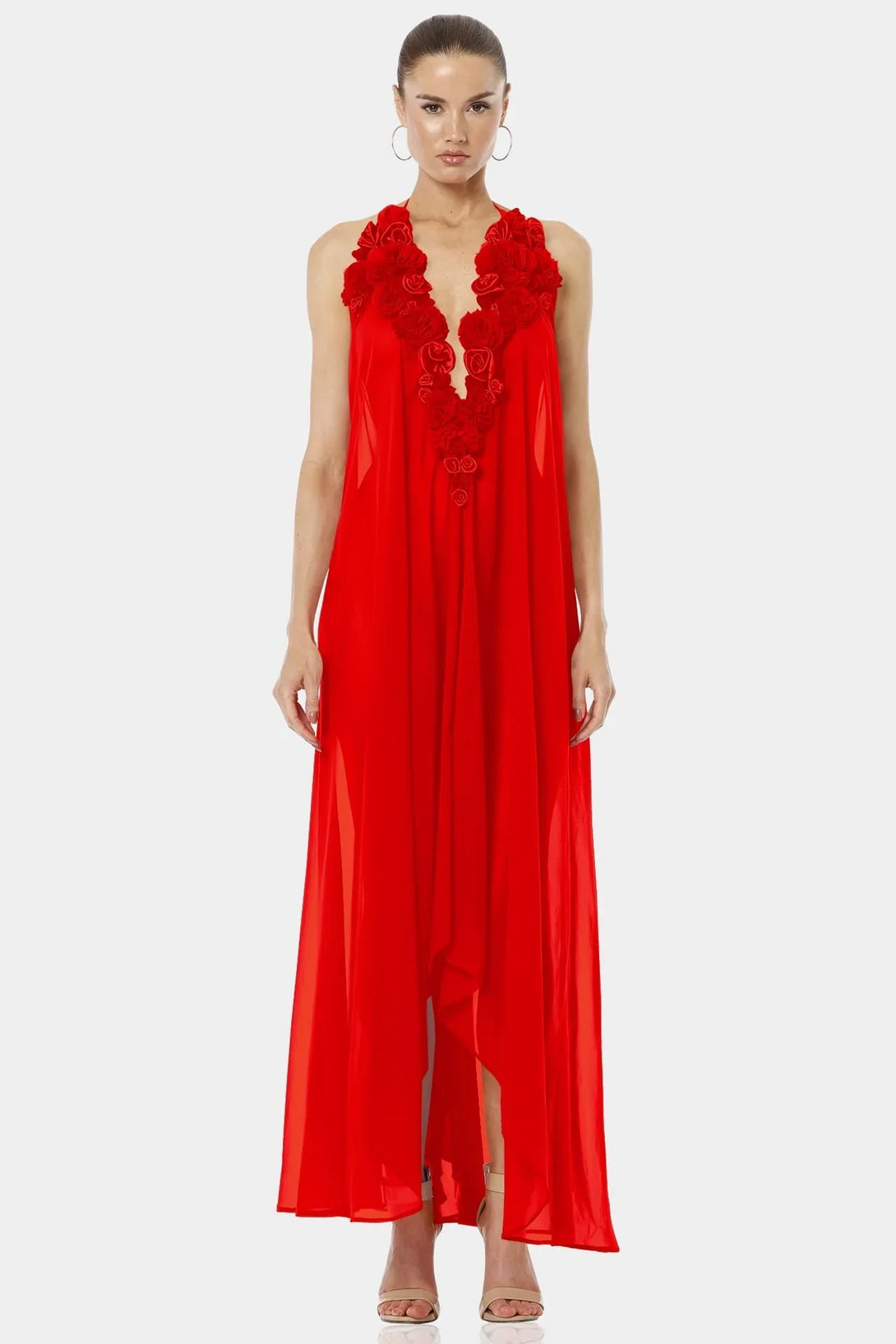 A well-chosen outfit can really say a lot about you, this Red sheer maxi dress is embellished with 3D rose flowers which looks ultimate. Featuring a flowy maxi dress in a floor sweeping length, to complete the look wear statement earrings.