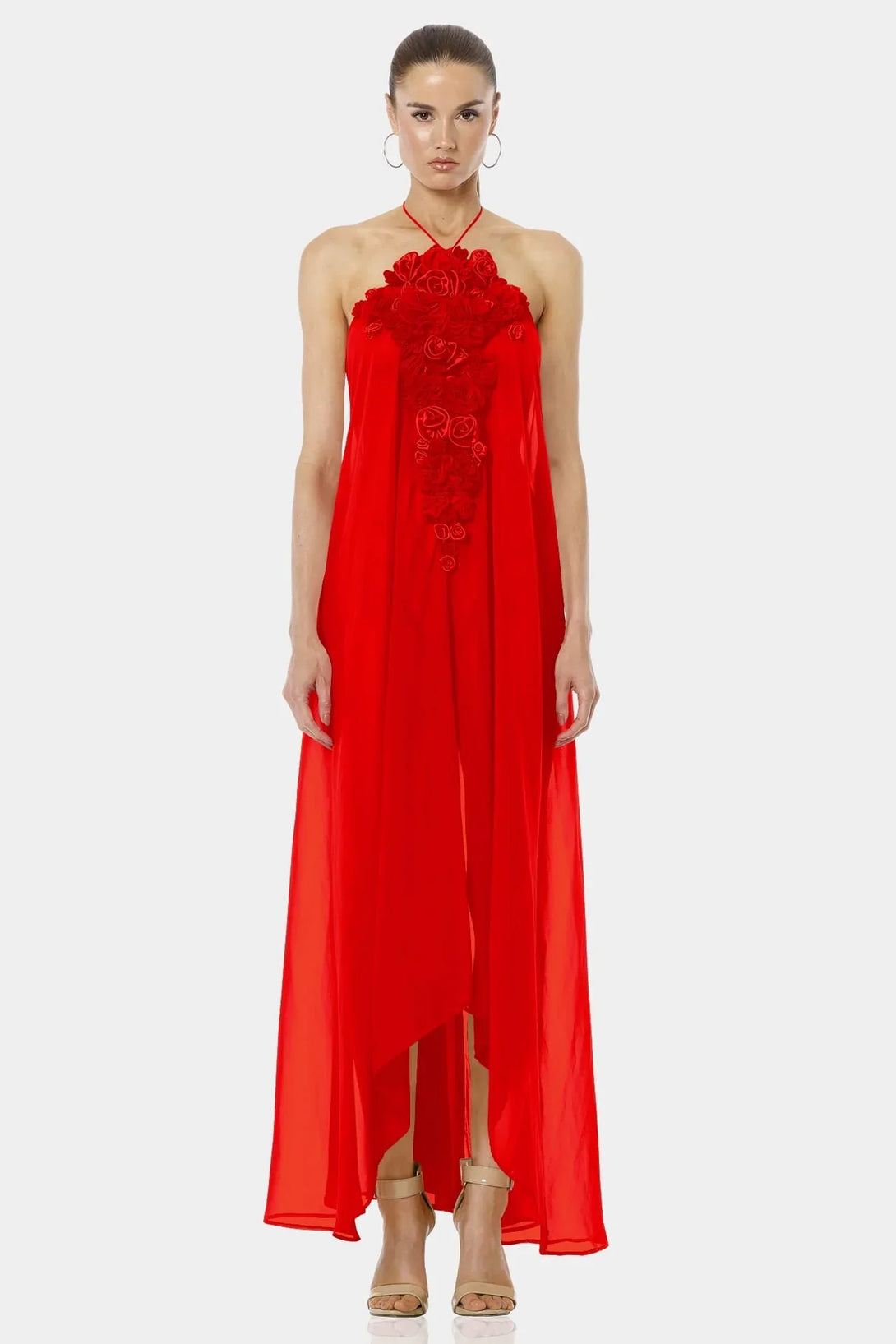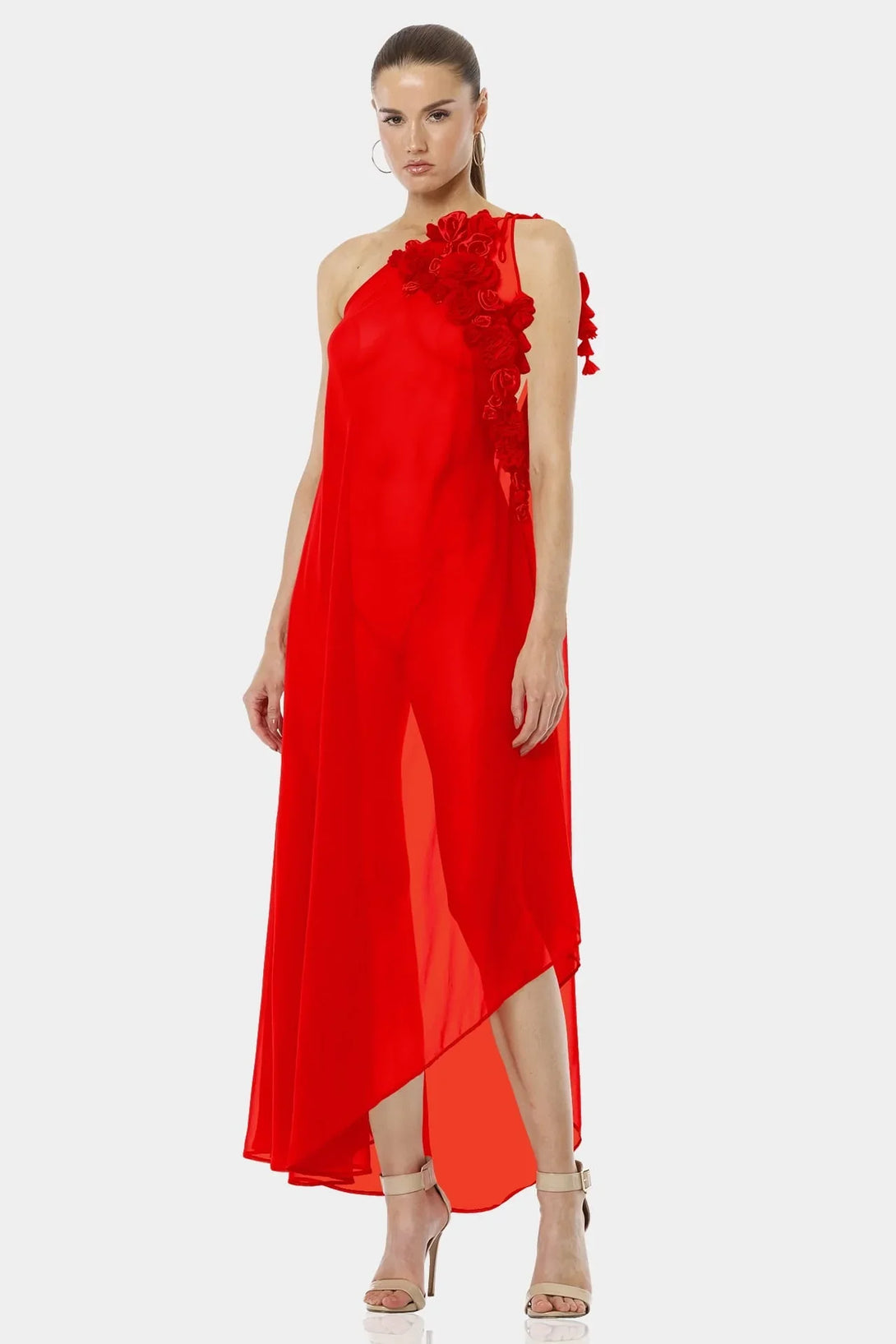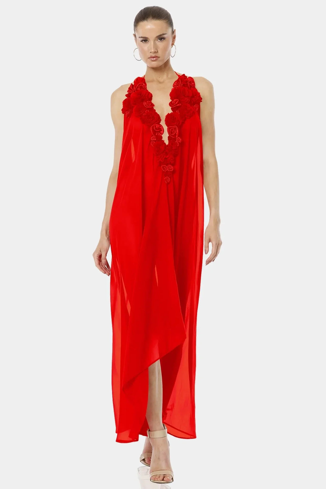A well-chosen outfit can really say a lot about you, this Red sheer maxi dress is embellished with 3D rose flowers which looks ultimate. Featuring a flowy maxi dress in a floor sweeping length, to complete the look wear statement earrings.