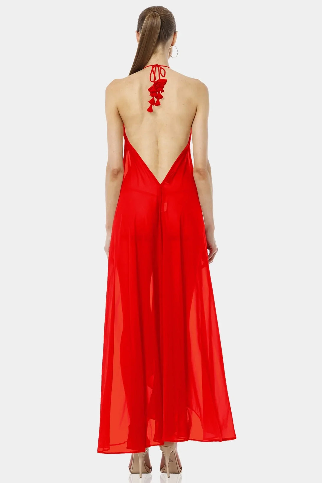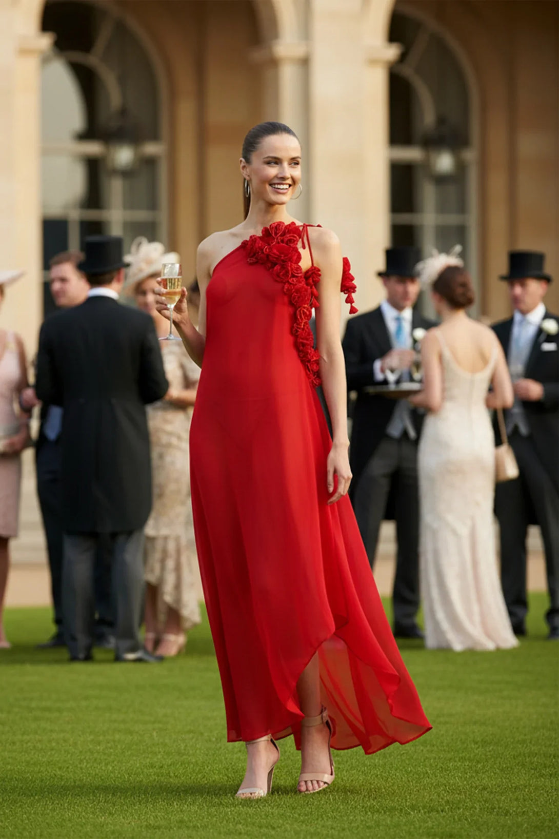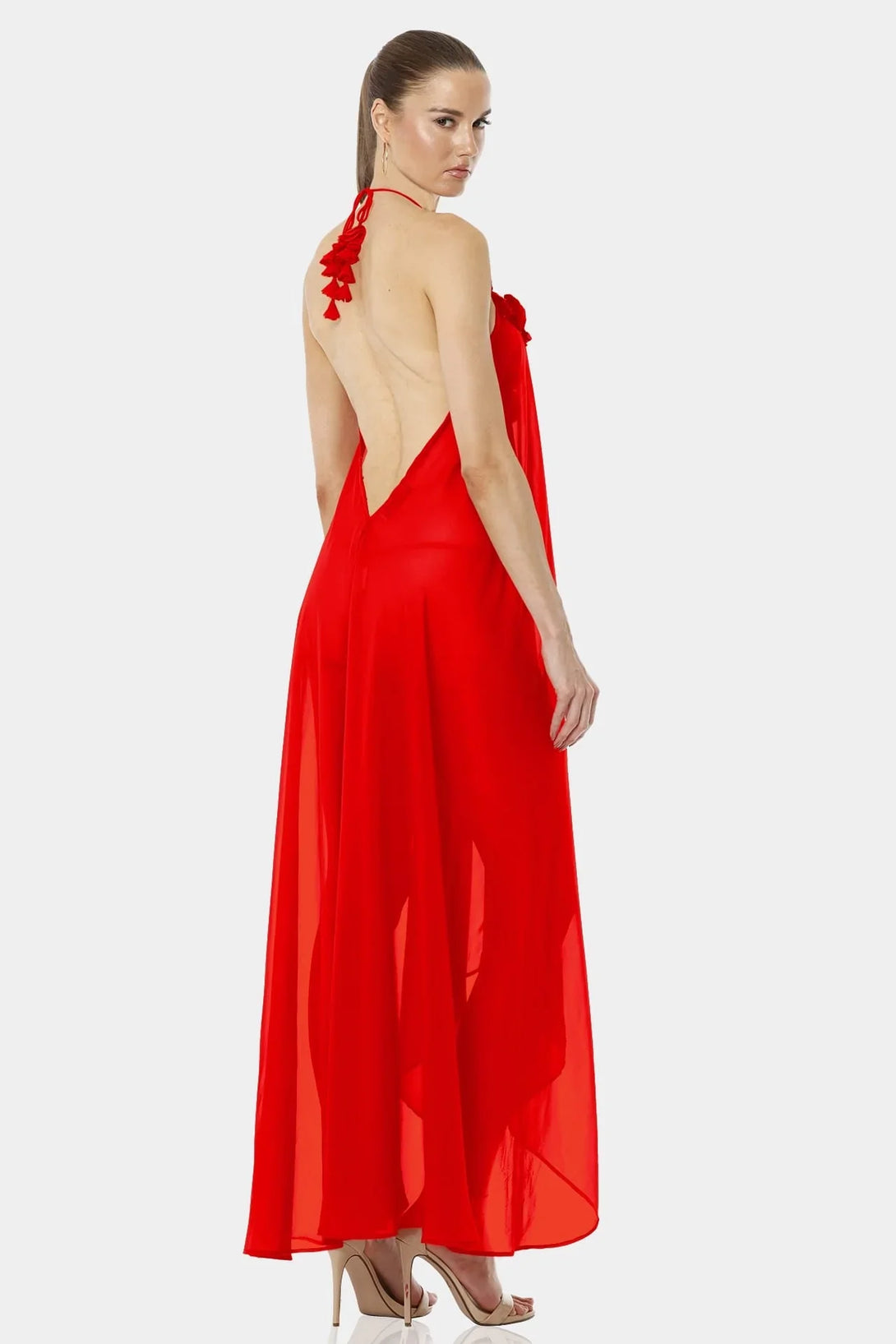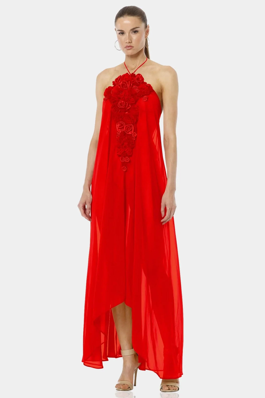 A well-chosen outfit can really say a lot about you, this Red sheer maxi dress is embellished with 3D rose flowers which looks ultimate. Featuring a flowy maxi dress in a floor sweeping length, to complete the look wear statement earrings.
