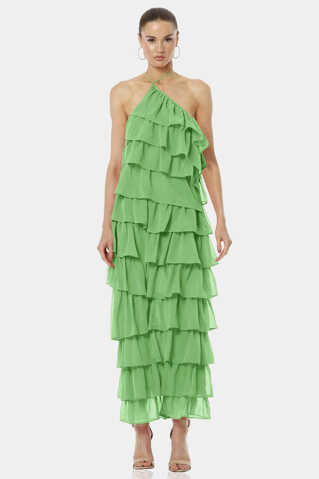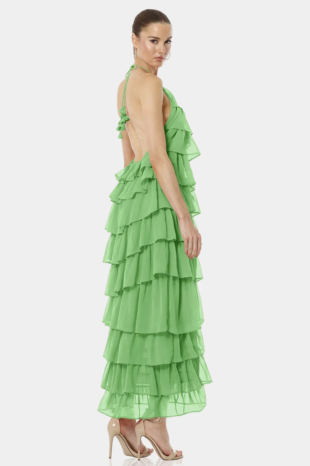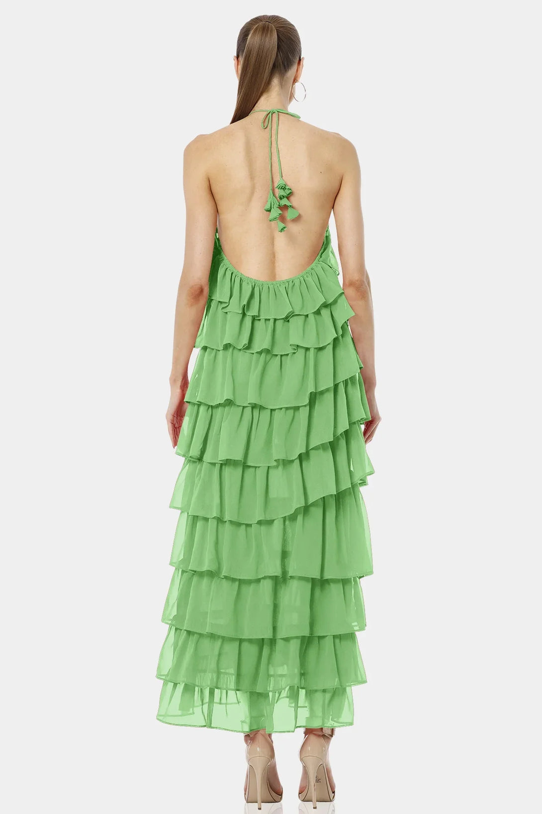 Feel the color of luck with our Mint Green Dress with ruffles and Criss-Cross neckline, which is designed with tiers of ruffles and have a hot backless look for you upcoming summer vacations.