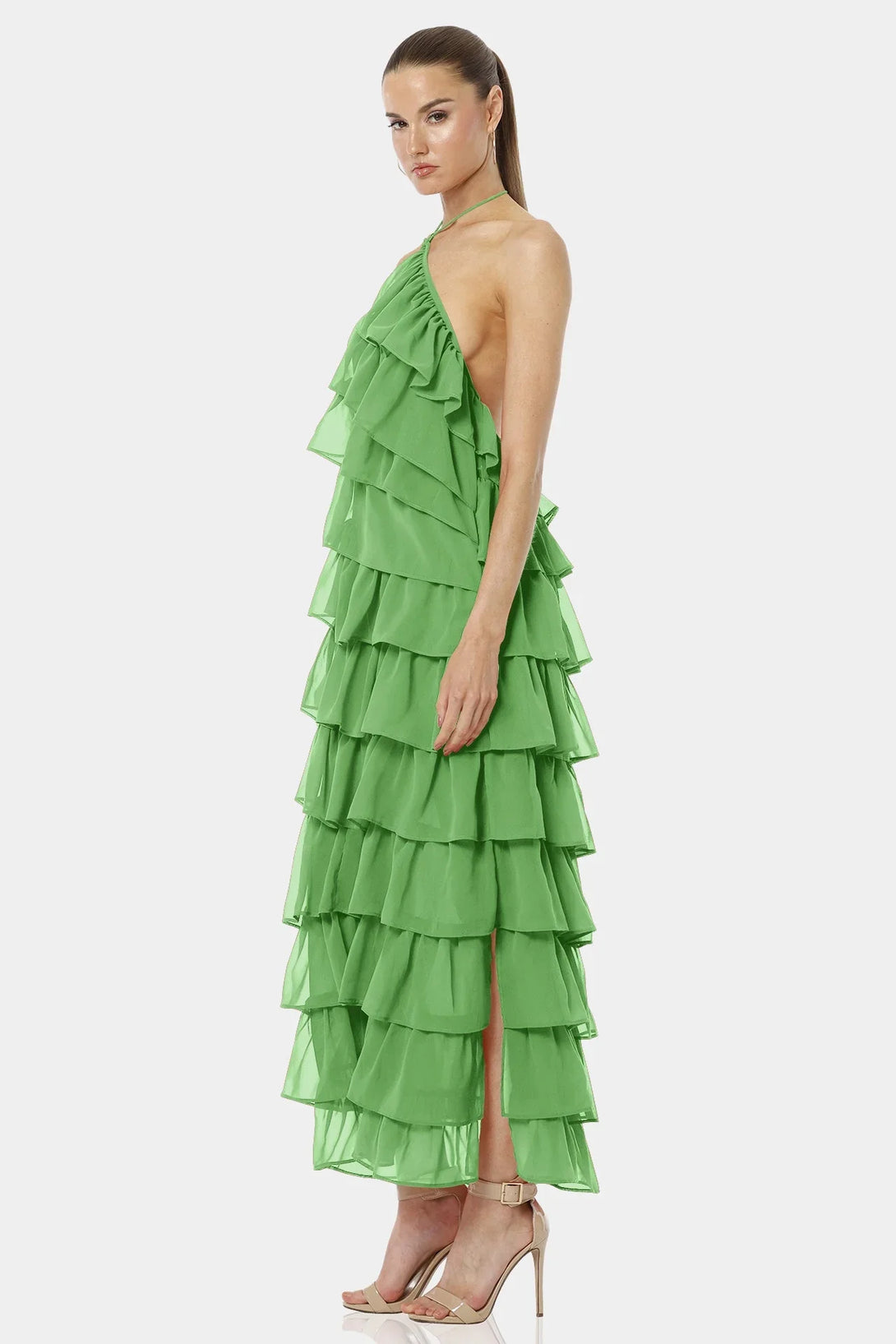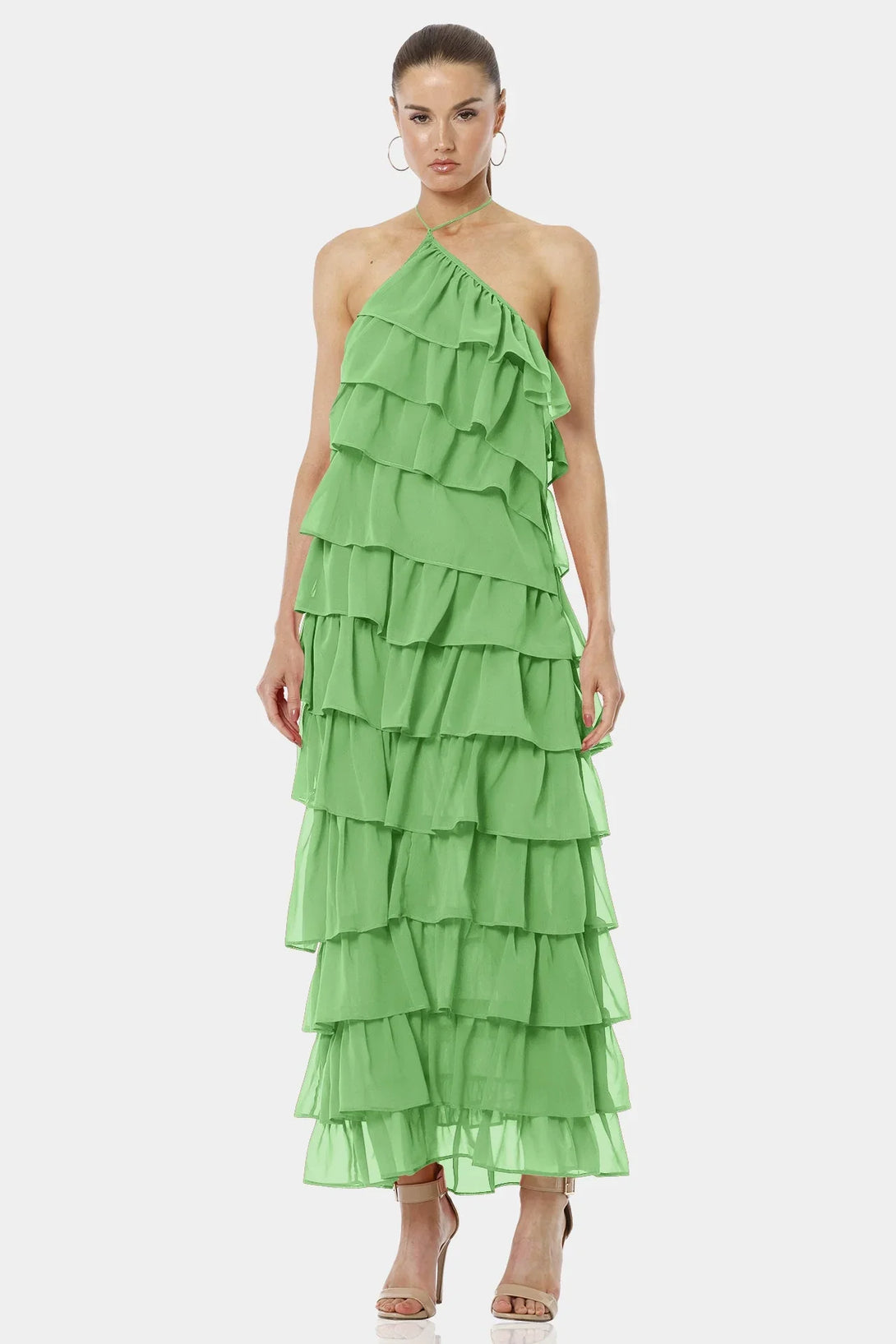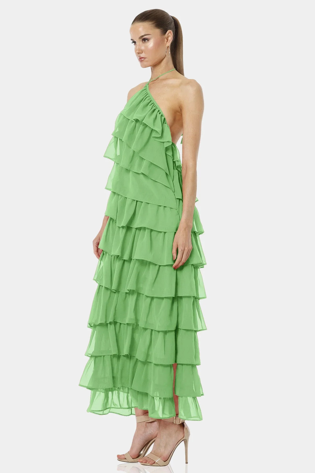 Feel the color of luck with our Mint Green Dress with ruffles and Criss-Cross neckline, which is designed with tiers of ruffles and have a hot backless look for you upcoming summer vacations.