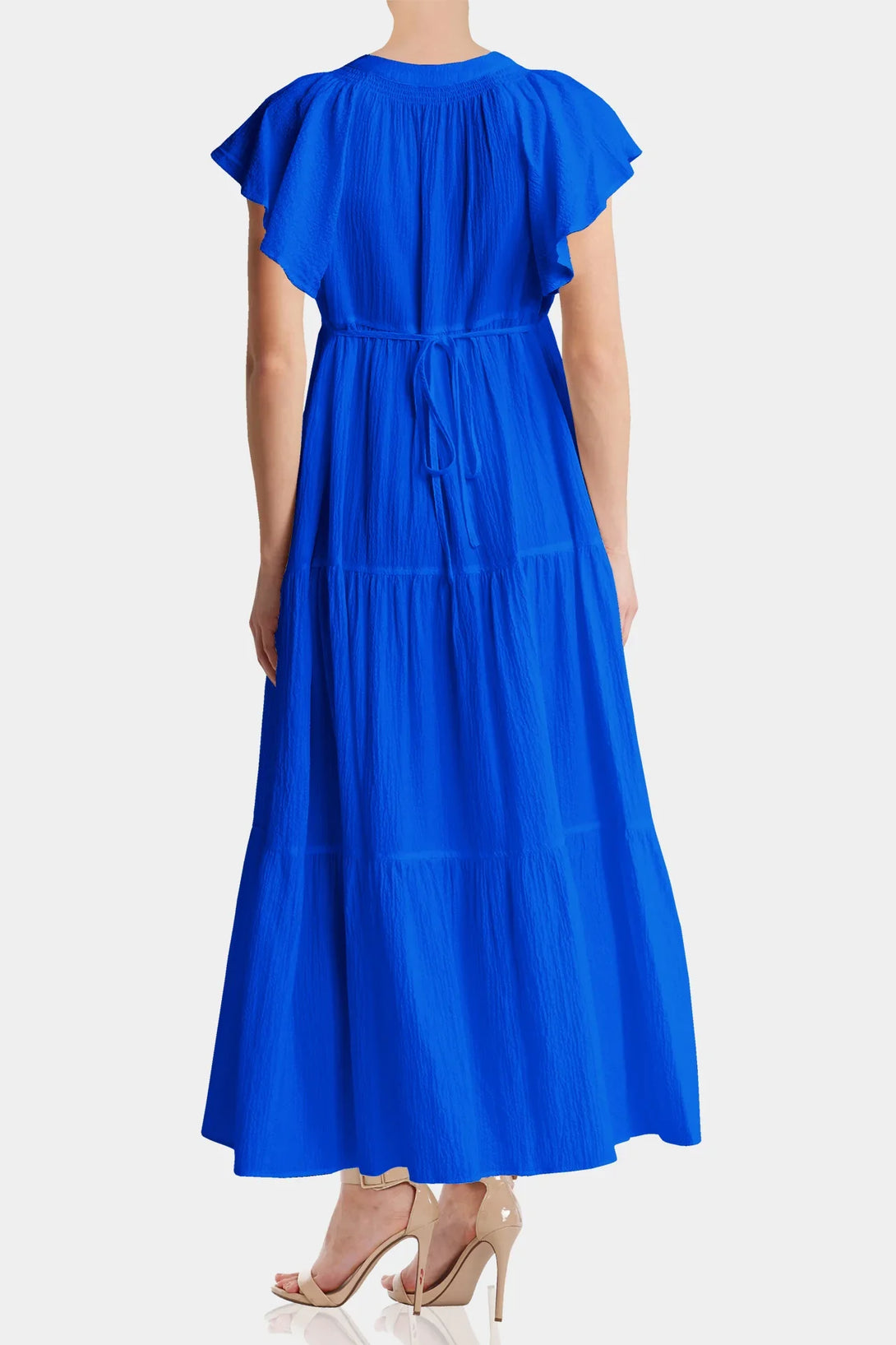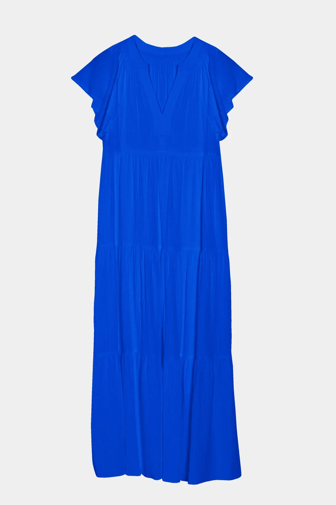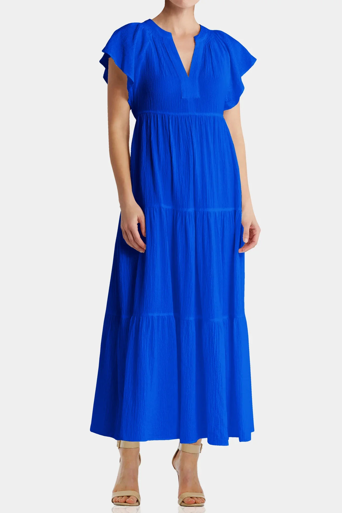 Expertly crafted for comfort and style, this Women Solid Flutter Sleeve Long Dress is perfect for any occasion. With flutter sleeves and a classic solid color, this dress flatters any body type and is made with high-quality materials for long-lasting wear. Elevate your wardrobe with this must-have piece.