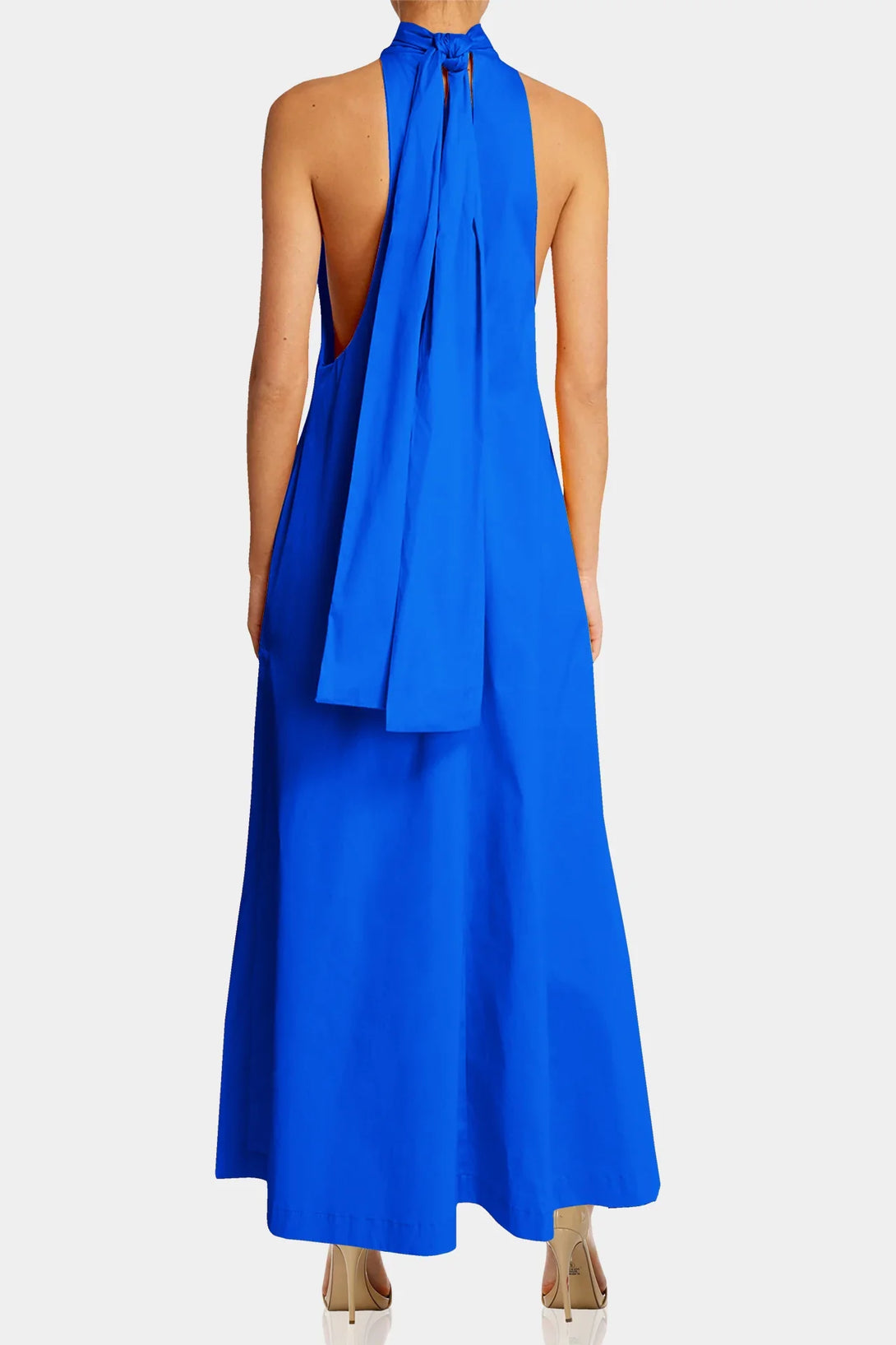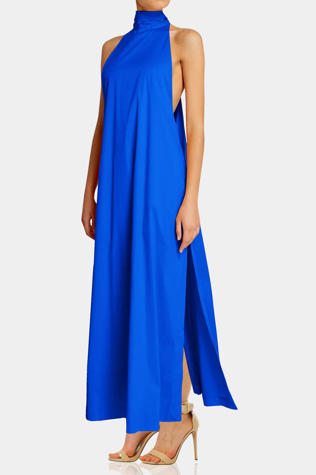 Enhance your wardrobe with this stunning Blue Sleeveless High-Neck Maxi Dress. The elegant high-neck design adds a touch of sophistication, while the sleeveless cut offers comfort and versatility. Made from high-quality fabric, this dress is perfect for any formal or casual occasion.