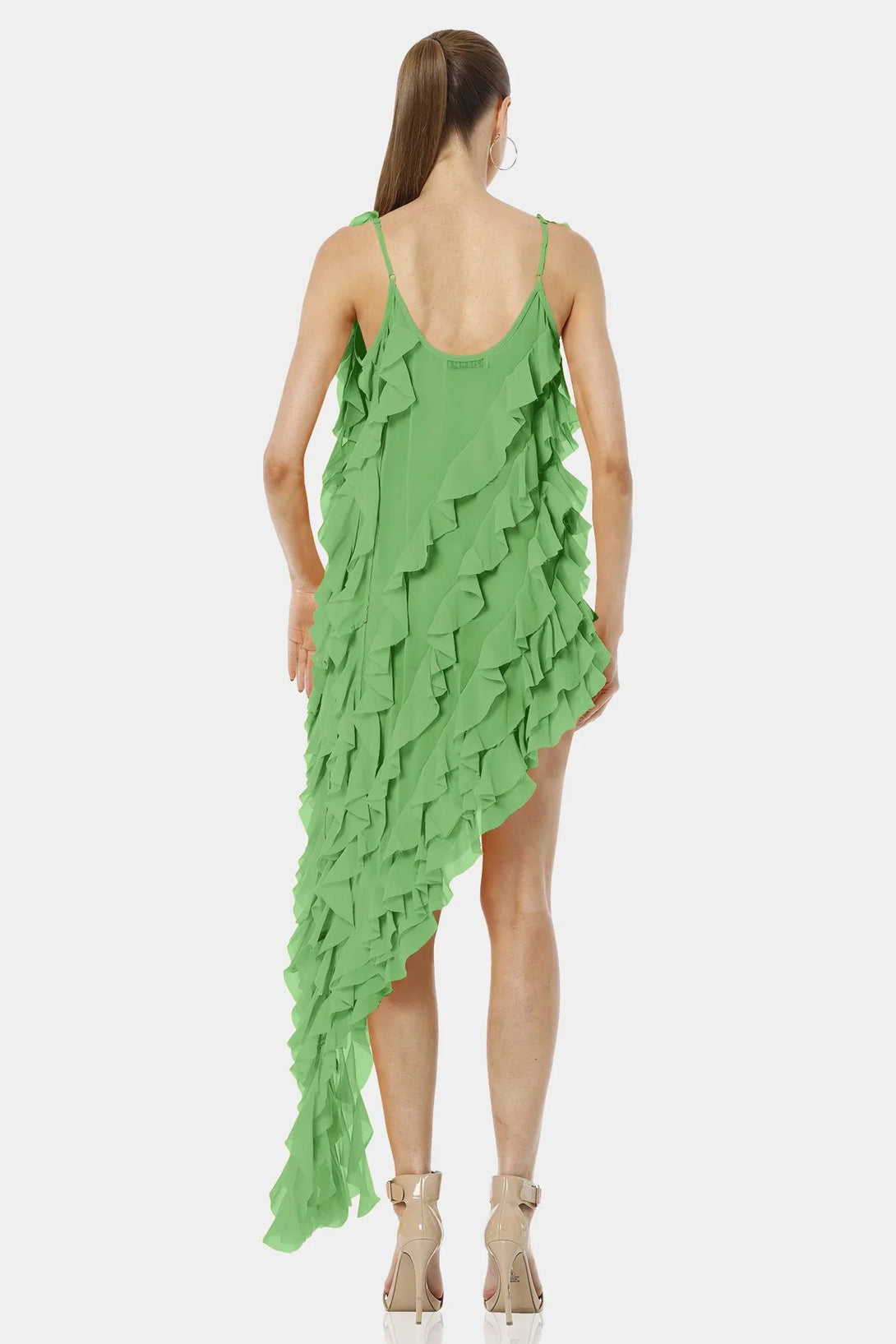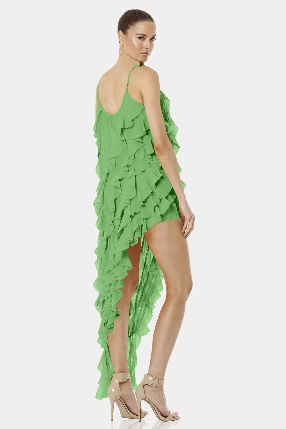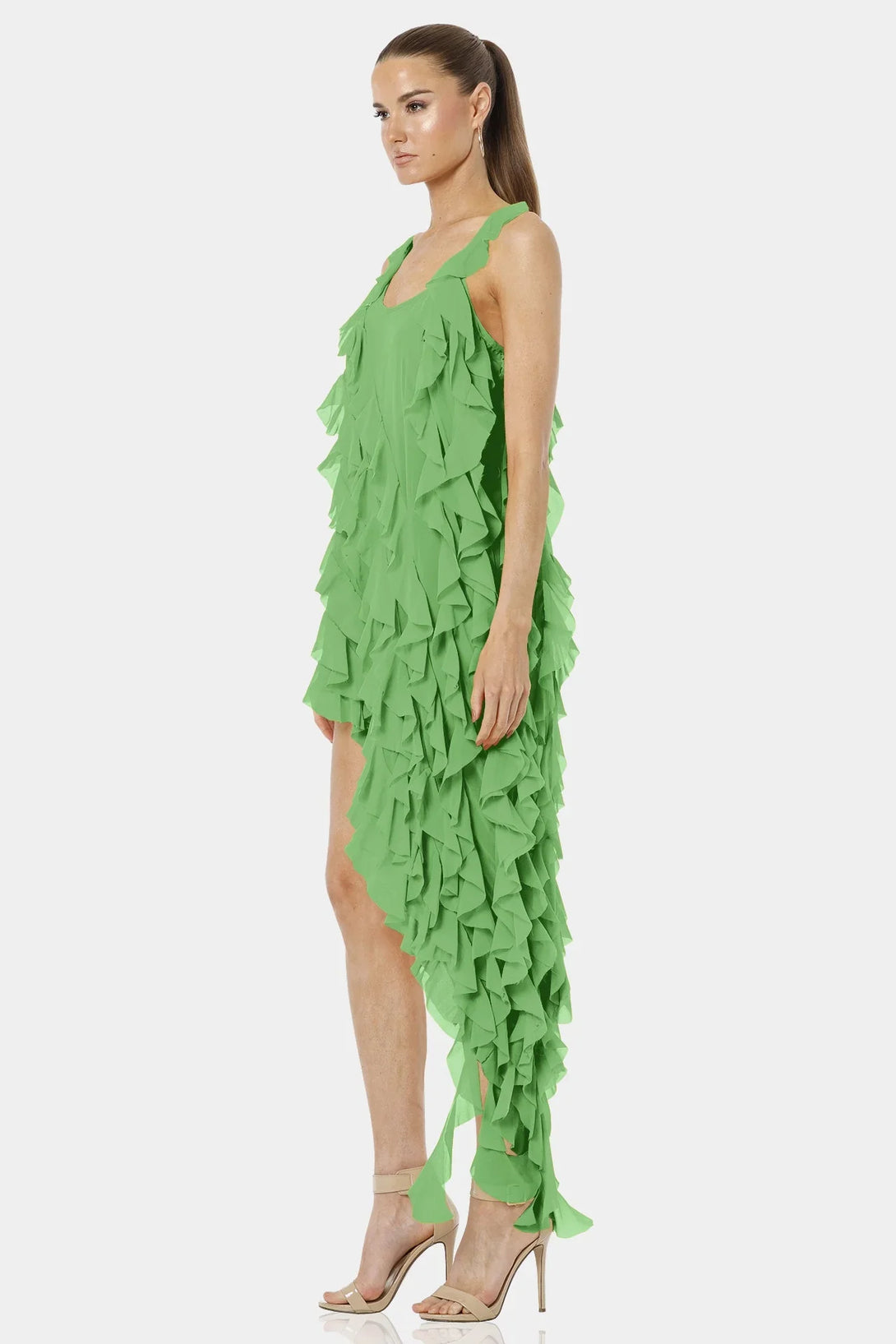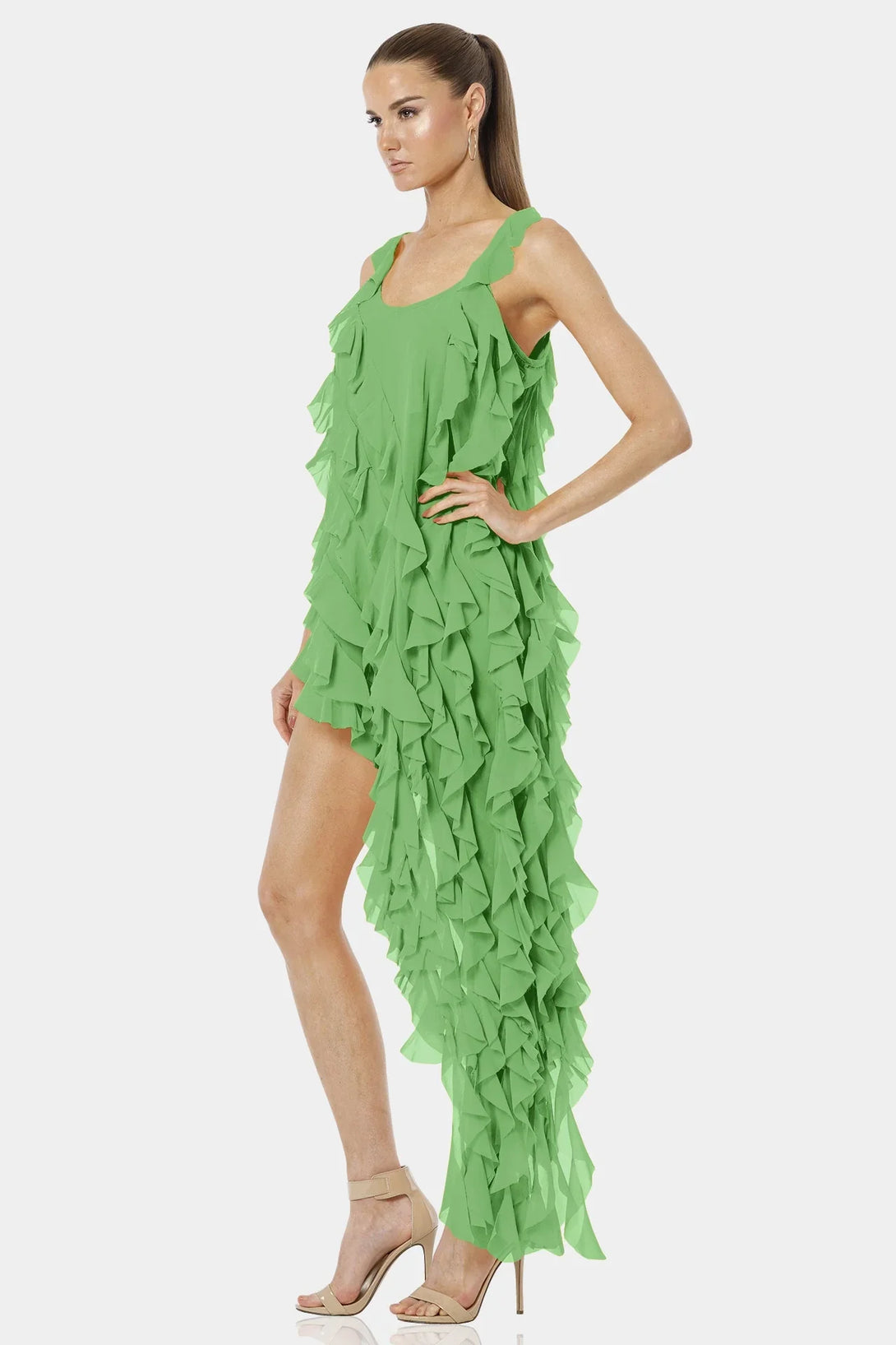 Carmen Mint Green High Low Dress With Ruffles