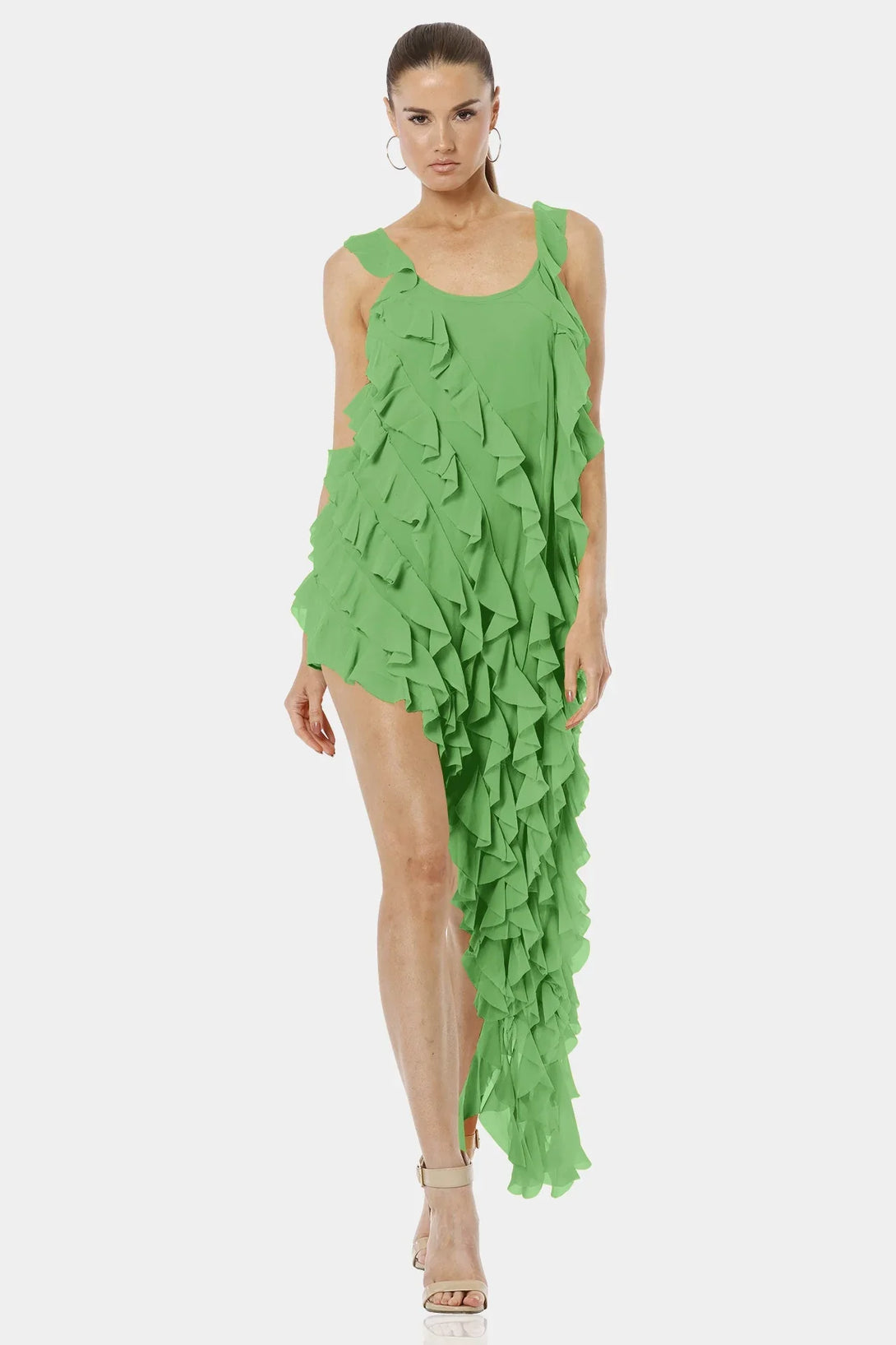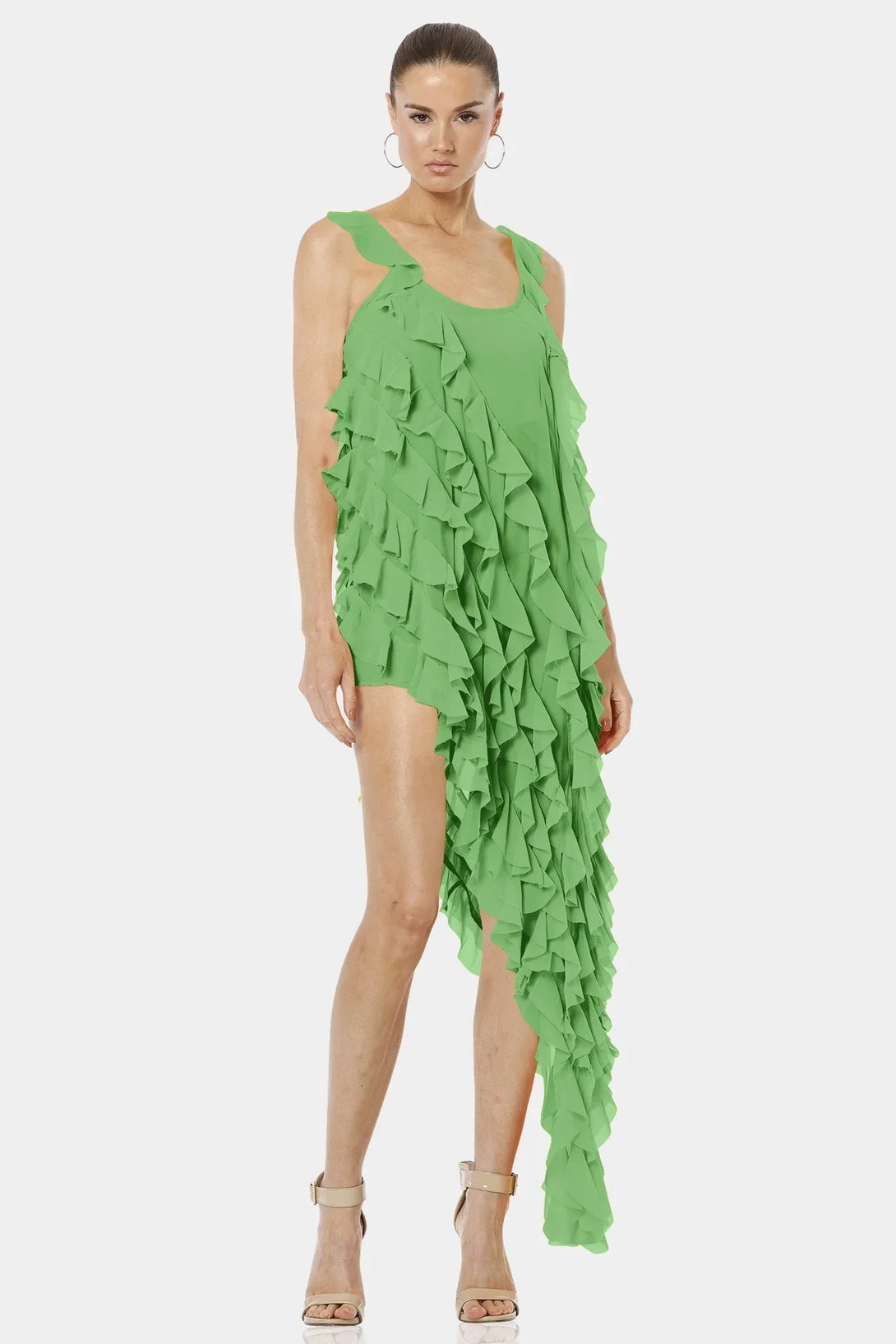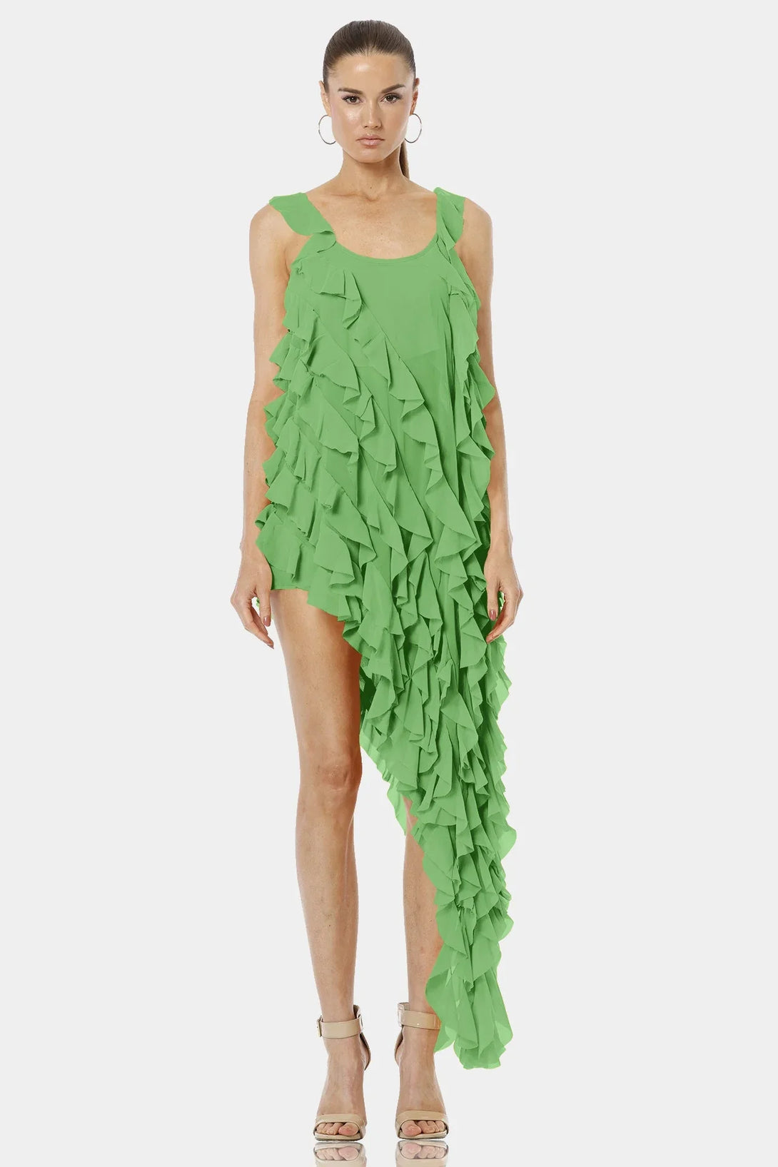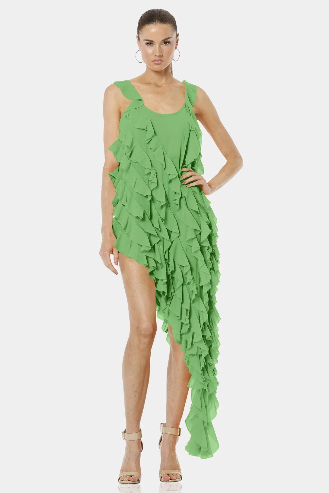 Carmen Mint Green High Low Dress With Ruffles