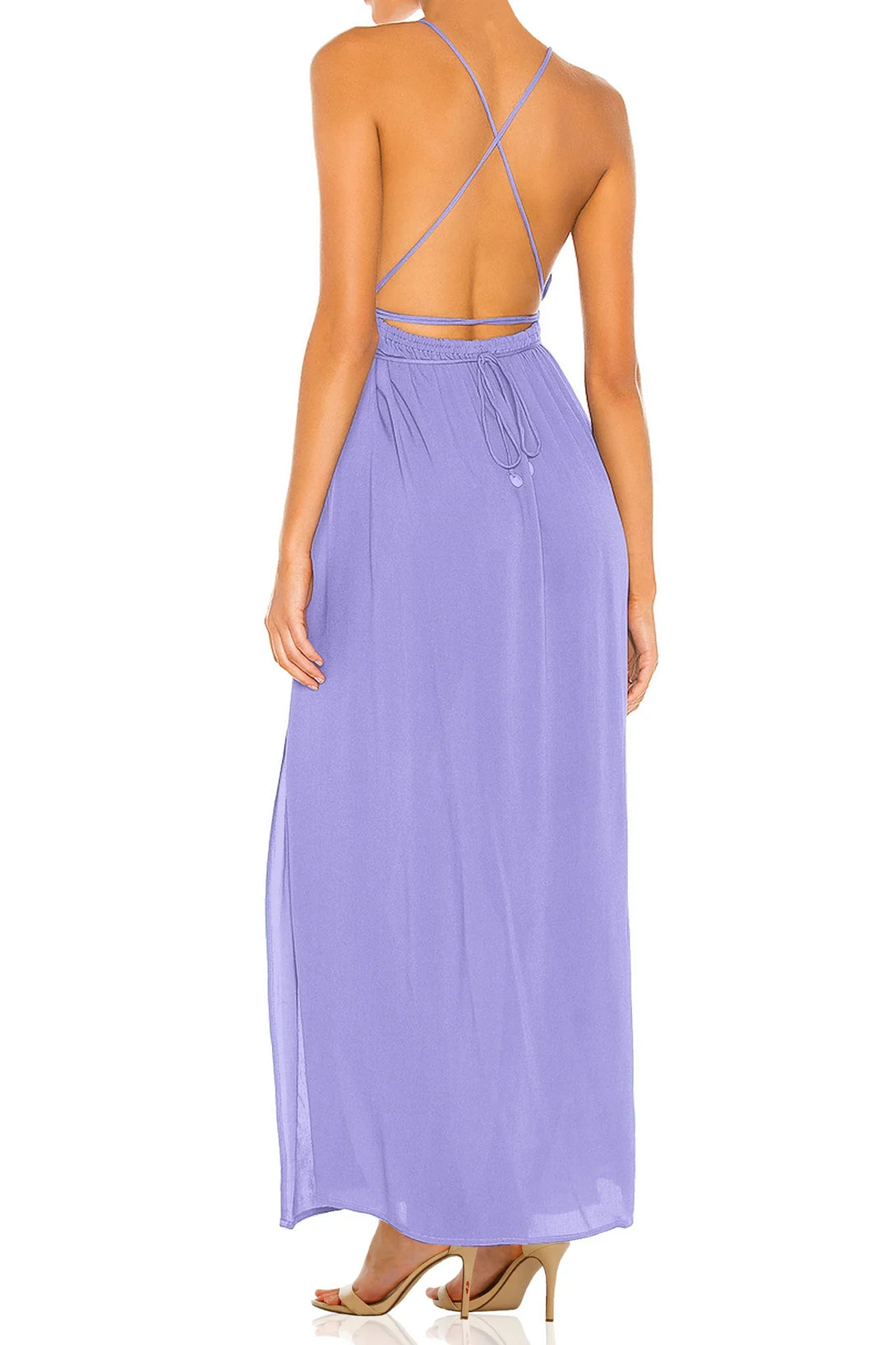 Cut Out Neck Maxi Dress in Light Purple