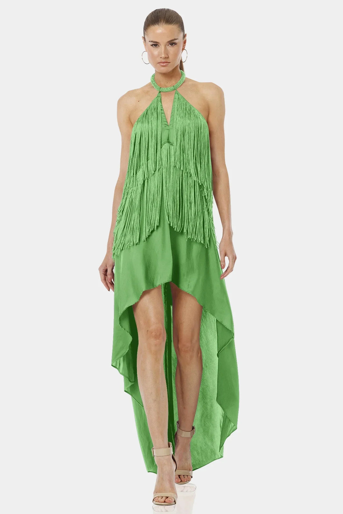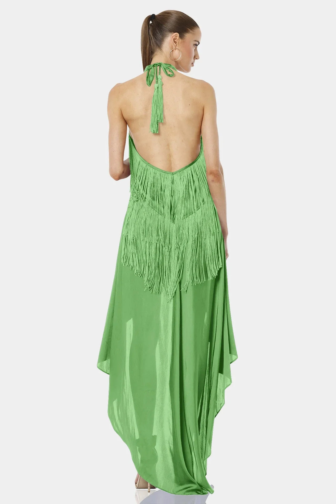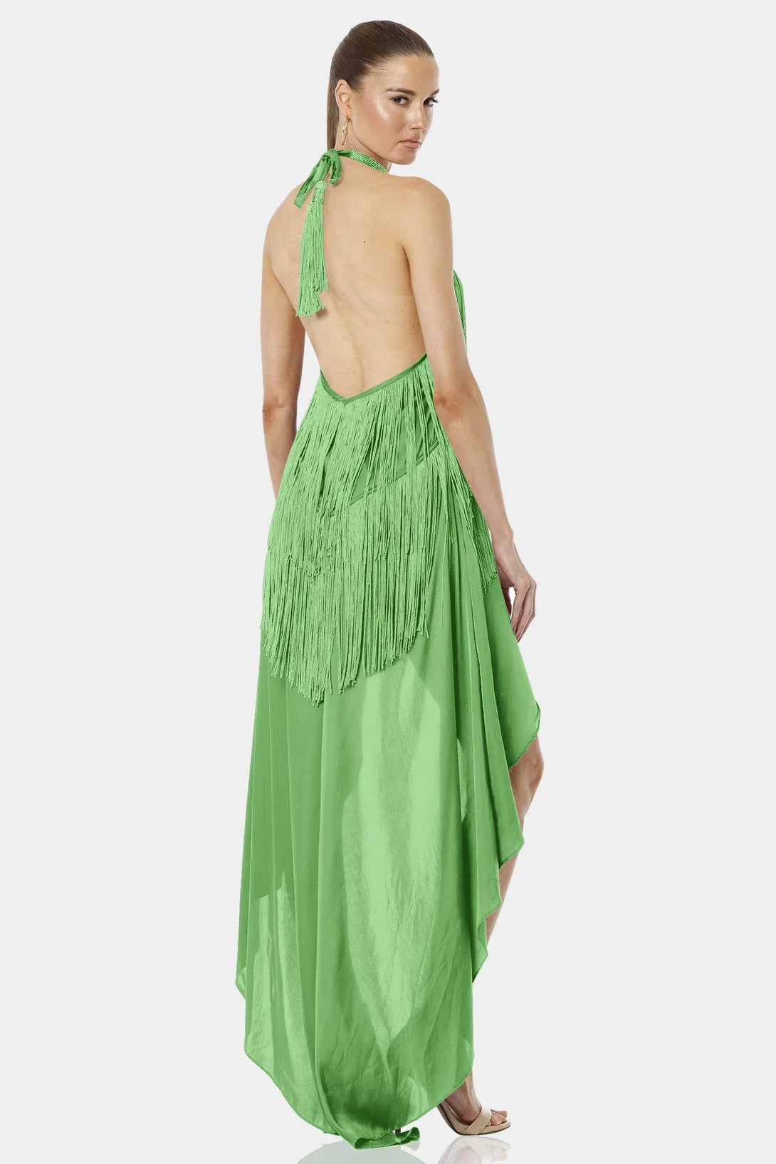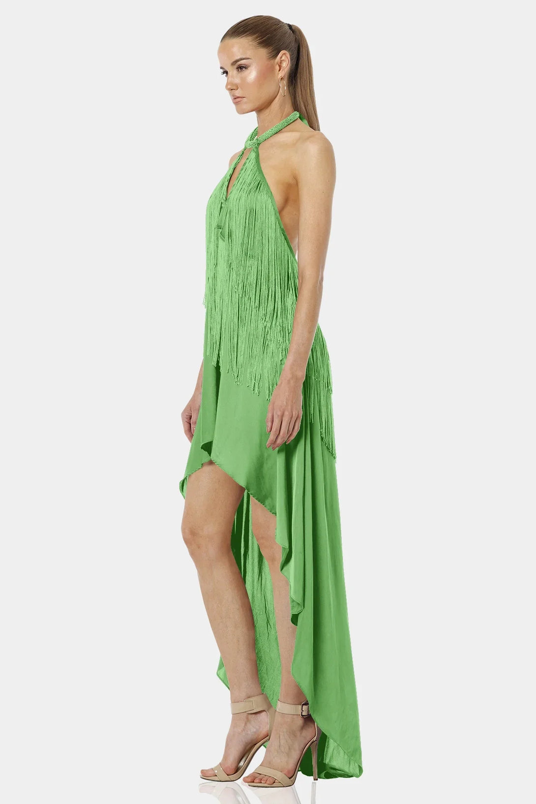 Carmina Mint Green Aesthetic Dress With Long Fringe