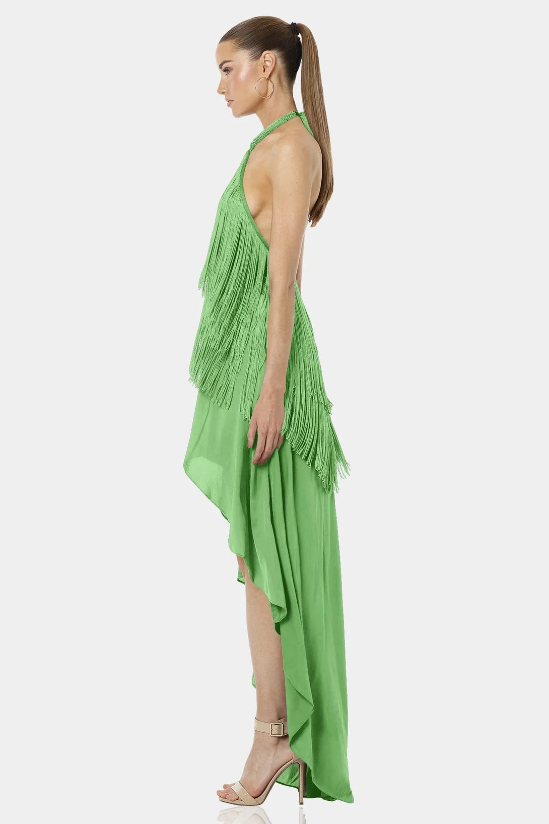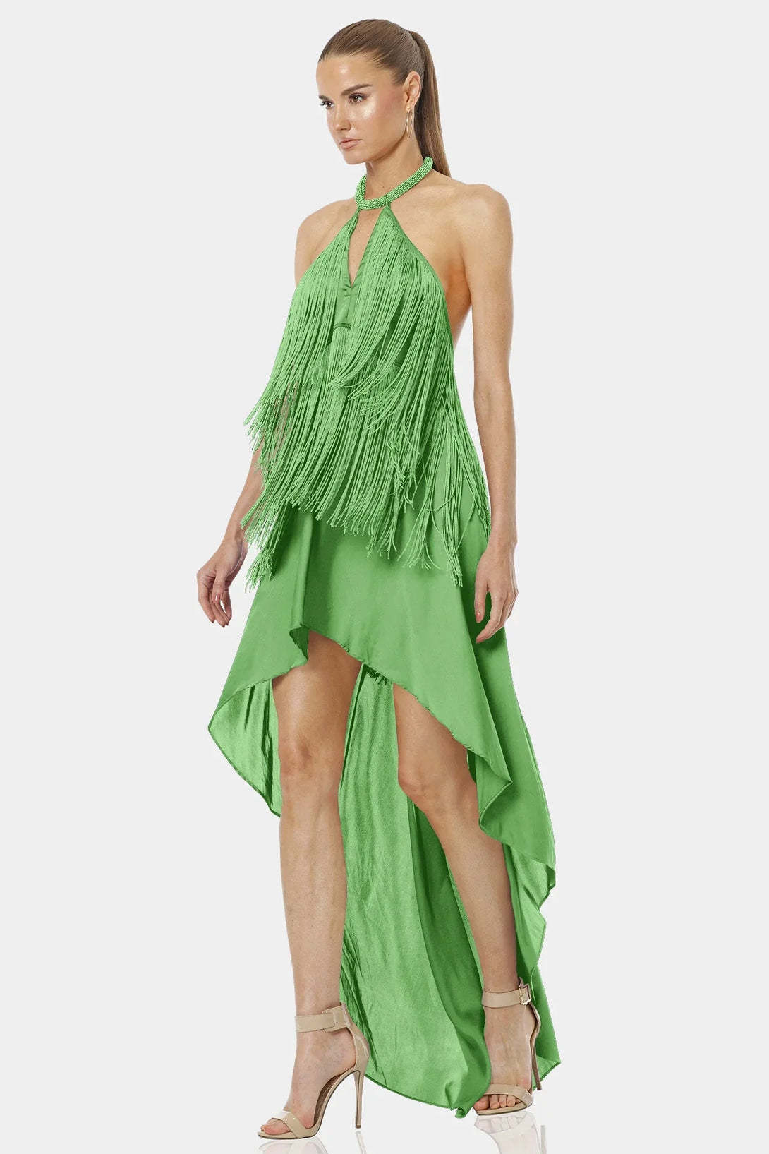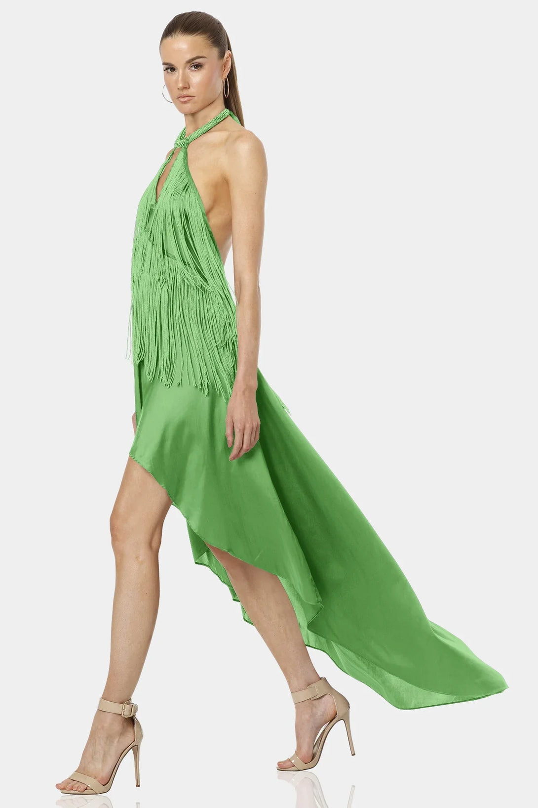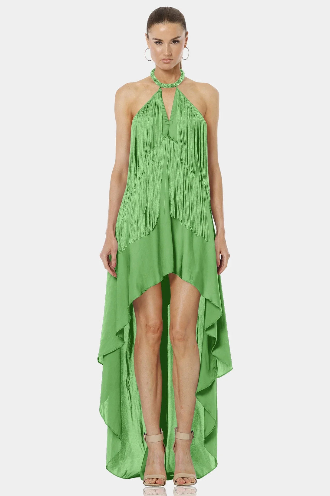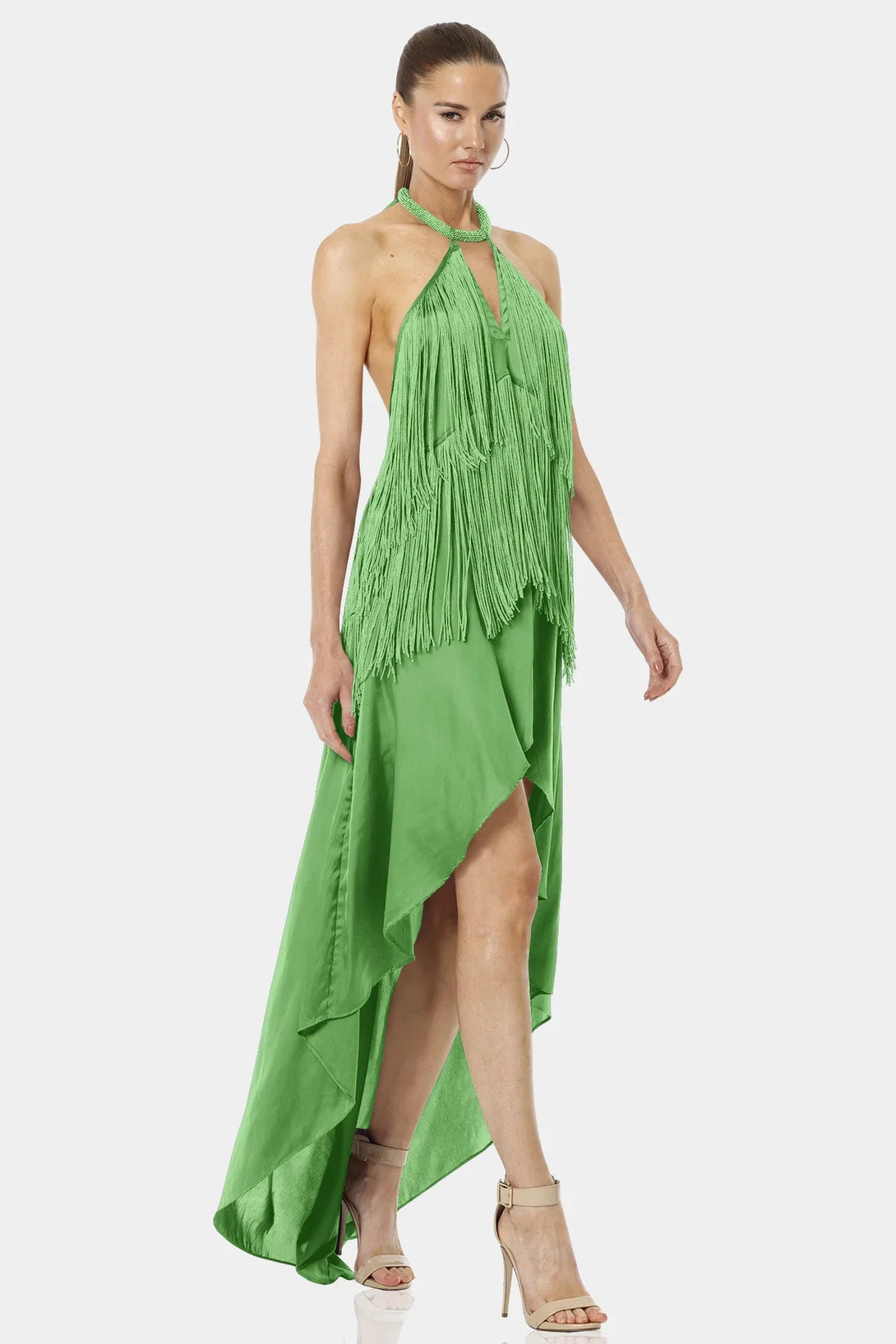 Carmina Mint Green Aesthetic Dress With Long Fringe