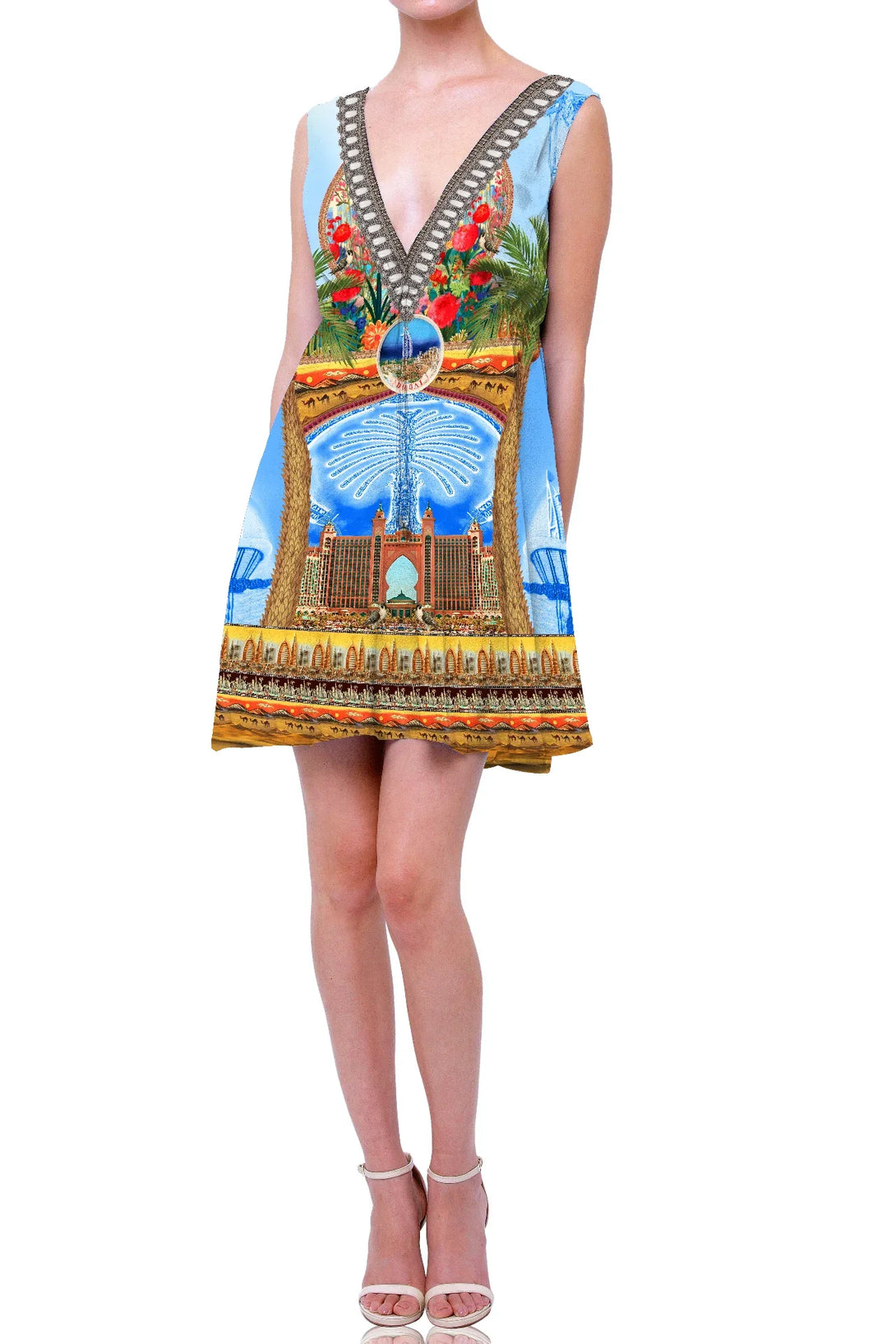 Embrace the carefree days of summer in a breezy,Ā vibrant V-neck short sleeveless dress.Ā This little number is more than just a garment; it's a passport to endless sunny adventures and effortless style.