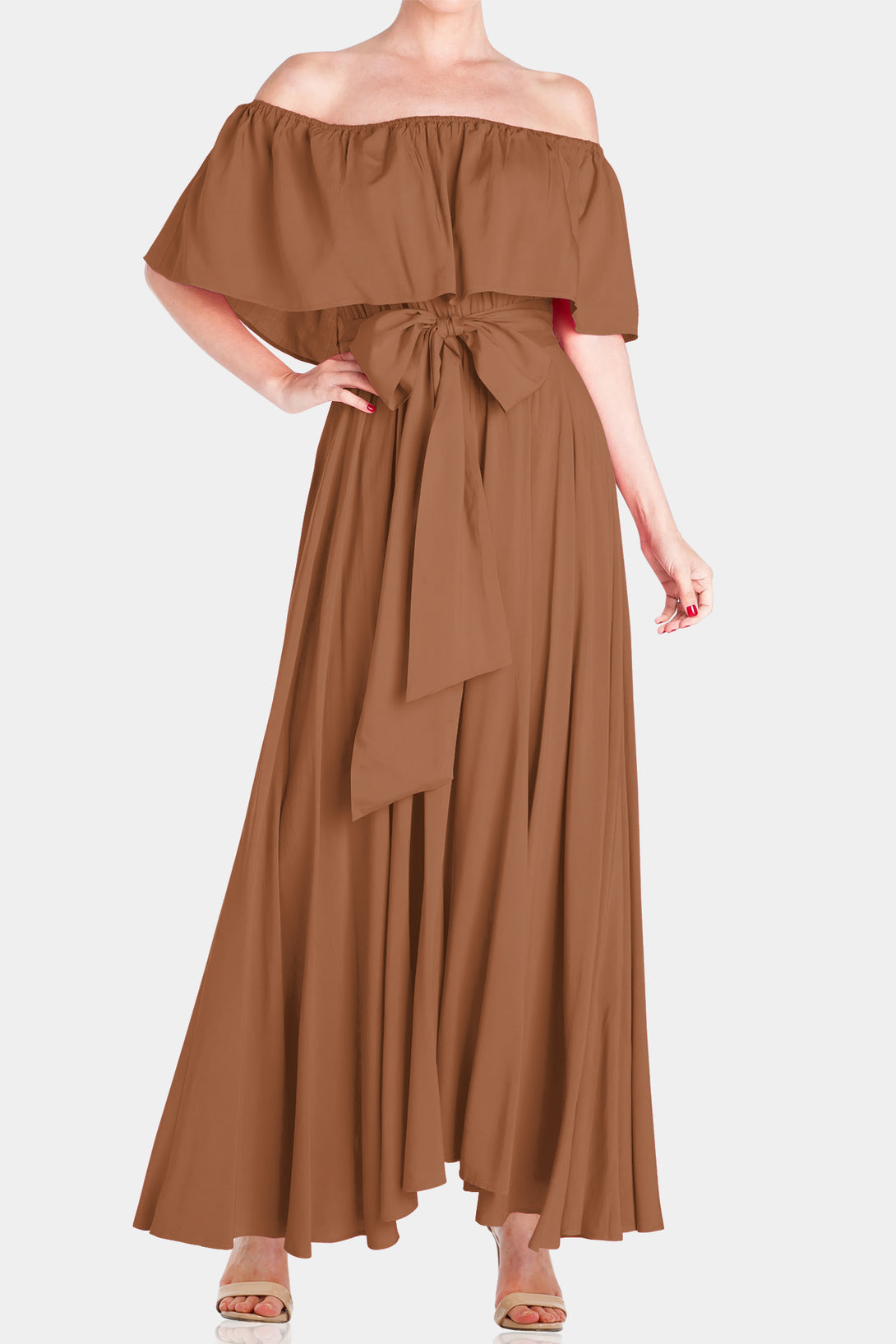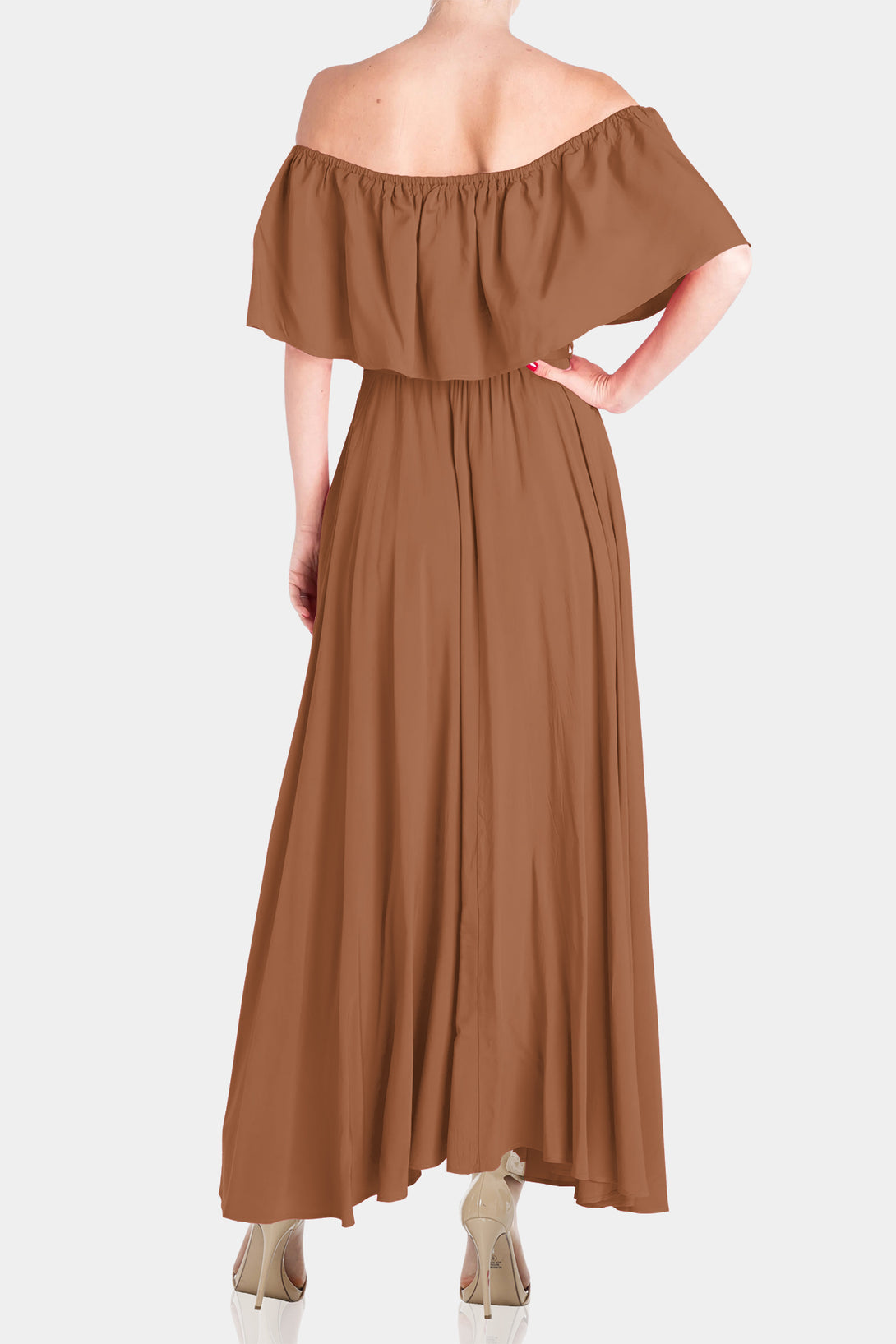 Introducing our chic and effortless Stylish Off-Shoulder Maxi Dress for Women. With its trendy off-shoulder design, this dress is perfect for any occasion. Made with high-quality materials, it provides comfort and style. Elevate your wardrobe with this must-have dress.
