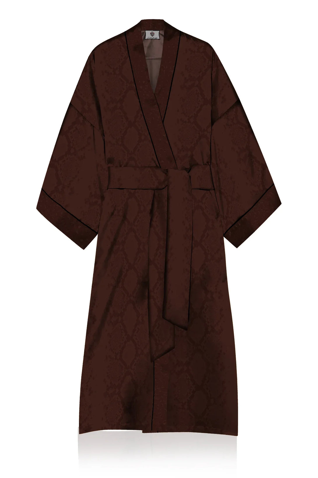 • Kyle x Shahida long satin robe with Nature Print contrast Color