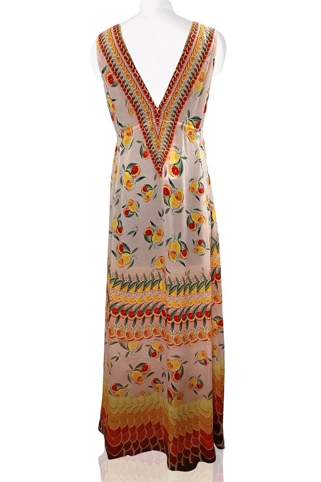 A vibrant yellow that excite the room. This, my dear, is the maxi dress of your dreams. Crafted from fabric that flows like liquid silk, it caresses your curves, creating a silhouette both elegant and alluring.