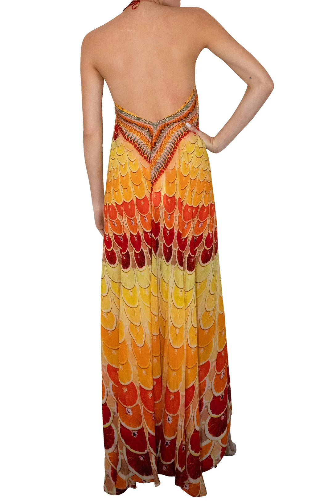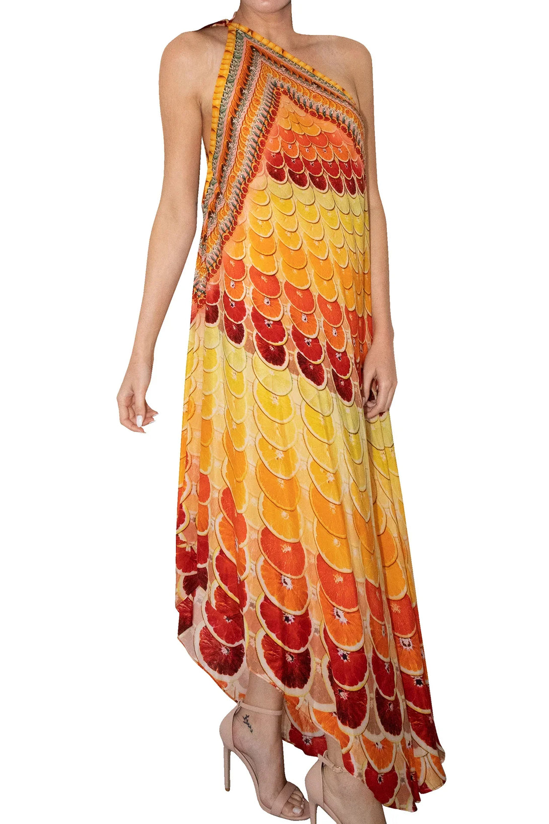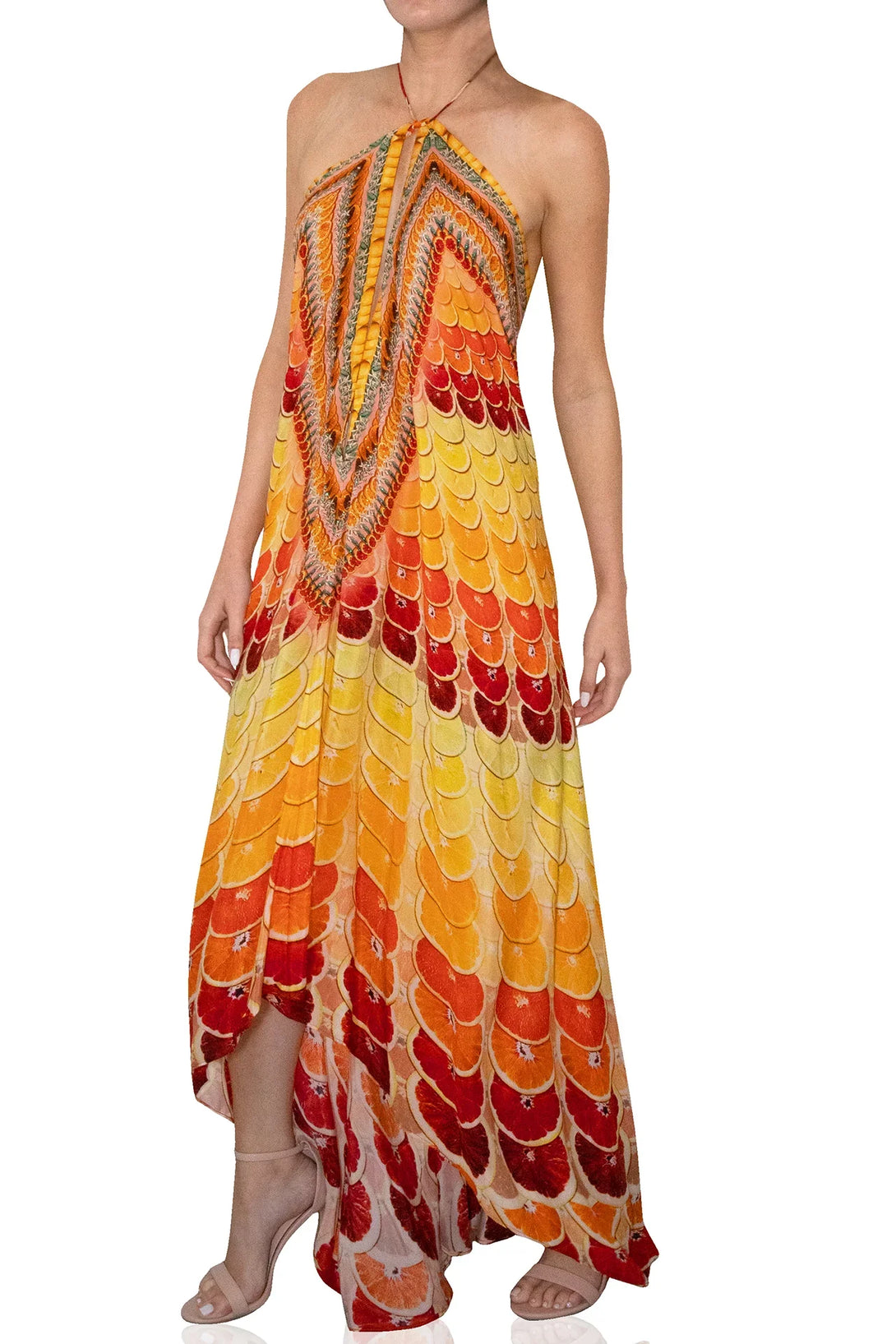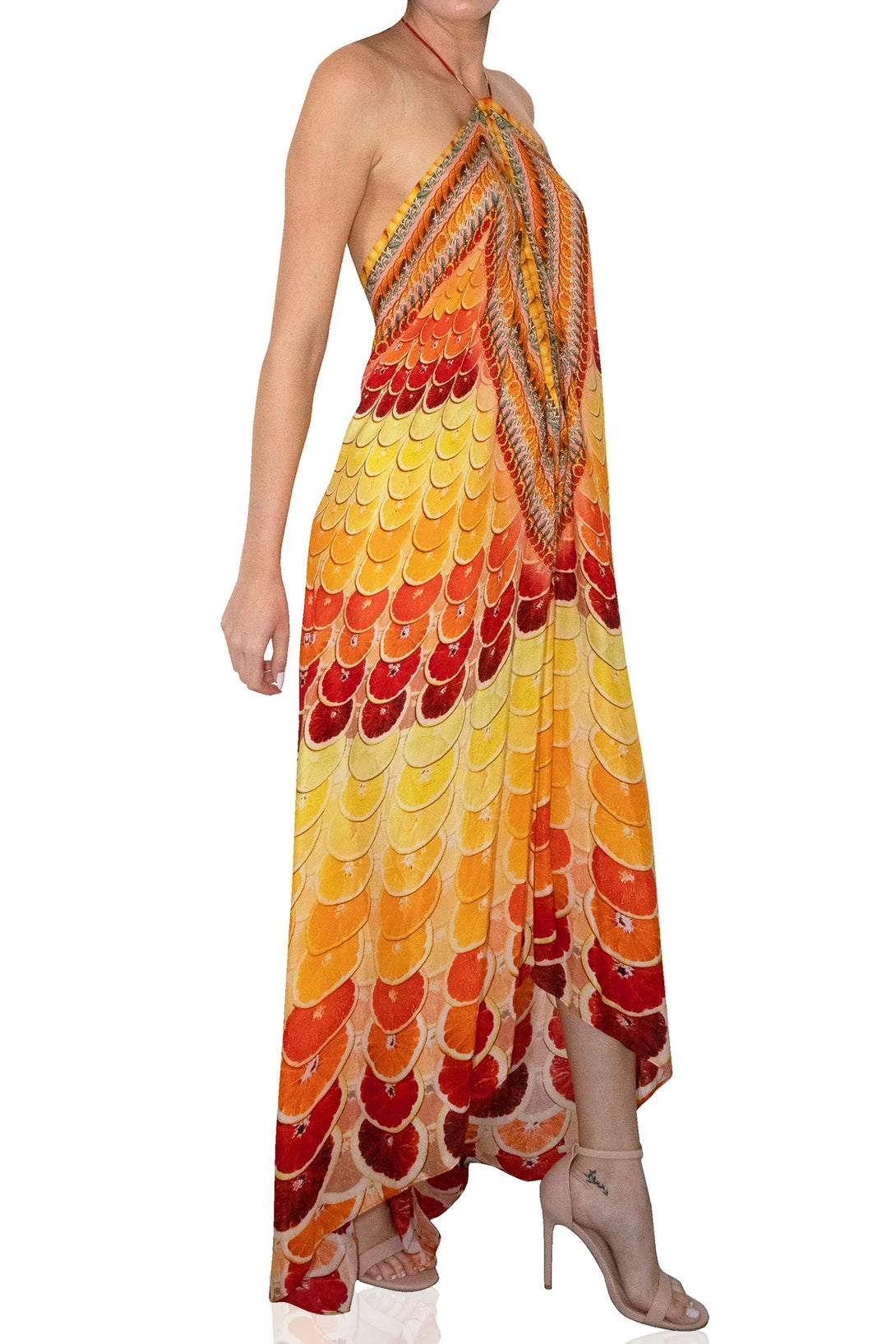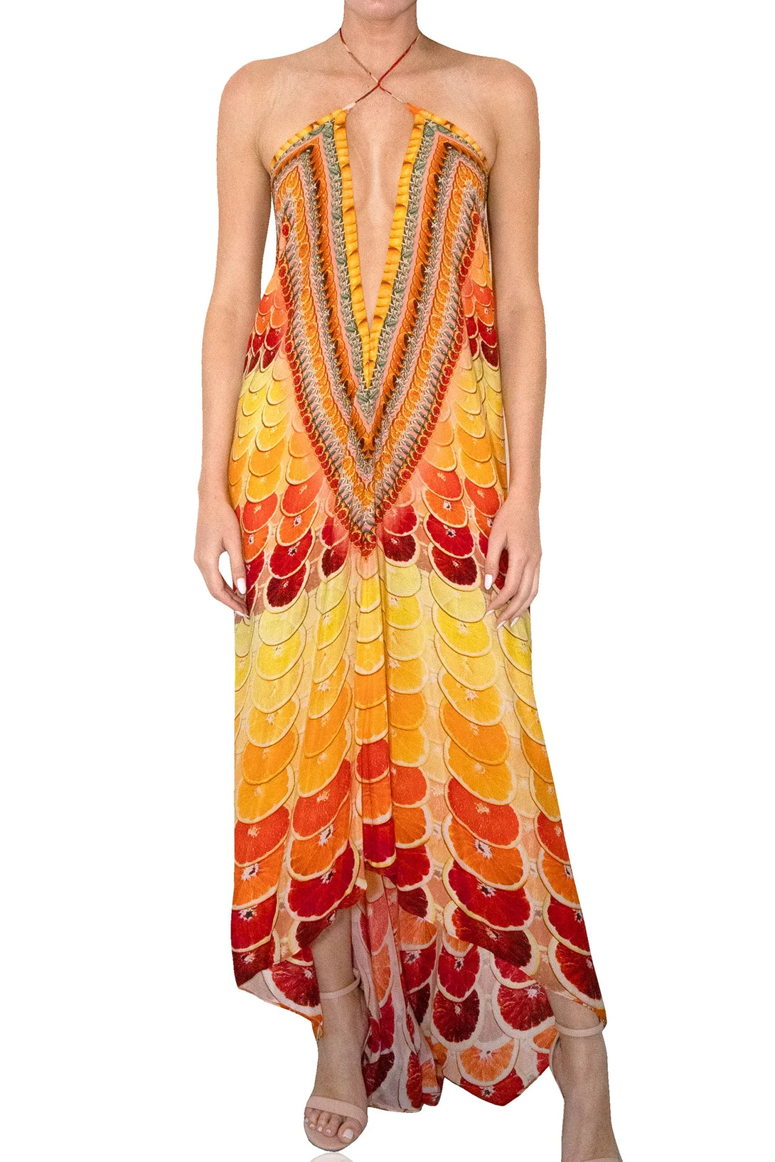 Multicolored and multi patterned maxi dress that can be used in multi ways -