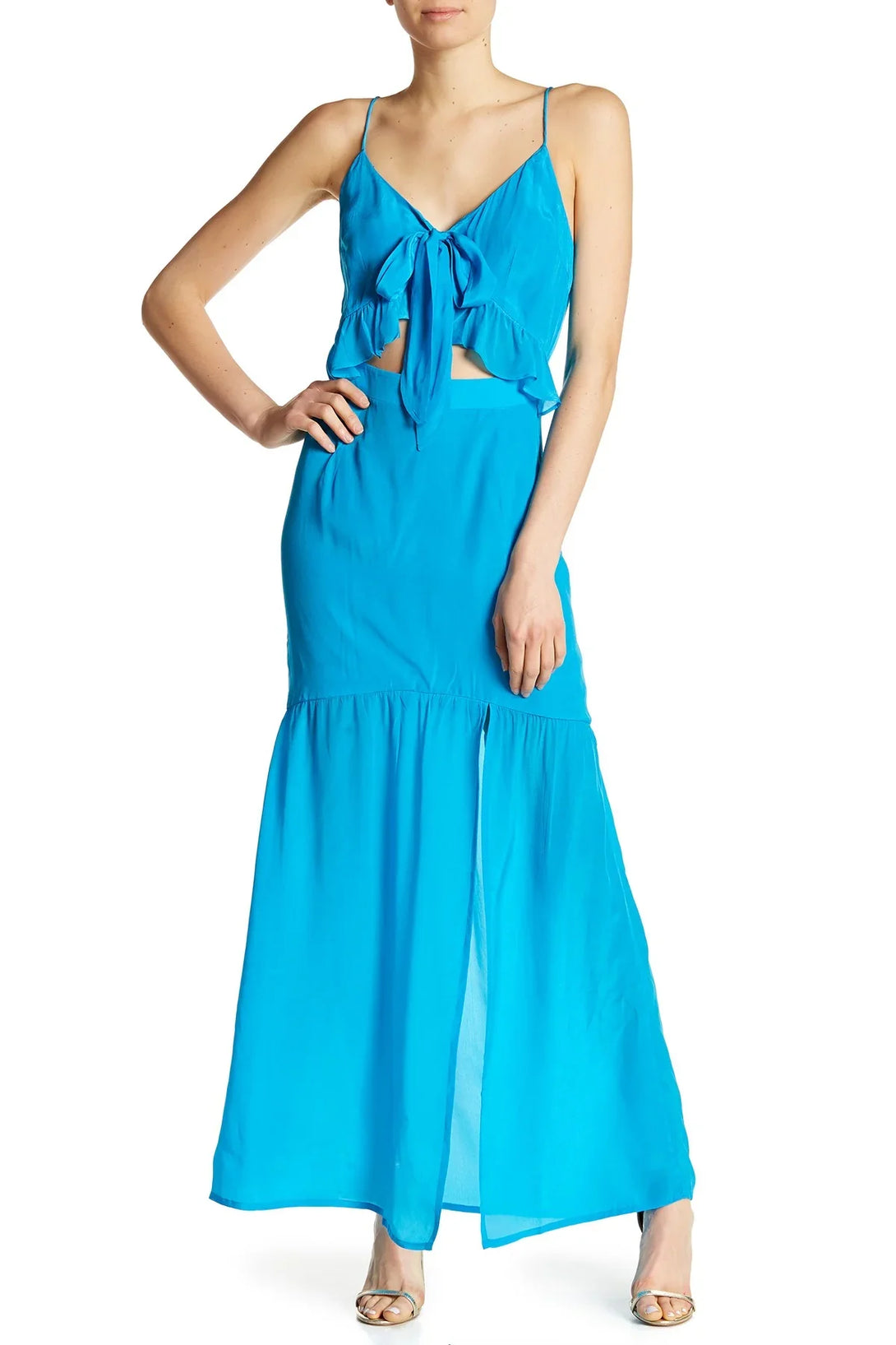 Embrace your femininity in this white maxi dresses for women, where designer side splits, gently accentuates your legs creating a look that's both flattering and effortlessly charming, available at Shahida Parides.