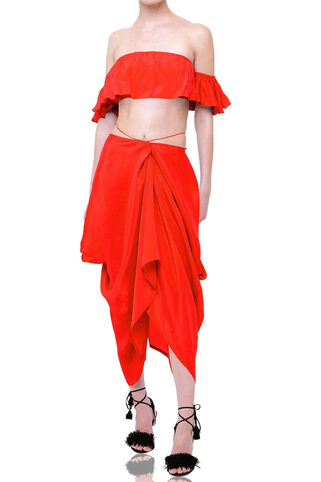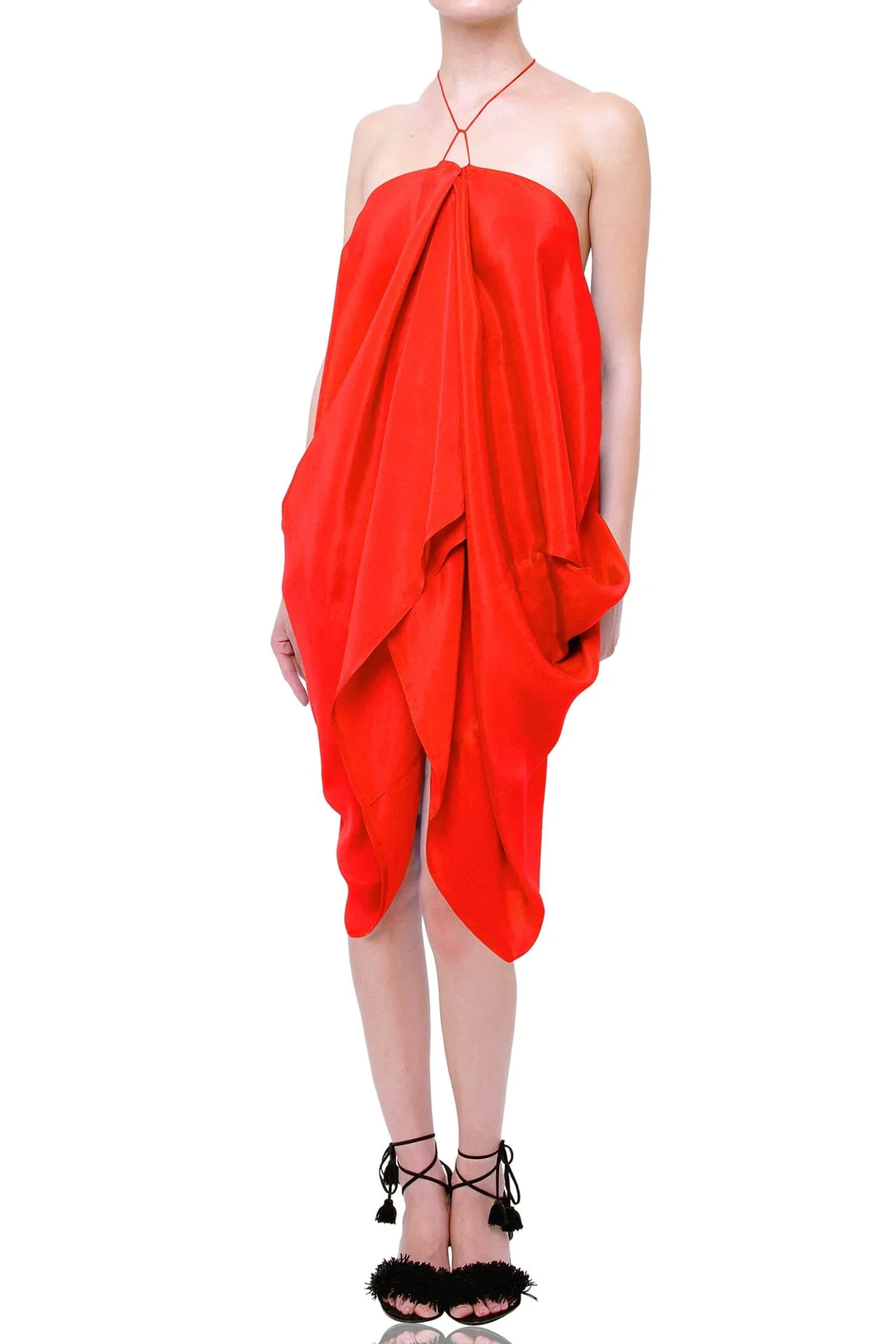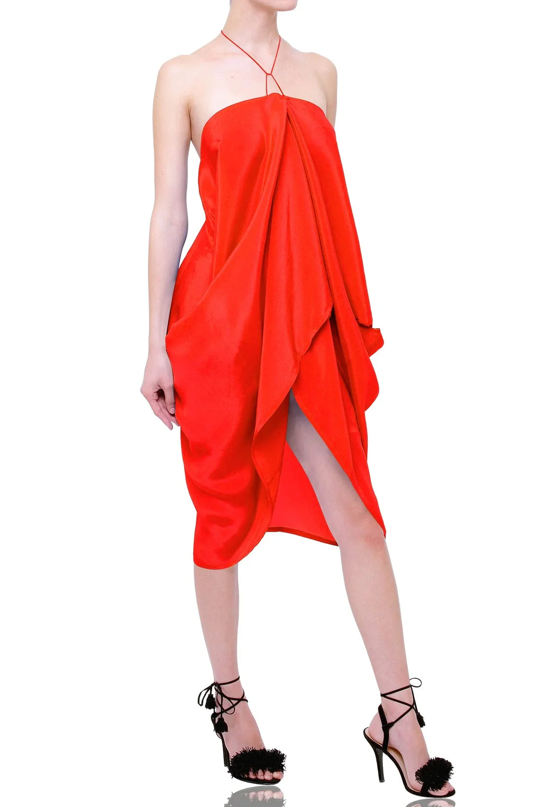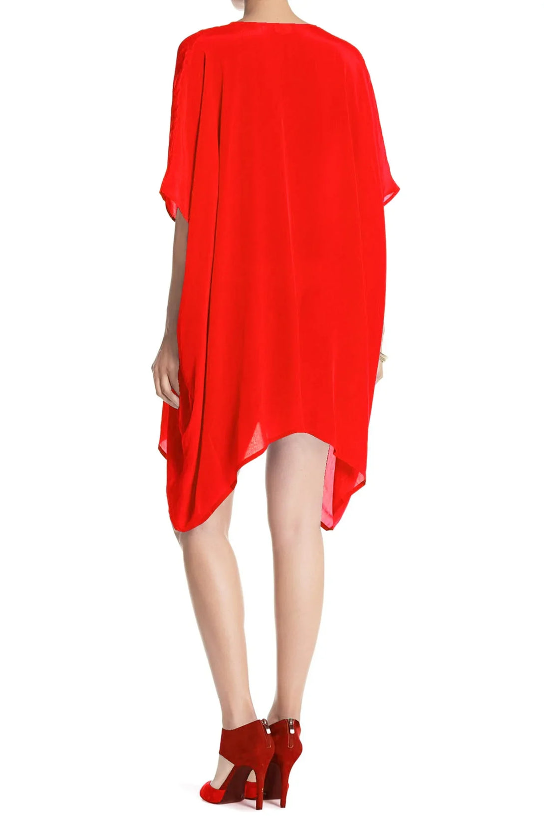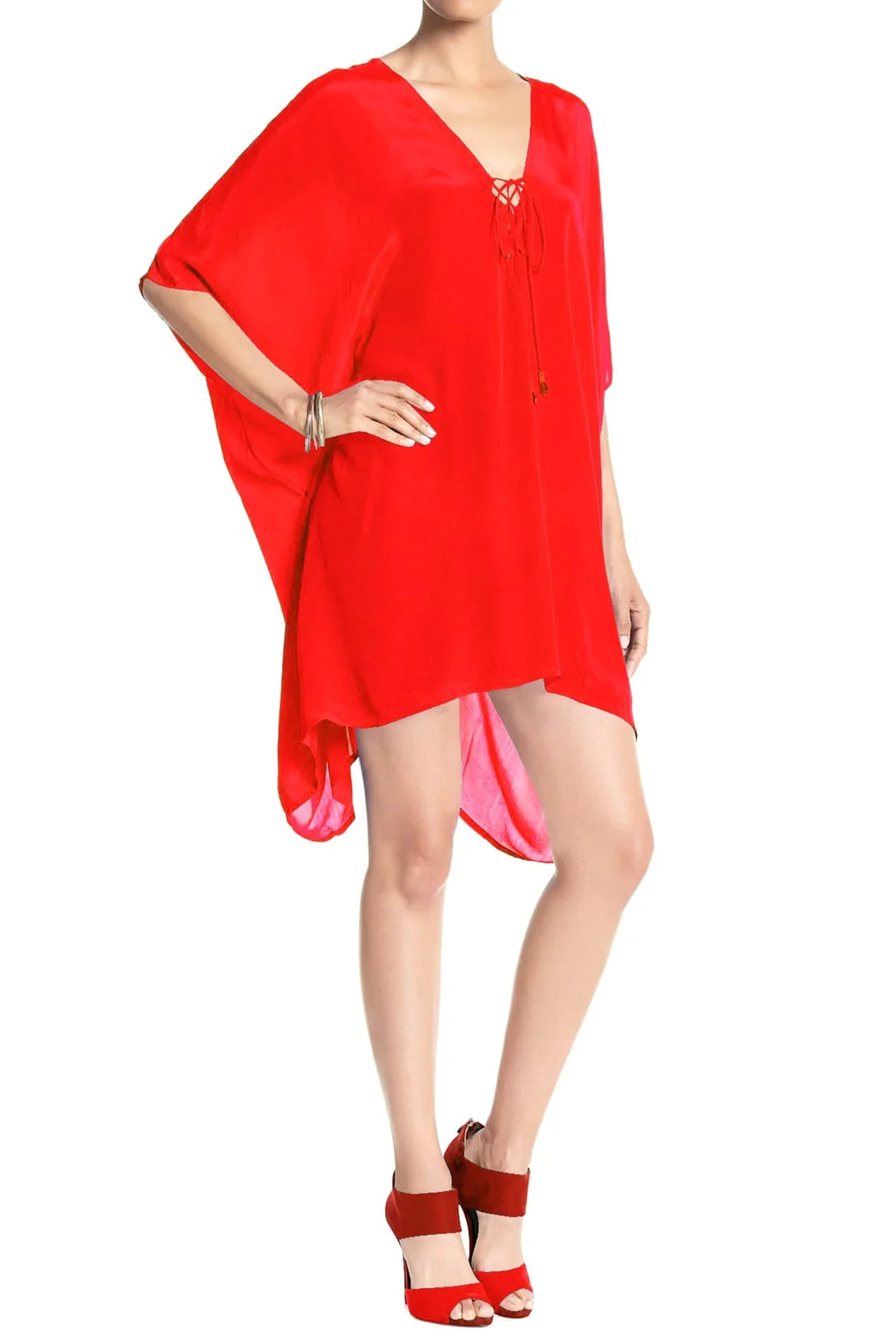 Wear Shahida Parides multi wear dress, one of four ways for the style you'll love! Versatility ensures you'll never be bored of this red silk kaftan.