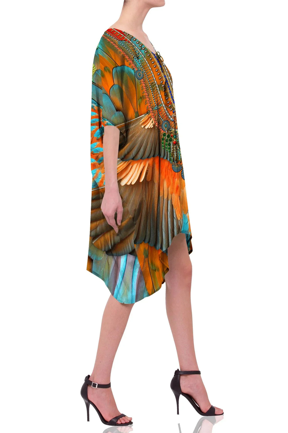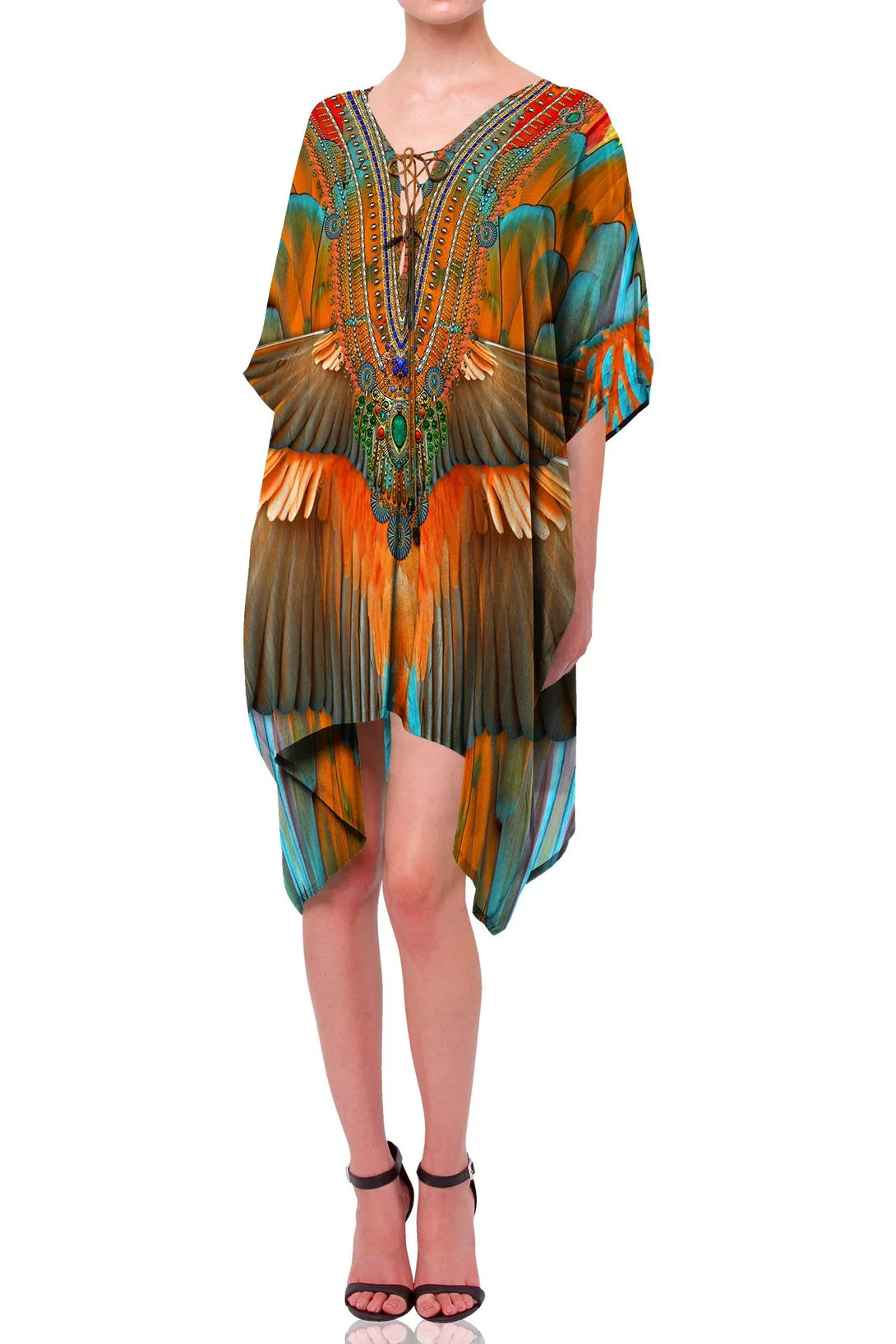 Wear Shahida Parides multi wear dress, one of four ways for the style you'll love! Versatility ensures you'll never be bored of this blue silk kaftan.