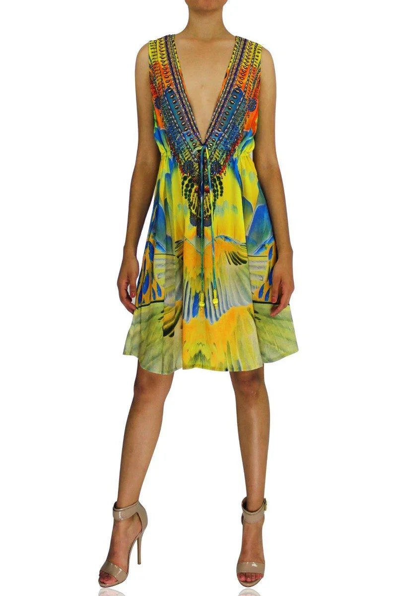 Embrace the carefree days of summer in a breezy,Ā vibrant V-neck short sleeveless dress.Ā This little number is more than just a garment; it's a passport to endless sunny adventures and effortless style.