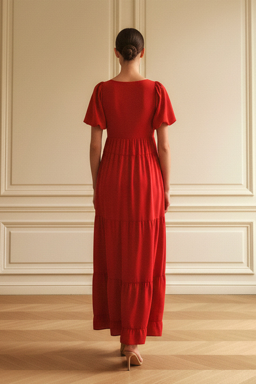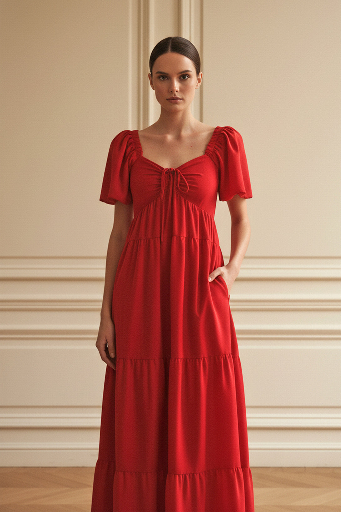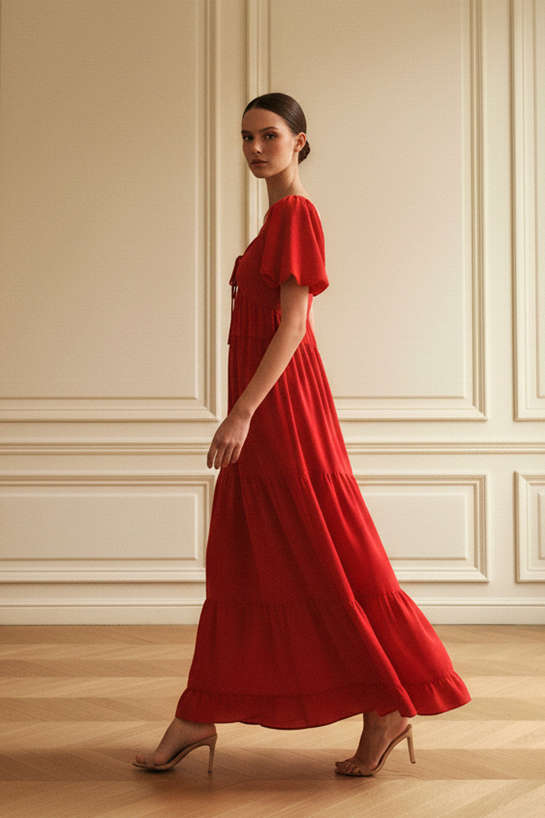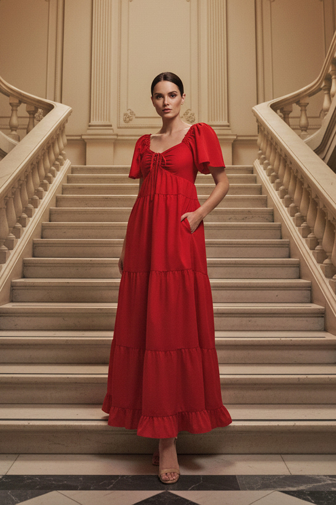 A vibrant long dress that ignites the room. This, my dear, is the maxi dress of your dreams. Crafted from fabric that flows like liquid, it caresses your curves, creating a silhouette both elegant and alluring, at Shahida Parides.