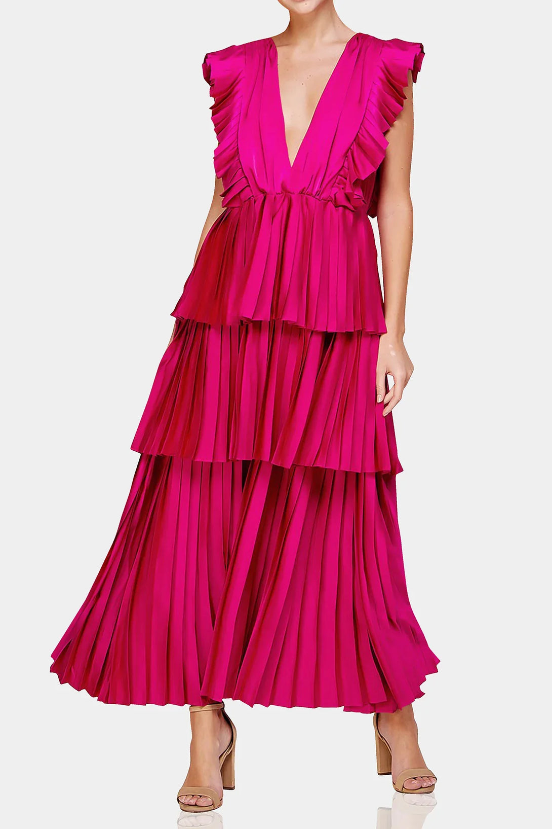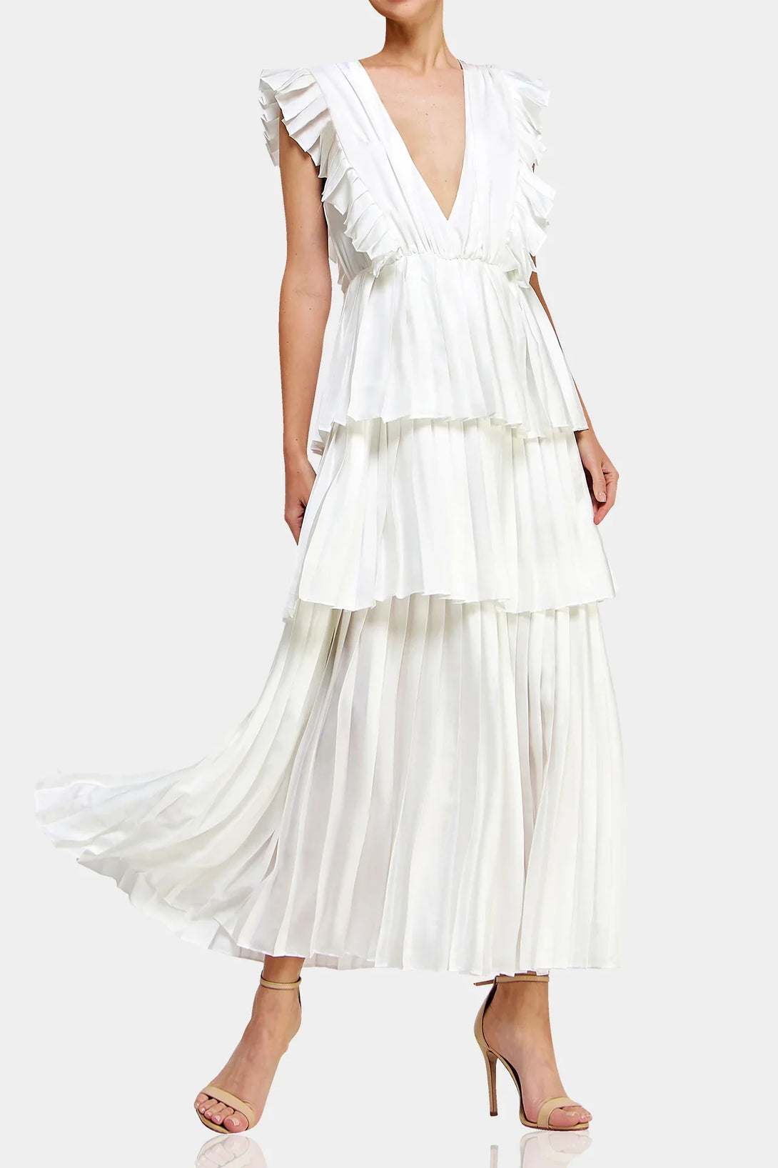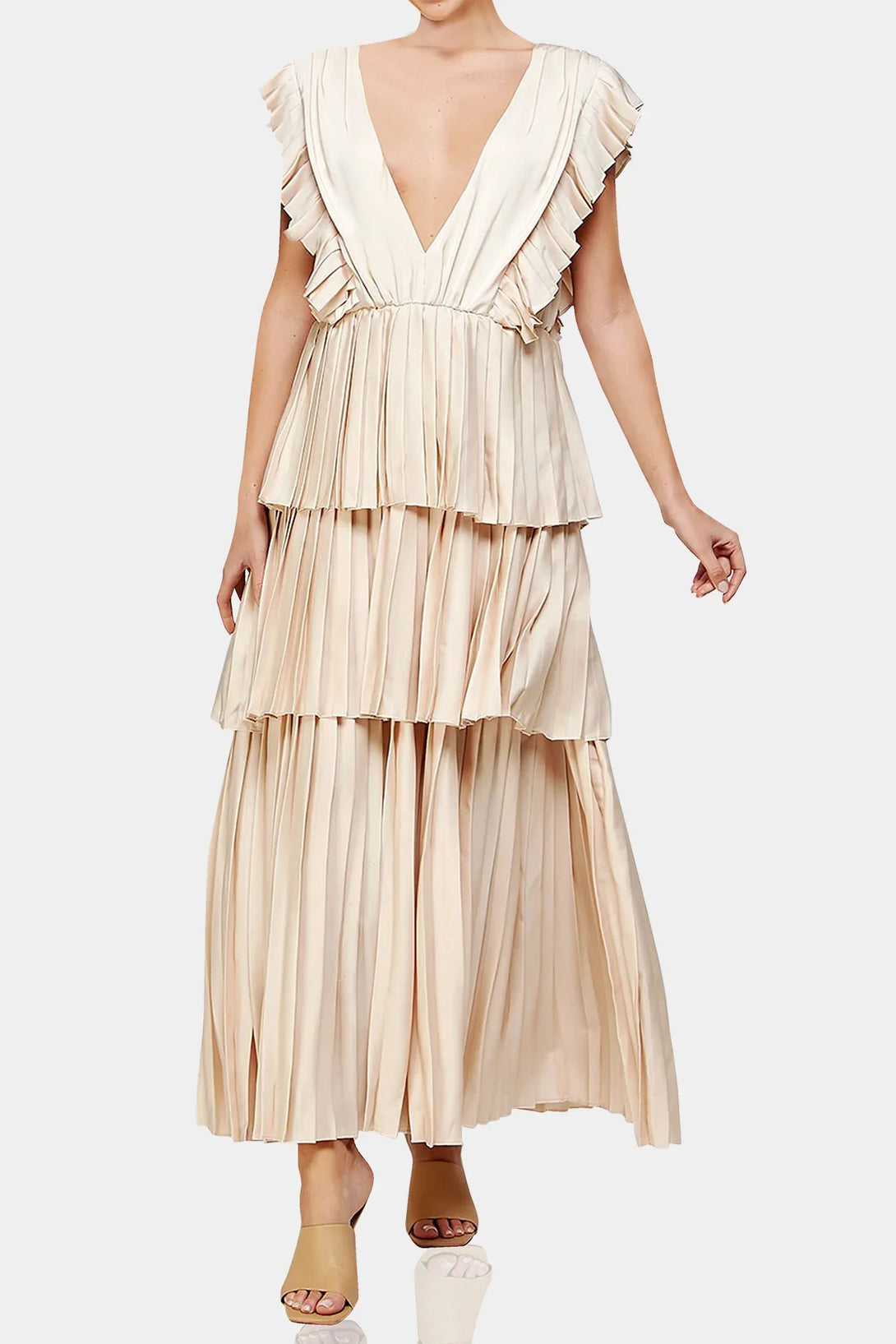 Elevate your wardrobe with the V-Neck Ruffle Maxi Dress, designed for effortless elegance. Its flattering V-neckline enhances your silhouette, while the delicate ruffle detailing adds a touch of feminine charm. Crafted for comfort and style, this maxi dress flows gracefully, making it ideal for both casual outings and special occasions. Experience a perfect blend of sophistication and ease with this versatile piece.