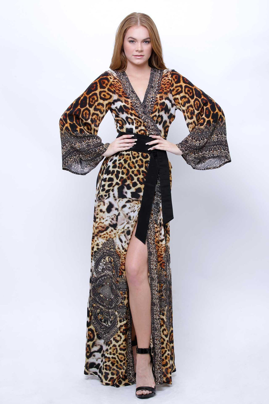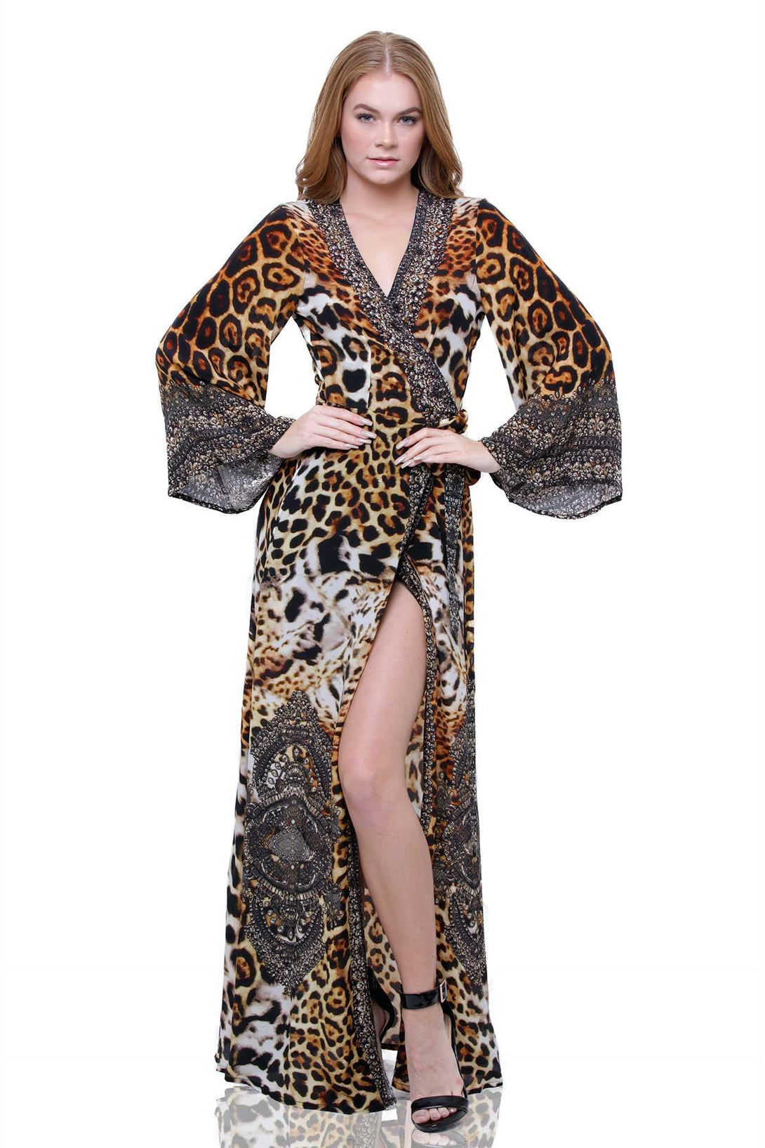 Animal Printed Maxi Wrap Long Sleeve Dress