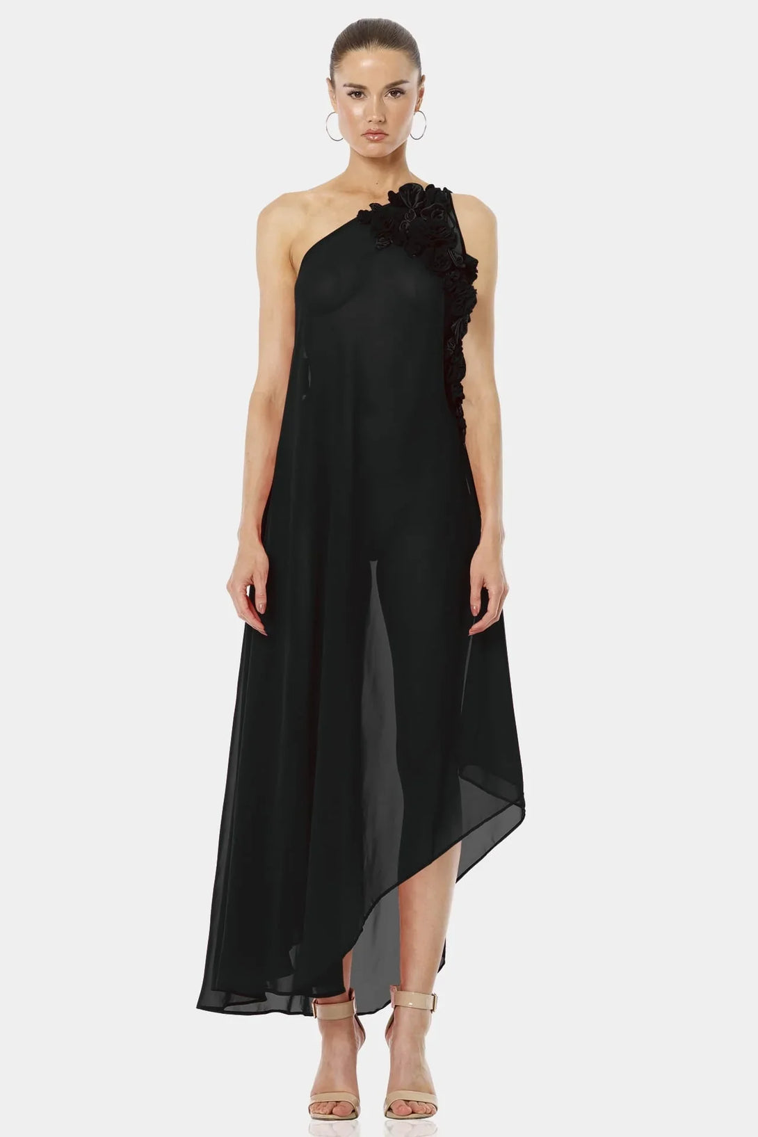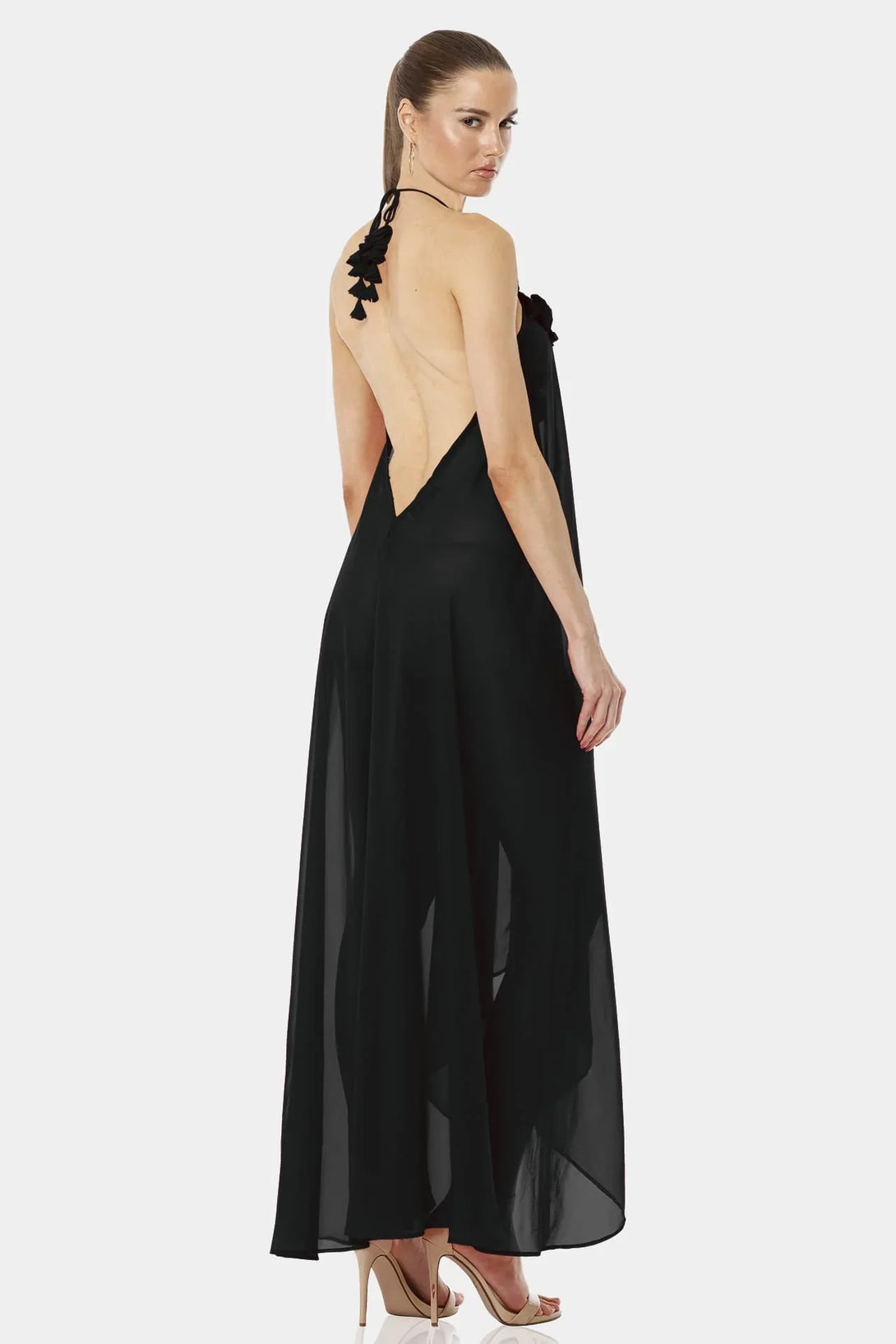 Architect's House Dark Black 3D Flower Multi Wear Dress