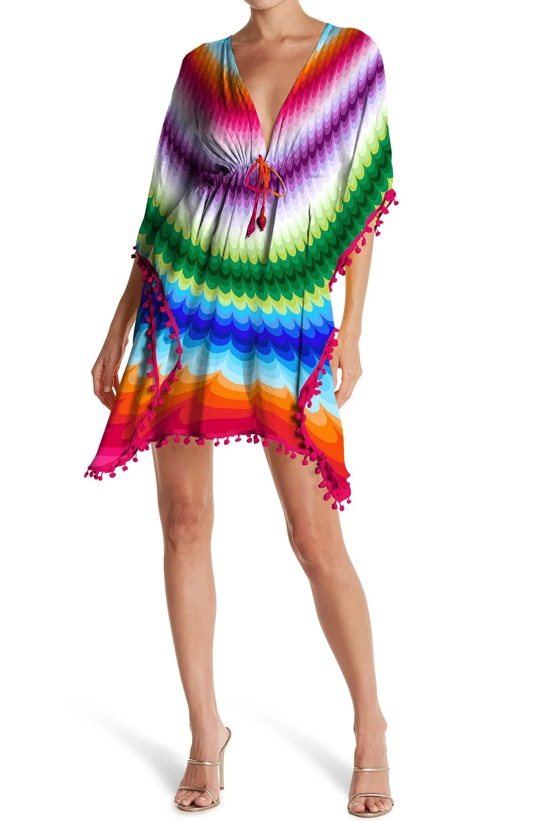 A lightweight, semi-sheer duster features a pretty print, tie waist, and sparkling rhinestone accents for boho-chic style.