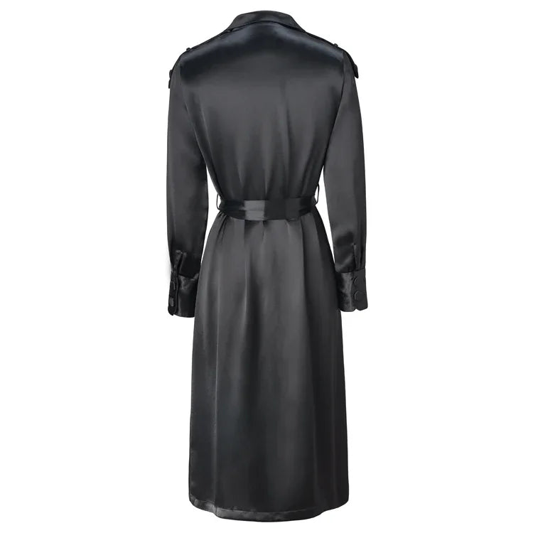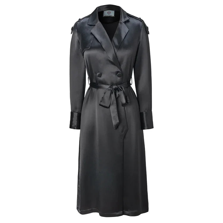 Kyle Luxurious Satin Trench Coat Dress is an essential piece you will wear over everything (or nothing) as a dress