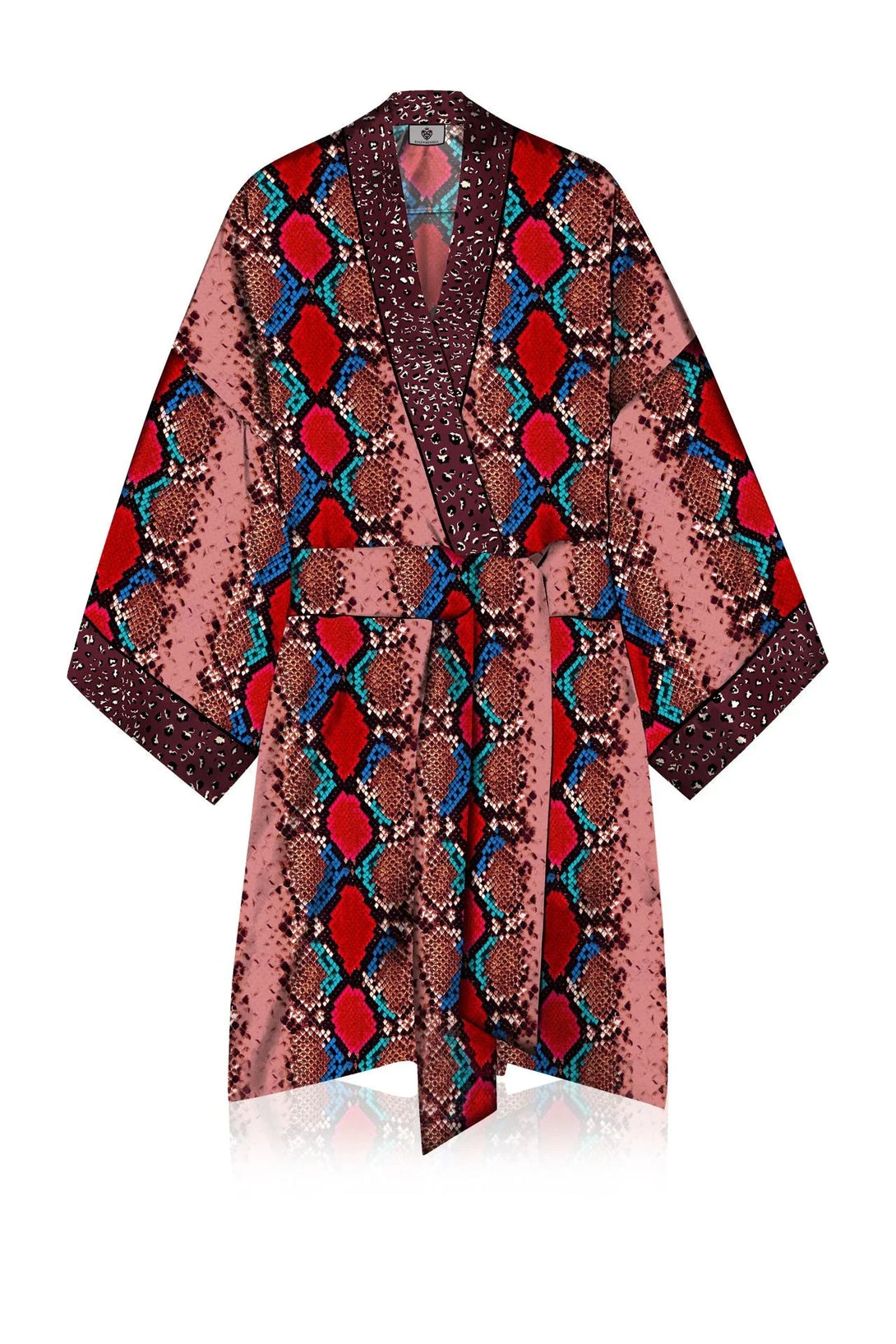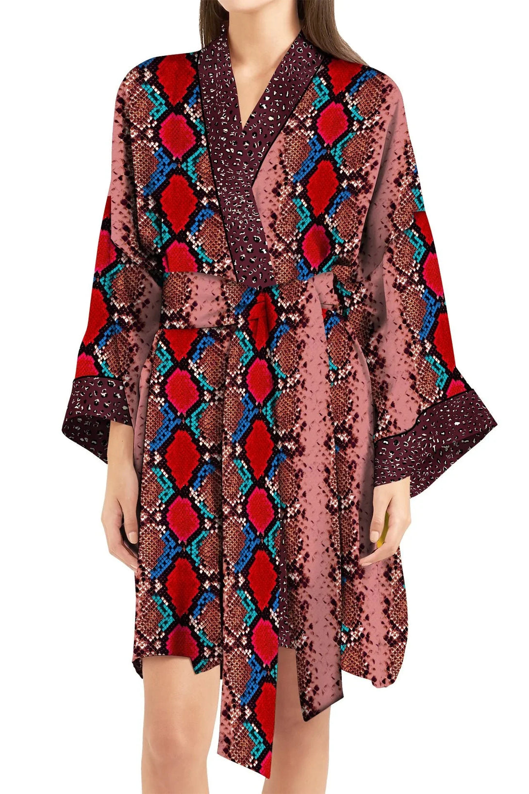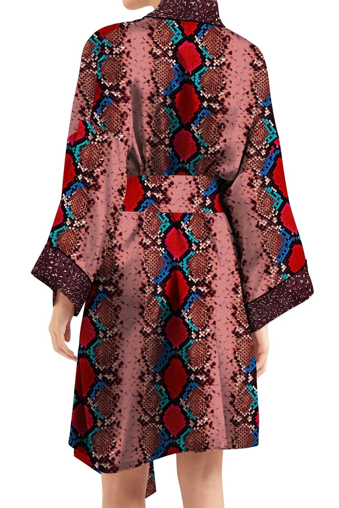 - Kyle x Shahida long satin robe with Nature Print contrast Color