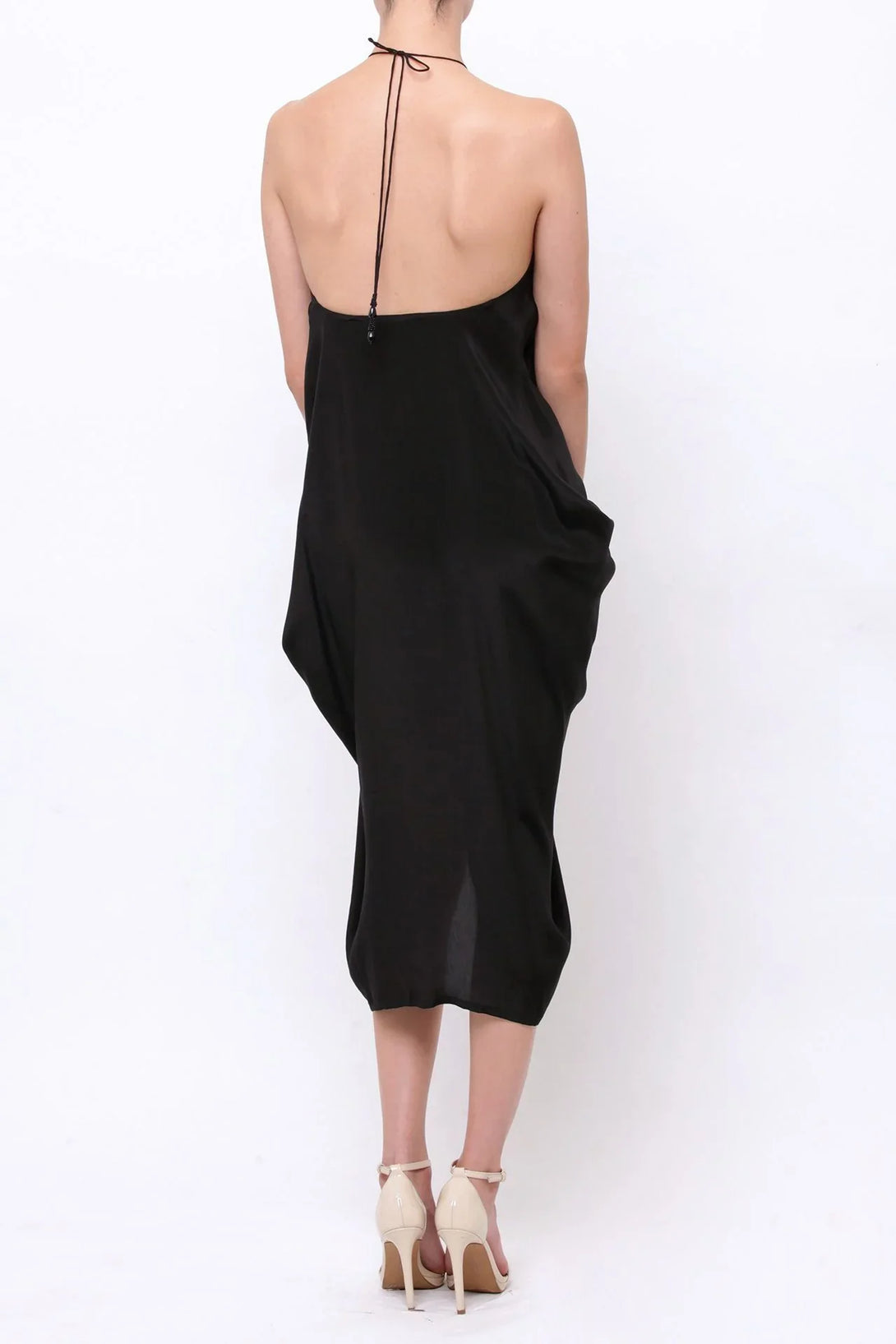 Wear Shahida Parides multi wear dress,Ā one of four ways for the style you'll love!Ā Versatility ensures you'll never be bored of this black silk kaftan.