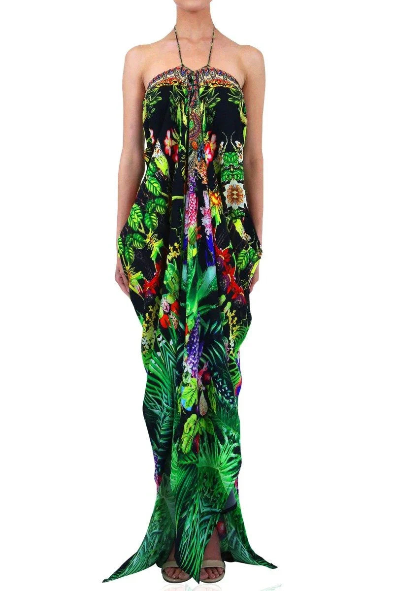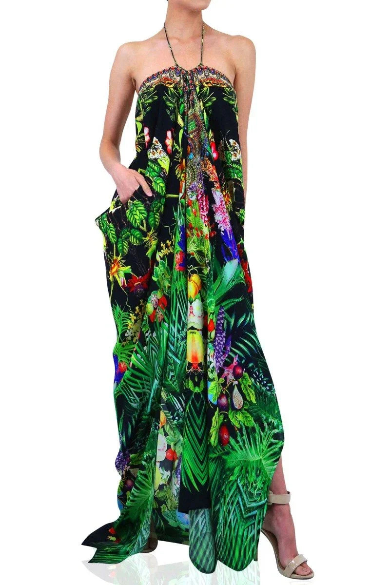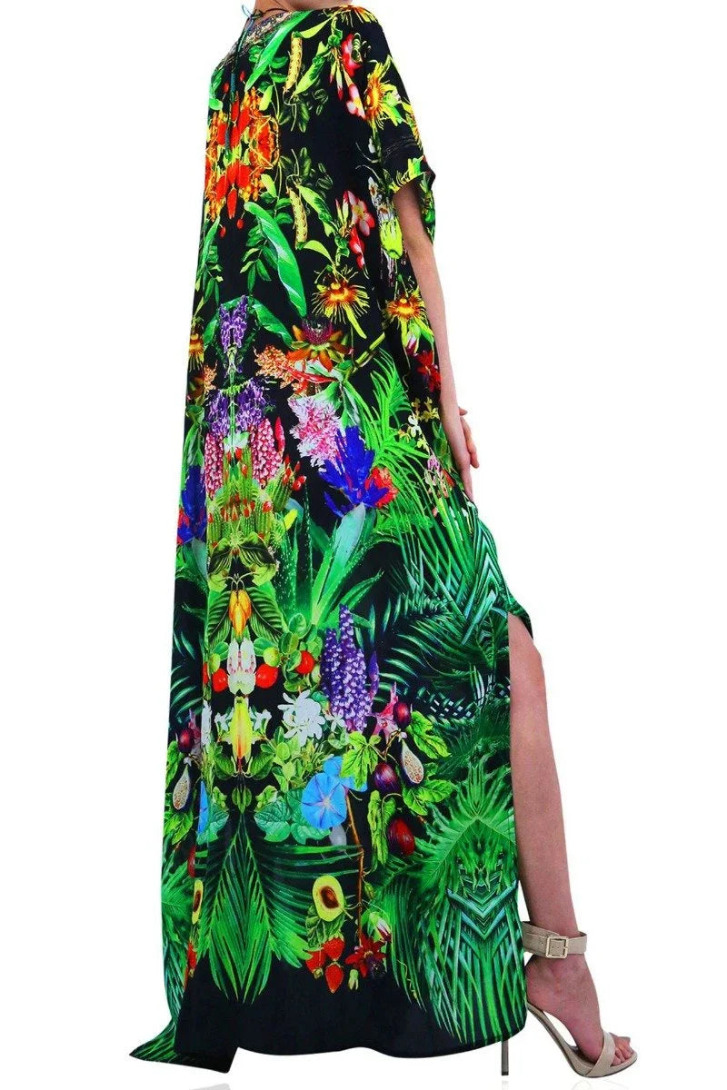 Unleash your wild side with printed kaftan dress, that features Shark bite hem and allover print that can can be worn by multi wear dress.