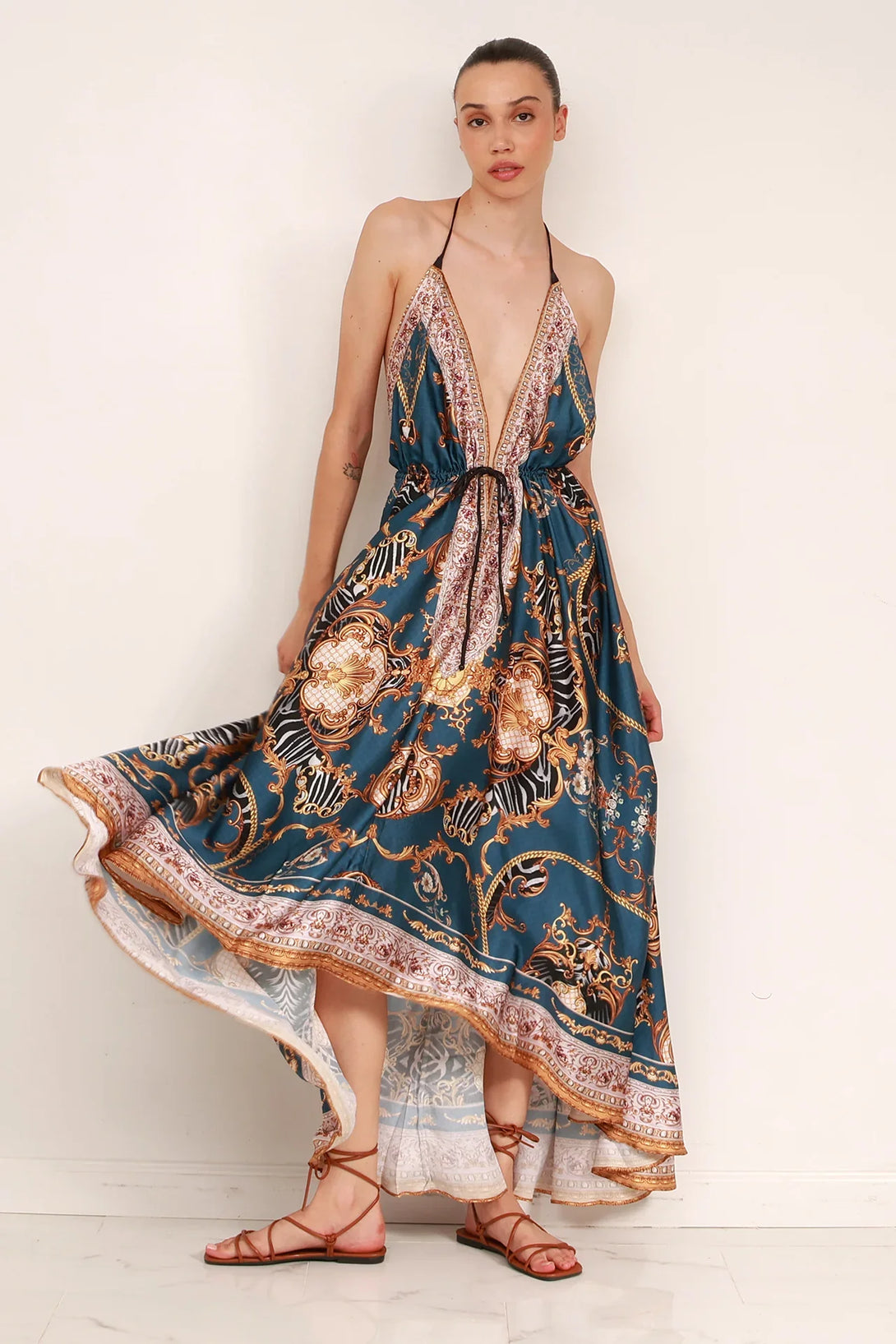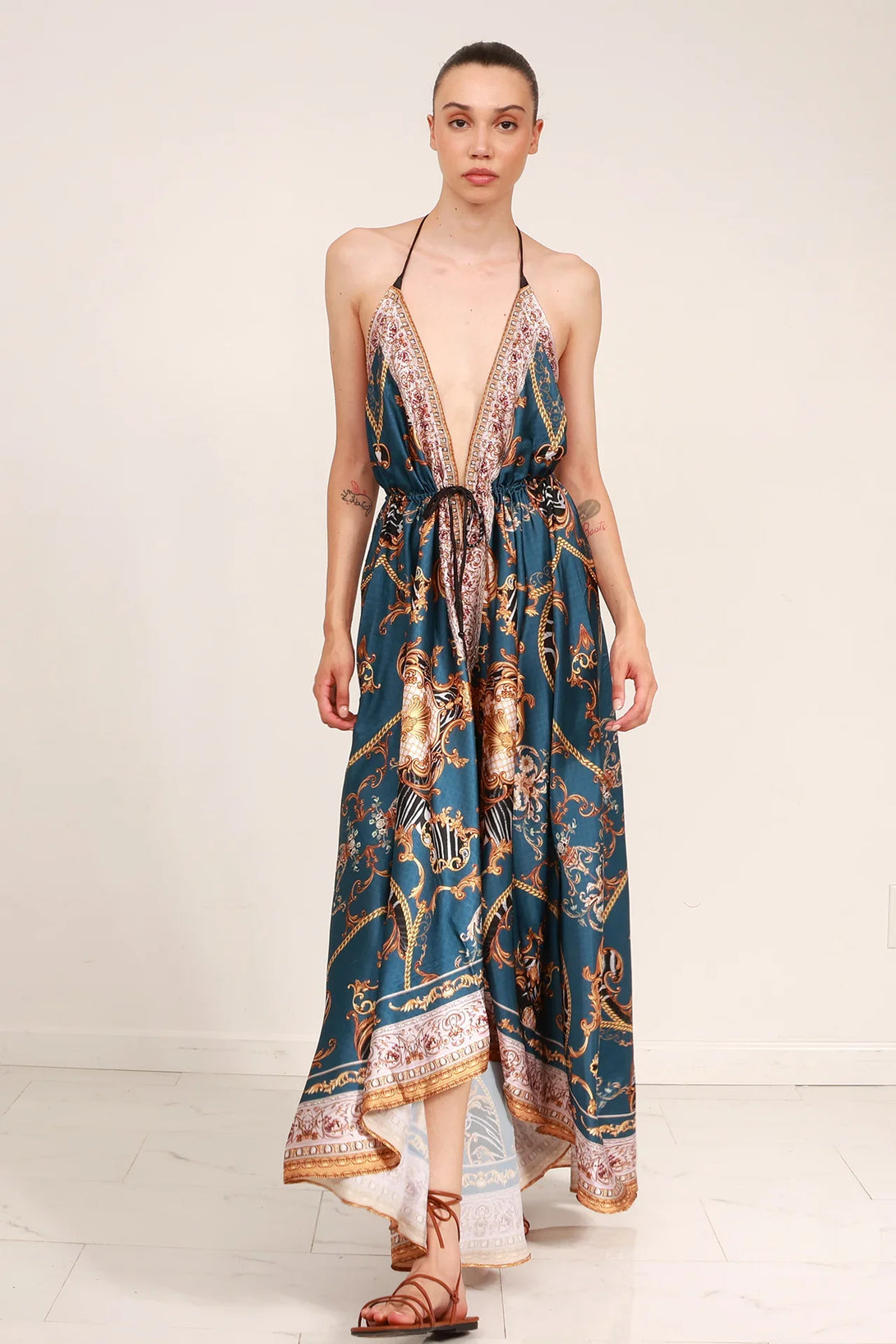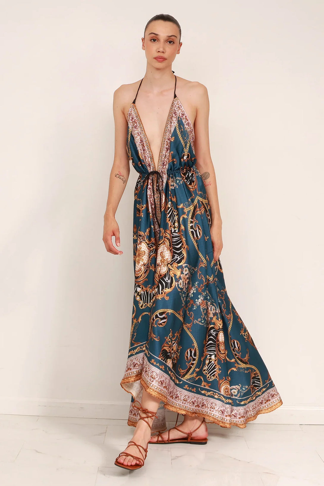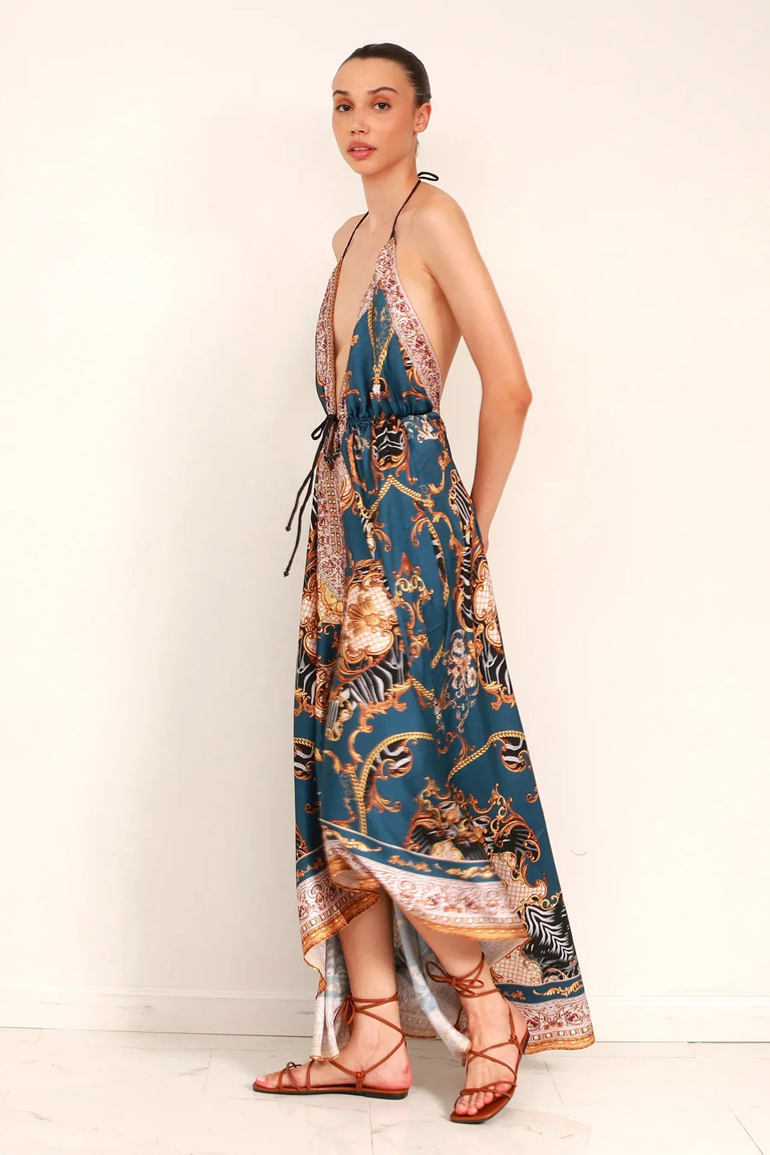 This long evening dress, with multiway dress style which can be styled in 3 ways, like one shoulder, halter neck, and off shoulder, where its animal print add a touch of elegance into your outfit, which is designed by Shahida Parides.