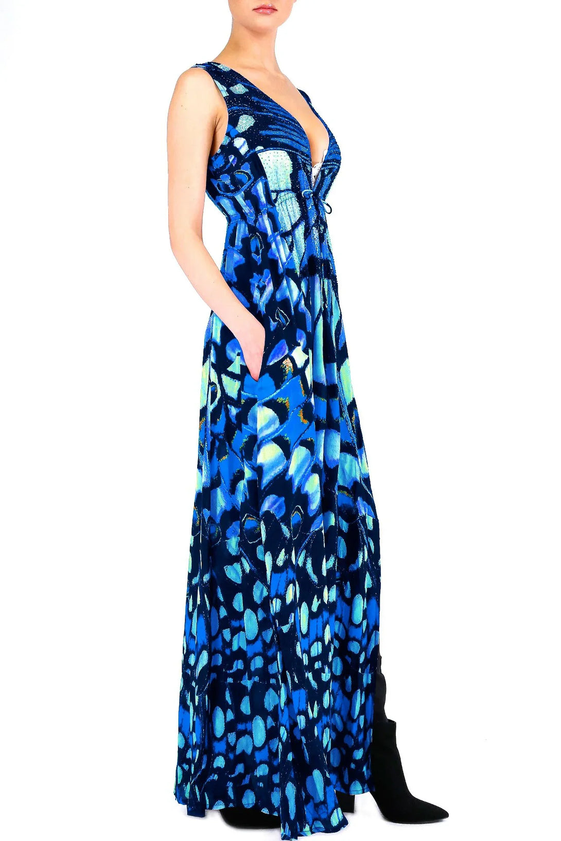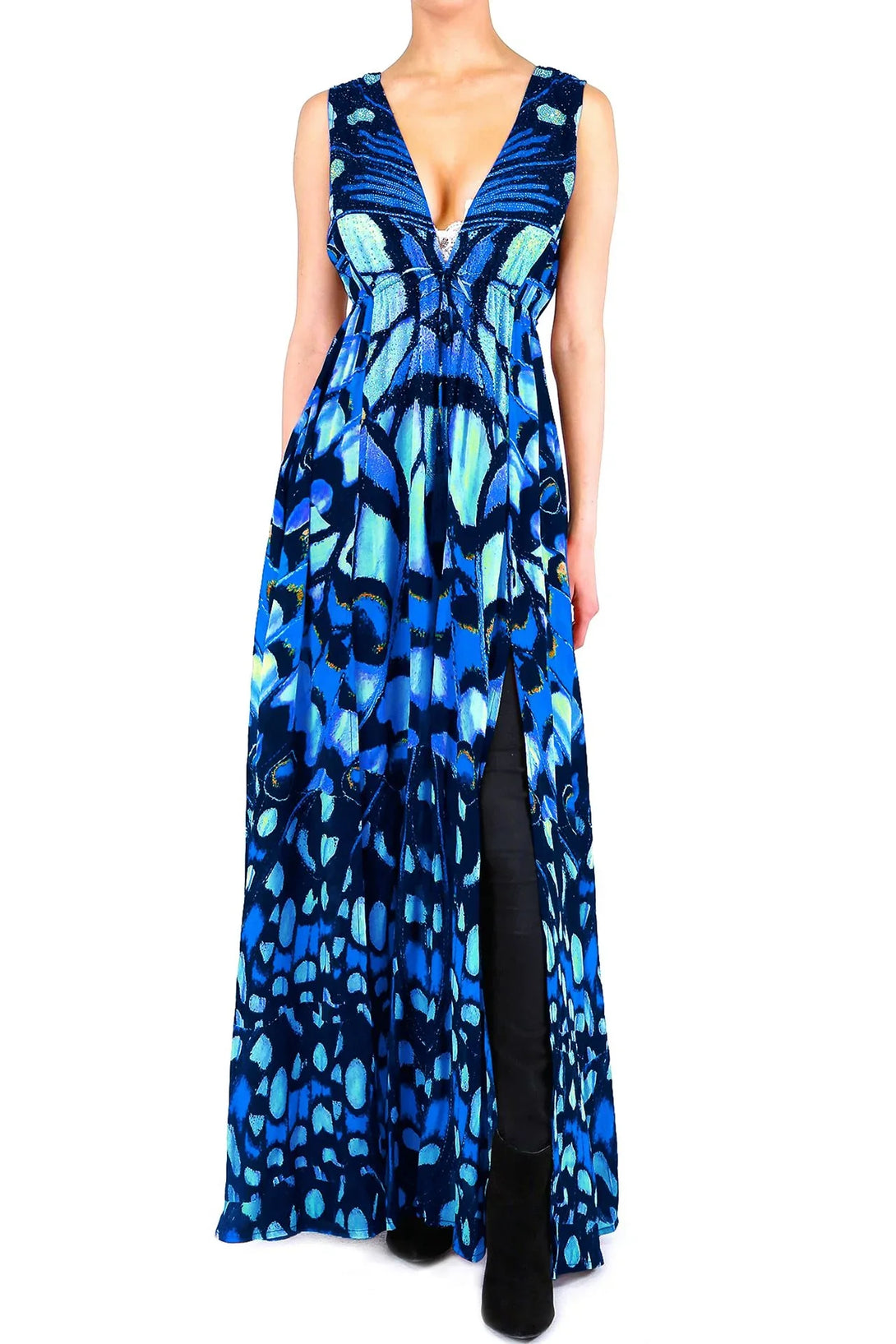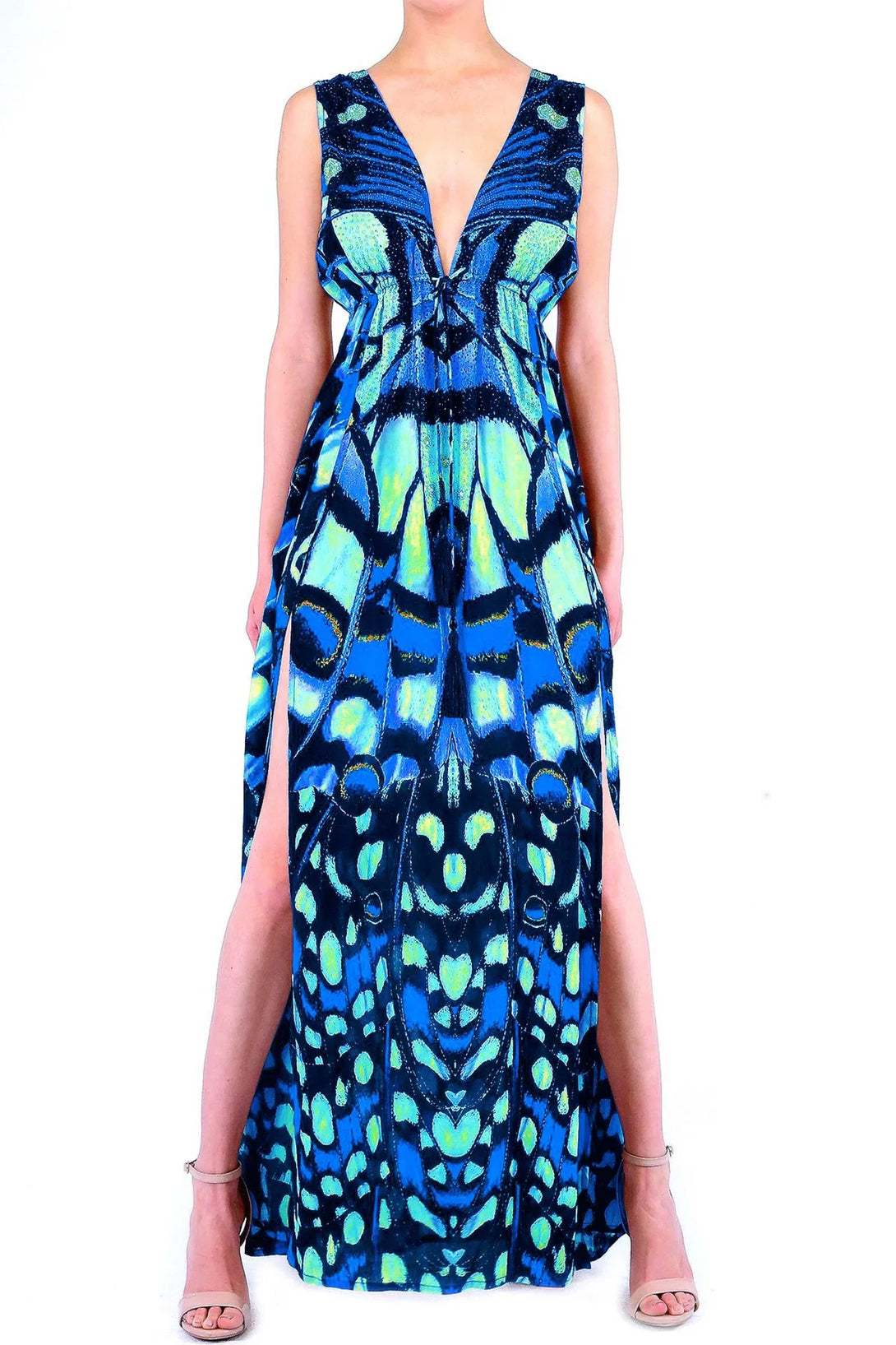 A vibrant printed that ignites the room. This, my dear, is the maxi dress of your dreams. Crafted from fabric that flows like liquid silk, it caresses your curves, creating a silhouette both elegant and alluring.